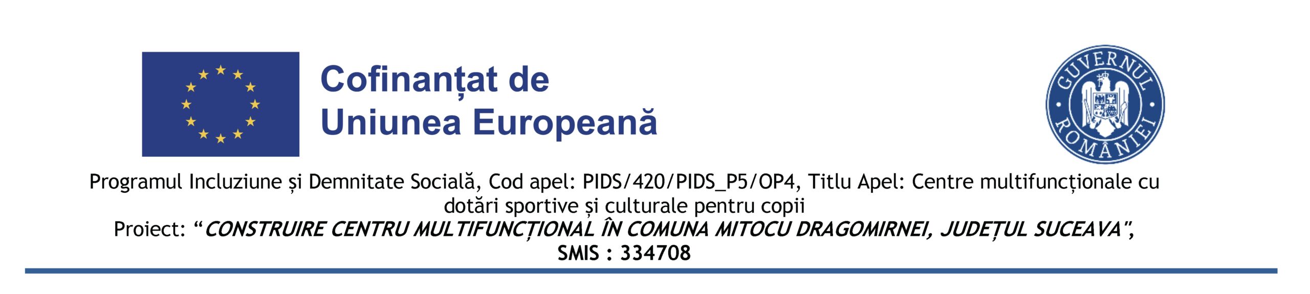 Comunitatea din Mitocu Dragomirnei a făcut astăzi un pas important către un viitor mai bun pentru copiii săi. Luni, 24 noiembrie 2025, a avut loc conferința de lansare a proiectului „Construire Centru Multifuncțional în Comuna Mitocu Dragomirnei, Județul Suceava” (SMIS 334708), proiect cofinanțat de Uniunea Europeană prin Fondul Social European+ și Fondul European de Dezvoltare Regională (FEDR), în cadrul Programului Incluziune și Demnitate Socială – PIDS.