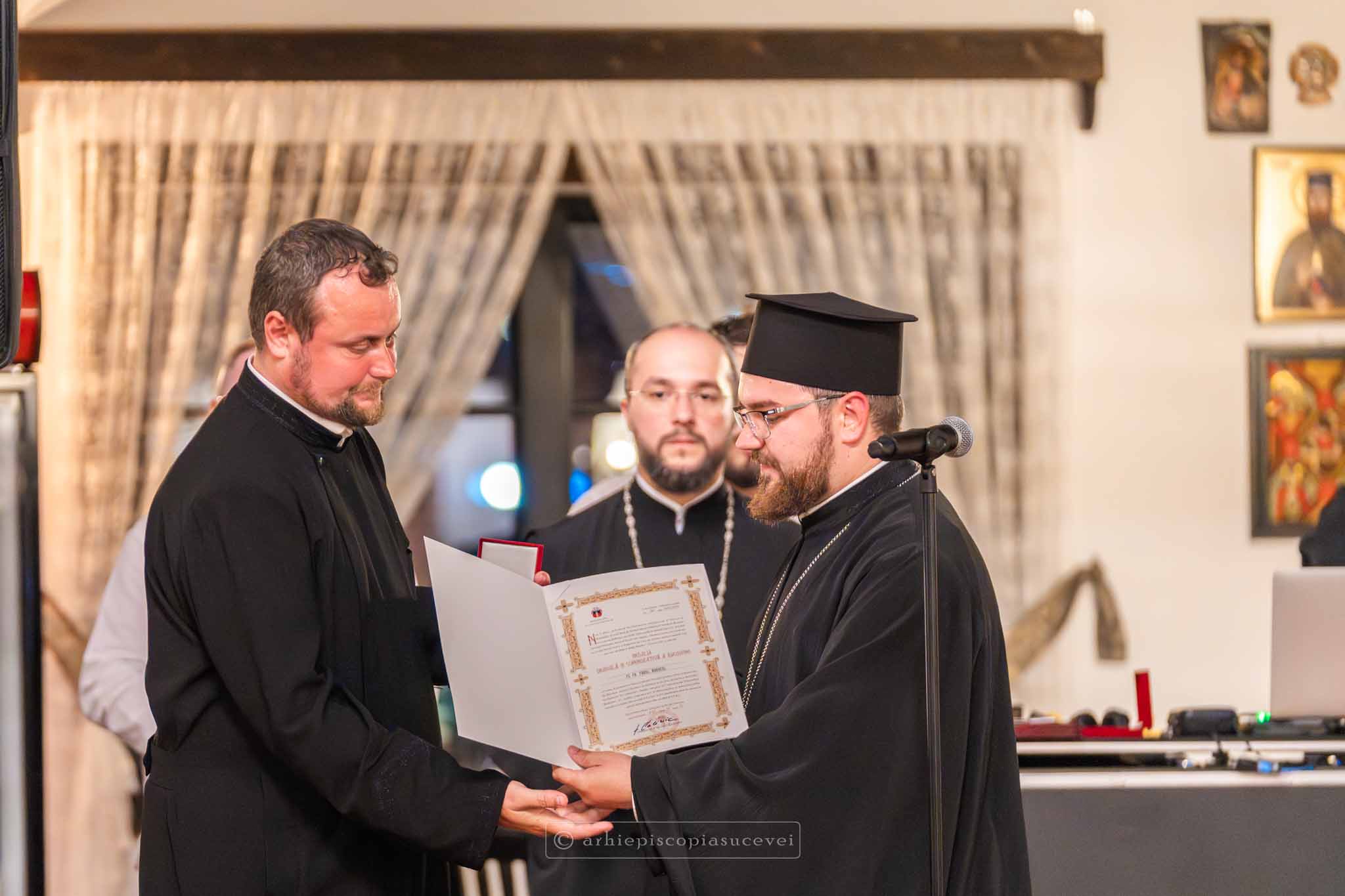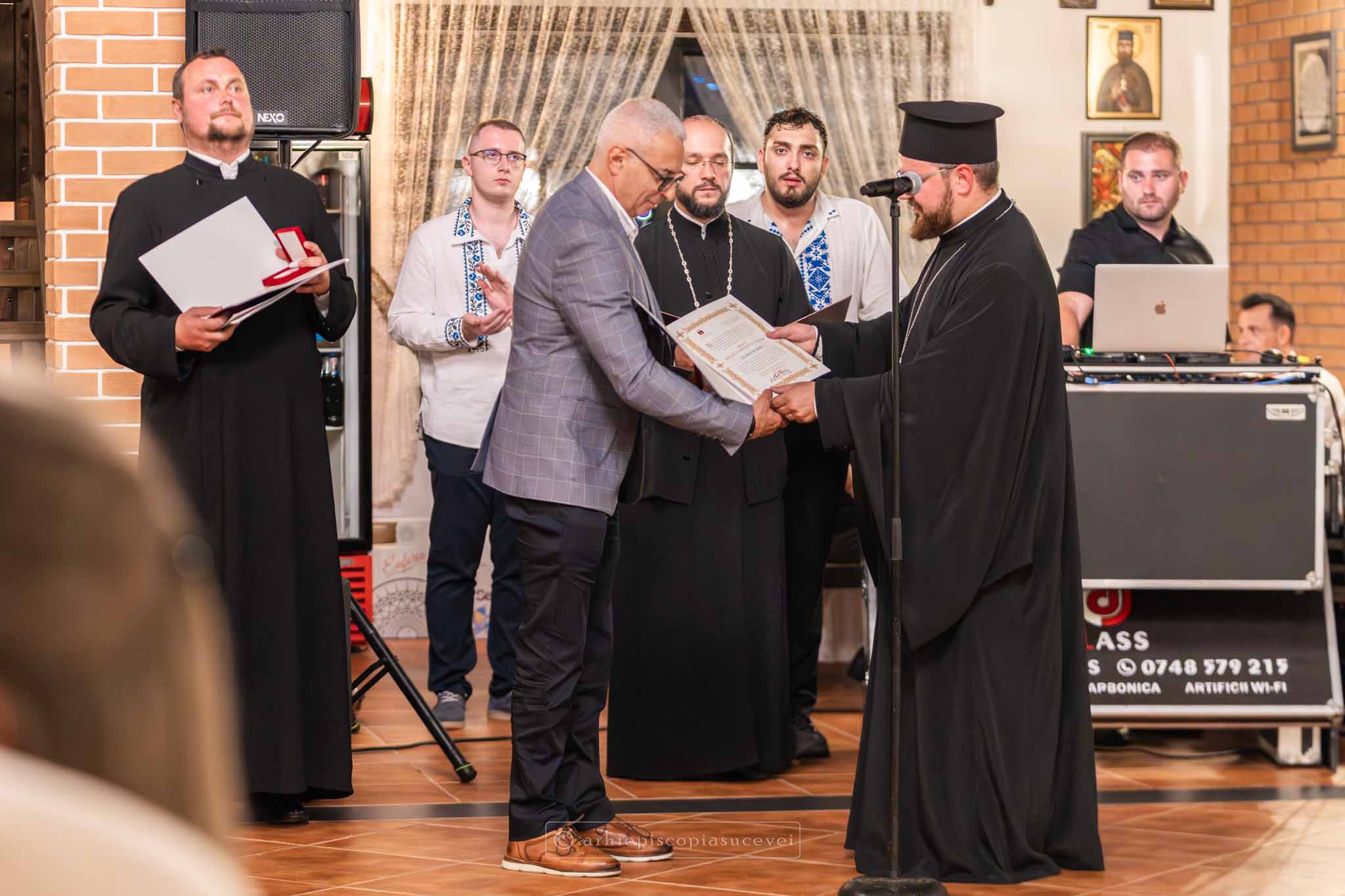 Medalia Omagială și Comemorativă a Bucovinei a fost înmânată apoi pr. Pavel Norocel, coordonator al Biroului de Asistență Socială al Protopopiatului Fălticeni, precum și altor susținători ai proiectelor prin care cei aflați în nevoie găsesc ajutor, mângâiere și alinare.
