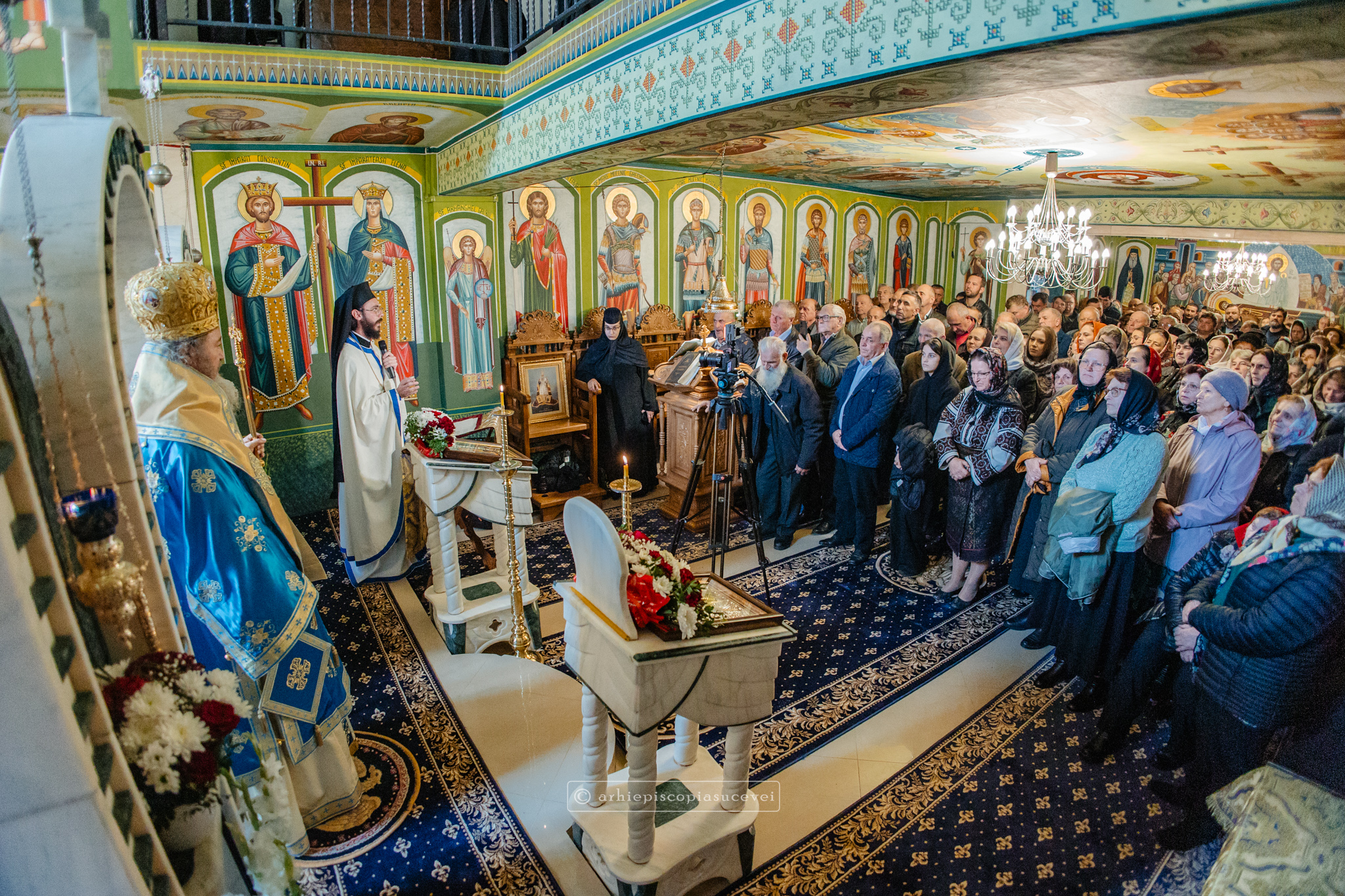 Credincioșii prezenți s-au bucurat și de cuvântul de învățătură rostit de către Preasfințitul Părinte Ieronim care a evidențiat importanța marelui praznic de astăzi, arătând că acesta nu este doar o rememorare a unei minuni petrecute în secolul al X-lea la Constantinopol, ci o realitate vie și lucrătoare în viața Bisericii:
