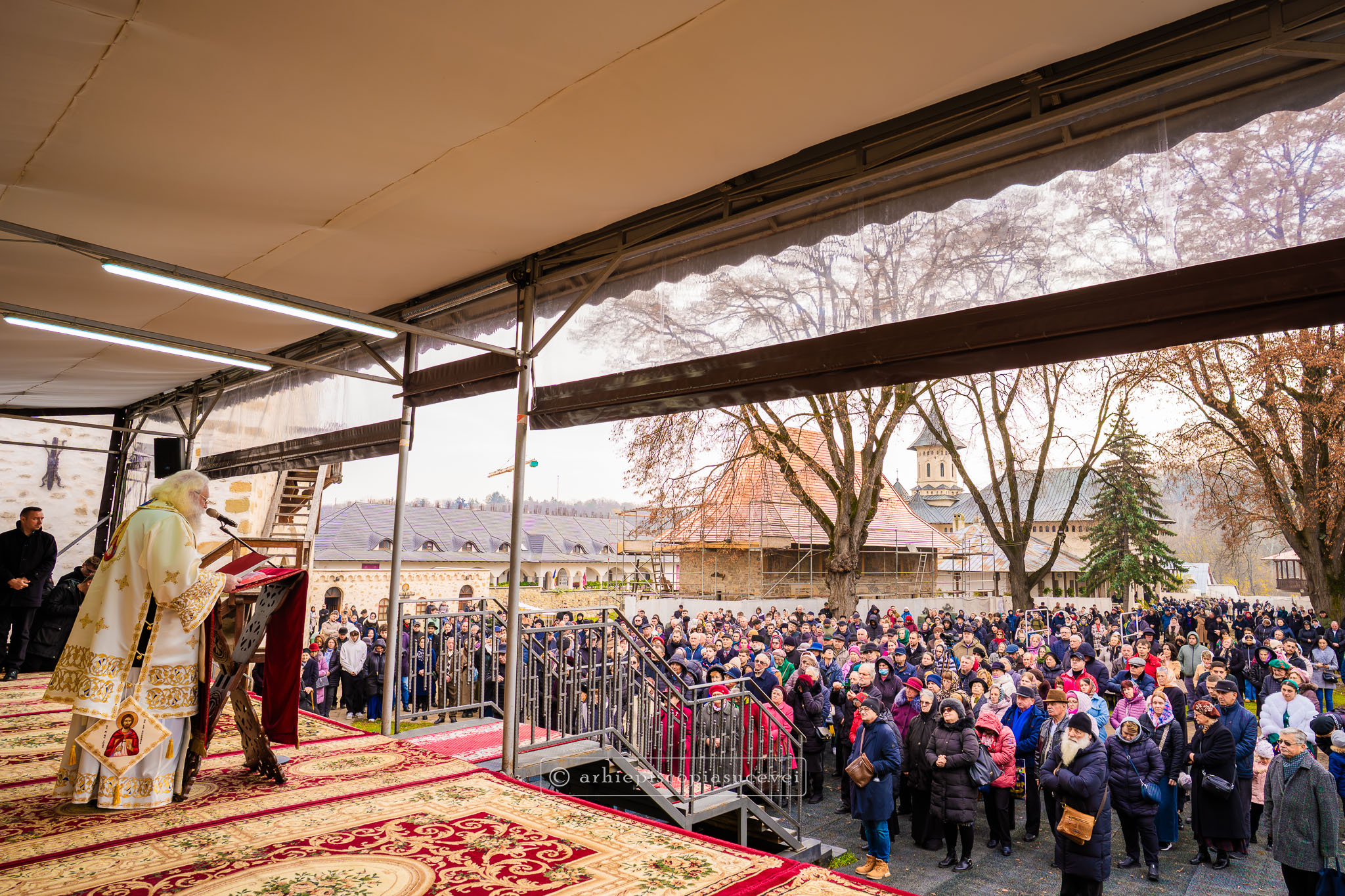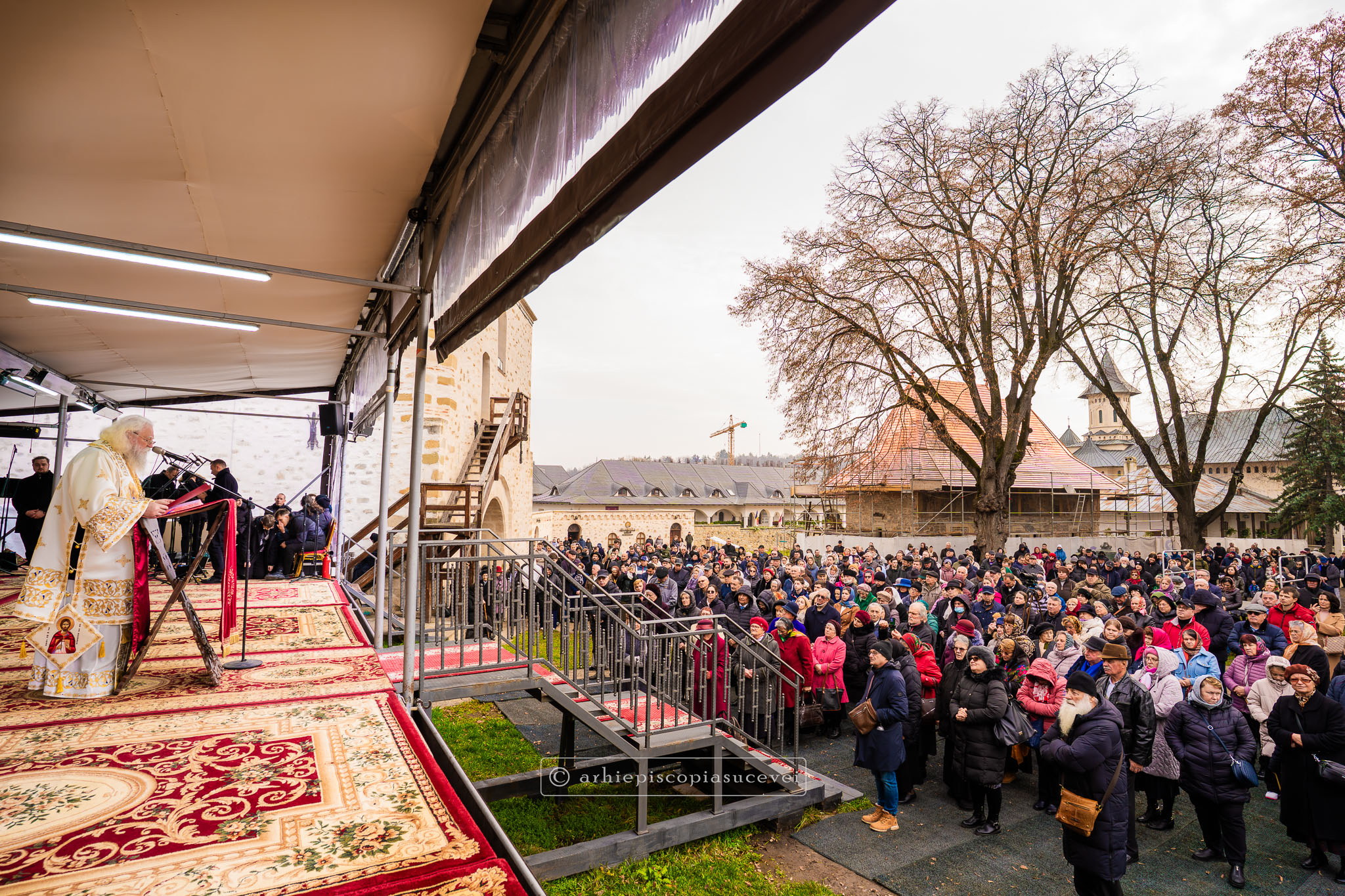 Cea dintâi duminică a Postului Bucuriei, așa cum este cunoscută perioada premergătoare marelui Praznic al Nașterii Mântuitorului Iisus Hristos, prilej de împreună rugăciune și comuniune pentru cei prezenți la Mănăstirea „Sfântul Ioan cel Nou” – Catedrala Arhiepiscopală din Suceava. Întâistătătorul Bisericii de pe aceste meleaguri binecuvântate de Dumnezeu, Înaltpreasfințitul Părinte Calinic, a săvârșit aici Sfânta și Dumnezeiasca Liturghie înconjurat de preoți și diaconi, pe un podium special amenajat în incinta așezământului monahal. Din soborul împreună slujitor au făcut parte clerici de la Centrul Eparhial Suceava și slujitori de la Mănăstirea „Sfântul Ioan cel Nou”, precum starețul acesteia, arhim. Serafim Grigoraș, și marele eclesiarh, arhim. Valerian Radu.