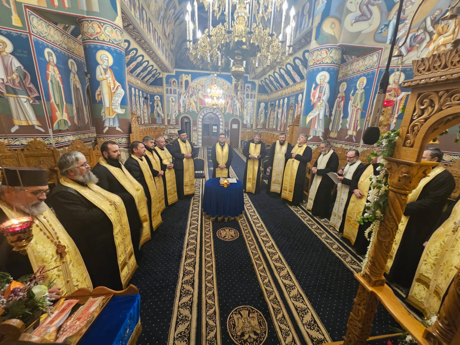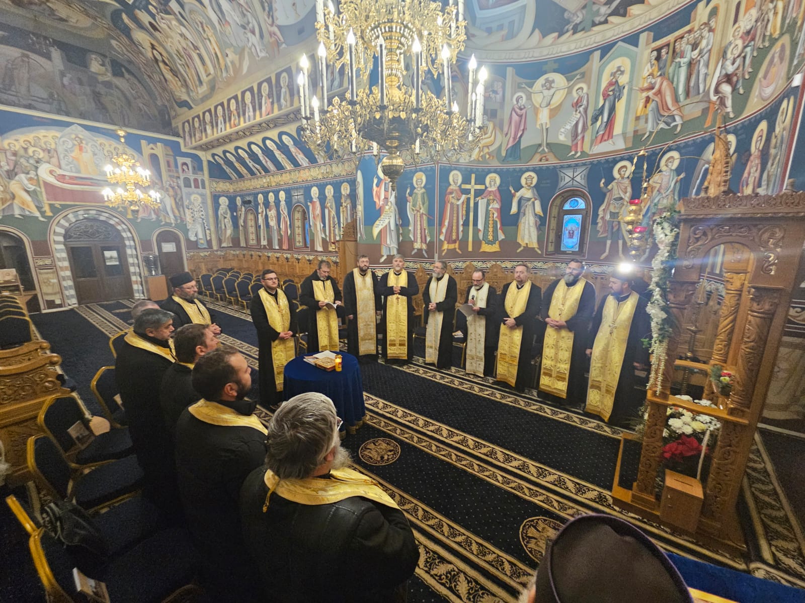 La orele 16.00 s-a săvârșit slujba Acatistului Sfinților Cuvioși Paisie și Cleopa de la Sihăstria. Aceasta a fost urmată de săvârșirea unui Trisaghion, în care preoții s-au rugat pentru odihna sufletului celui care ne-a fost părinte, frate și coleg întru slujire – preotul Dimitrie Mihoc.