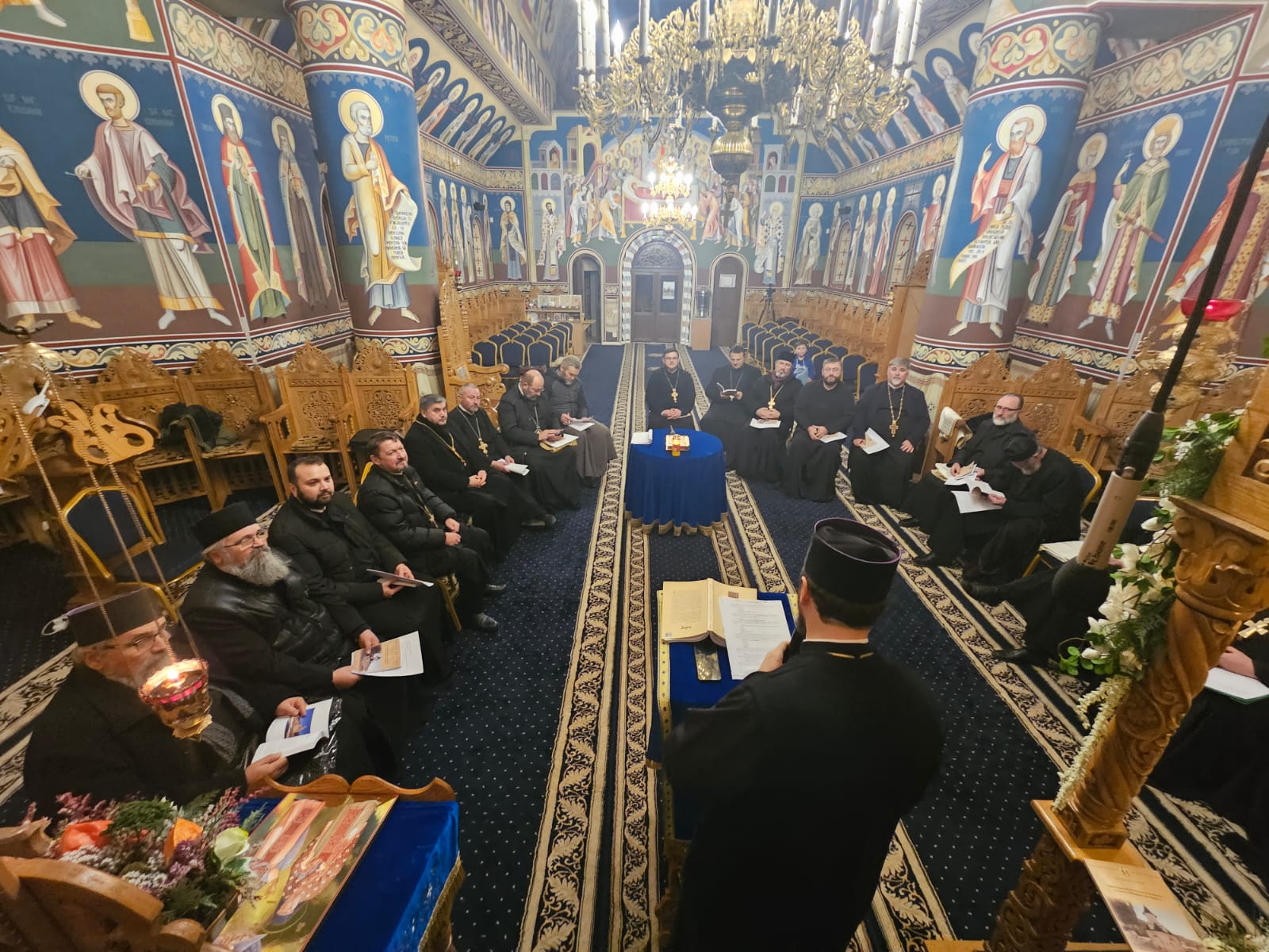După momentele liturgice amintite, părintele misionar protopopesc Ștefan Marișca a deschis întâlnirea cercului pastoral și a subliniat importanța întâlnirii pentru a zăbovi asupra unei teme importante dedicate anului omagial al Sfântului Sinod: „Sfântul Cuvios Cleopa de la Sihăstria – Apostol al neamului său”. După această introducere am purces la prezentarea temei în cadrul căreia am evidențiat aspectele biografice ale Sfântului Cuvios Cleopa, devotamentul față de voturile monahale, încercările suferite, fidelitatea față de dreapta credință și asprele nevoințe suferite în anii de retragere pustnicească.