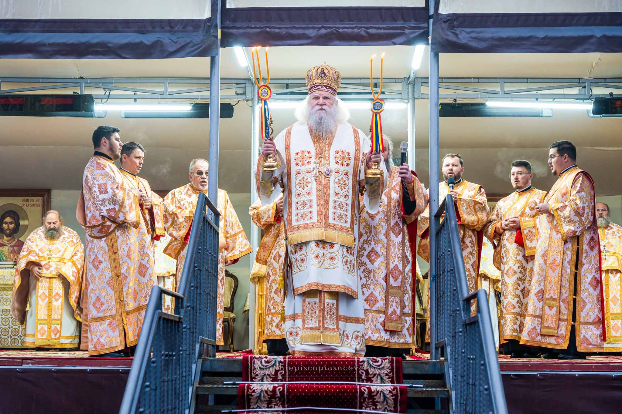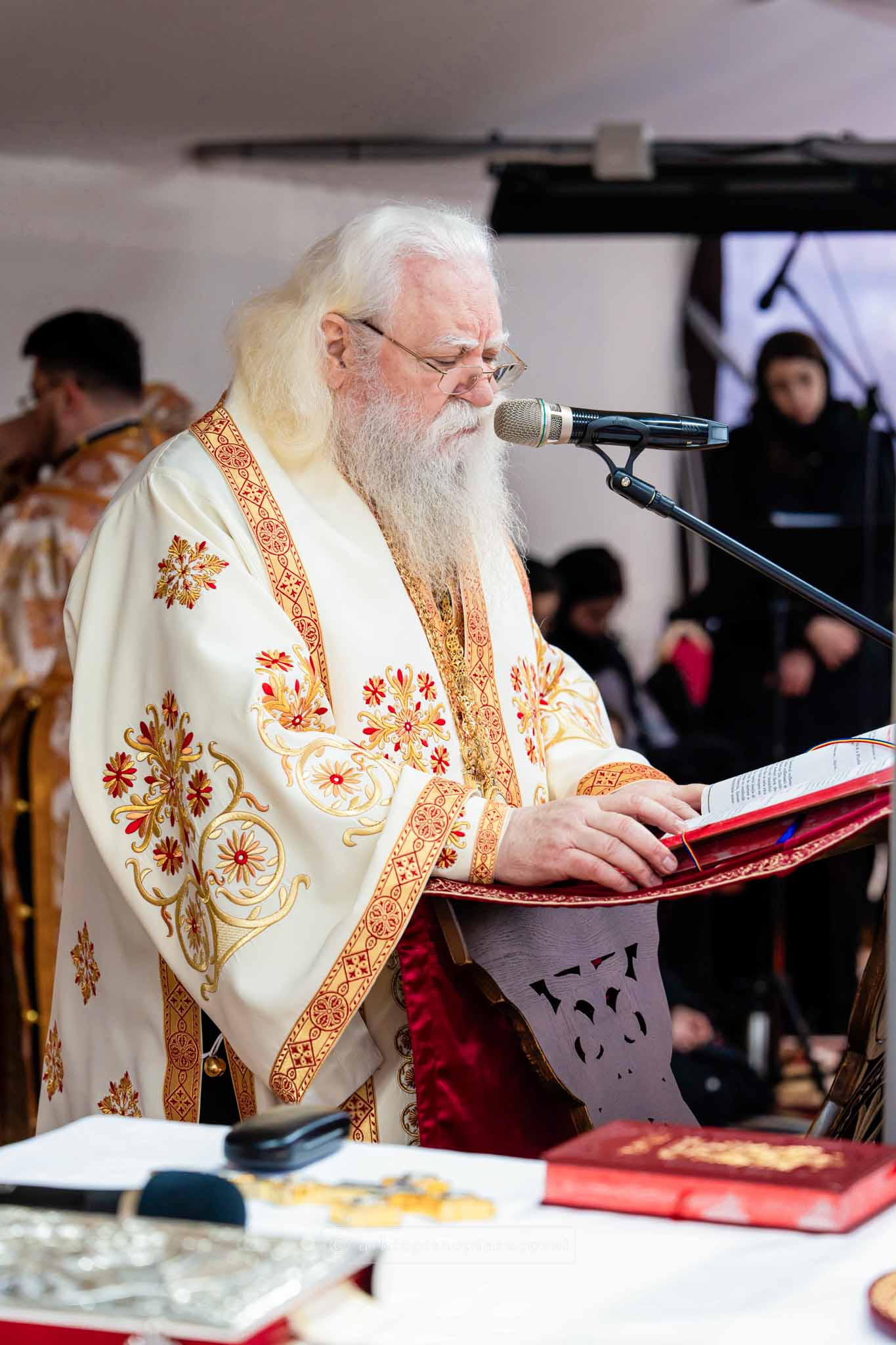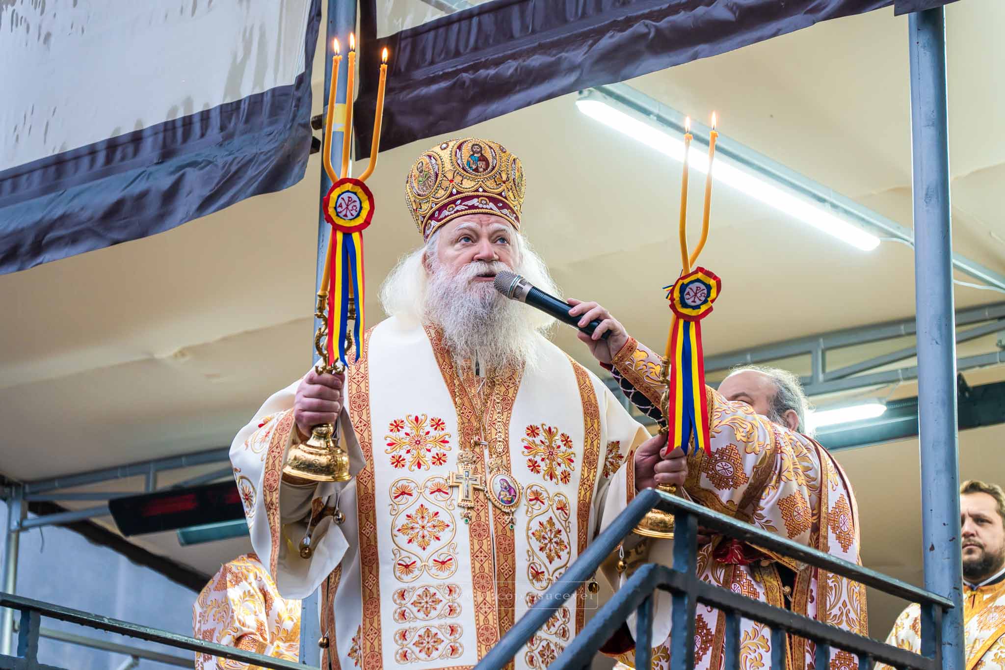 Înainte de a-i binecuvânta pe credincioși prin stropire cu apă sfințită, Înaltpreasfințitul Părinte Calinic a citit rugăciuni de dezlegare pentru sănătatea sufletului și a trupului, dar și pentru cei care sunt cuprinși de nemiloasa boală a depresiei.
