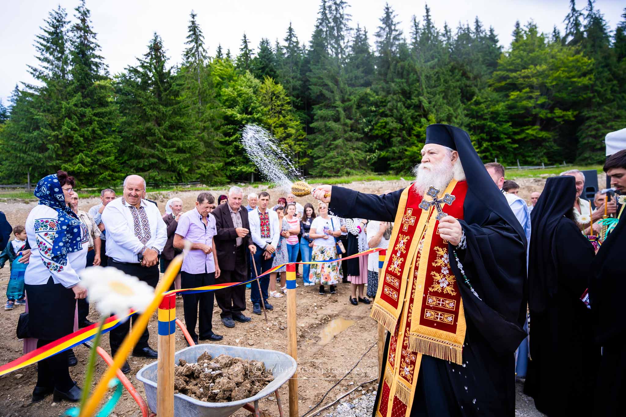 Veniți în acest tărâm de basm al Bucovinei pentru a se bucura de binecuvântarea arhierească, credincioșii prezenți la slujbă s-au rugat împreună cu ierarhul și soborul slujitor ca prin împreuna-lucrare a omului cu Dumnezeu să se ridice cât mai grabnic lăcașul de rugăciune, spre slava Celui Care a făcut ca în aceste locuri cerul să își plece fruntea pe pământ, ca omul să își ridice mai ades ochii spre cer.