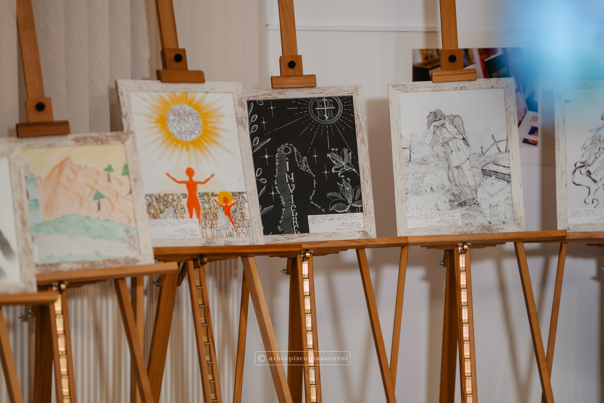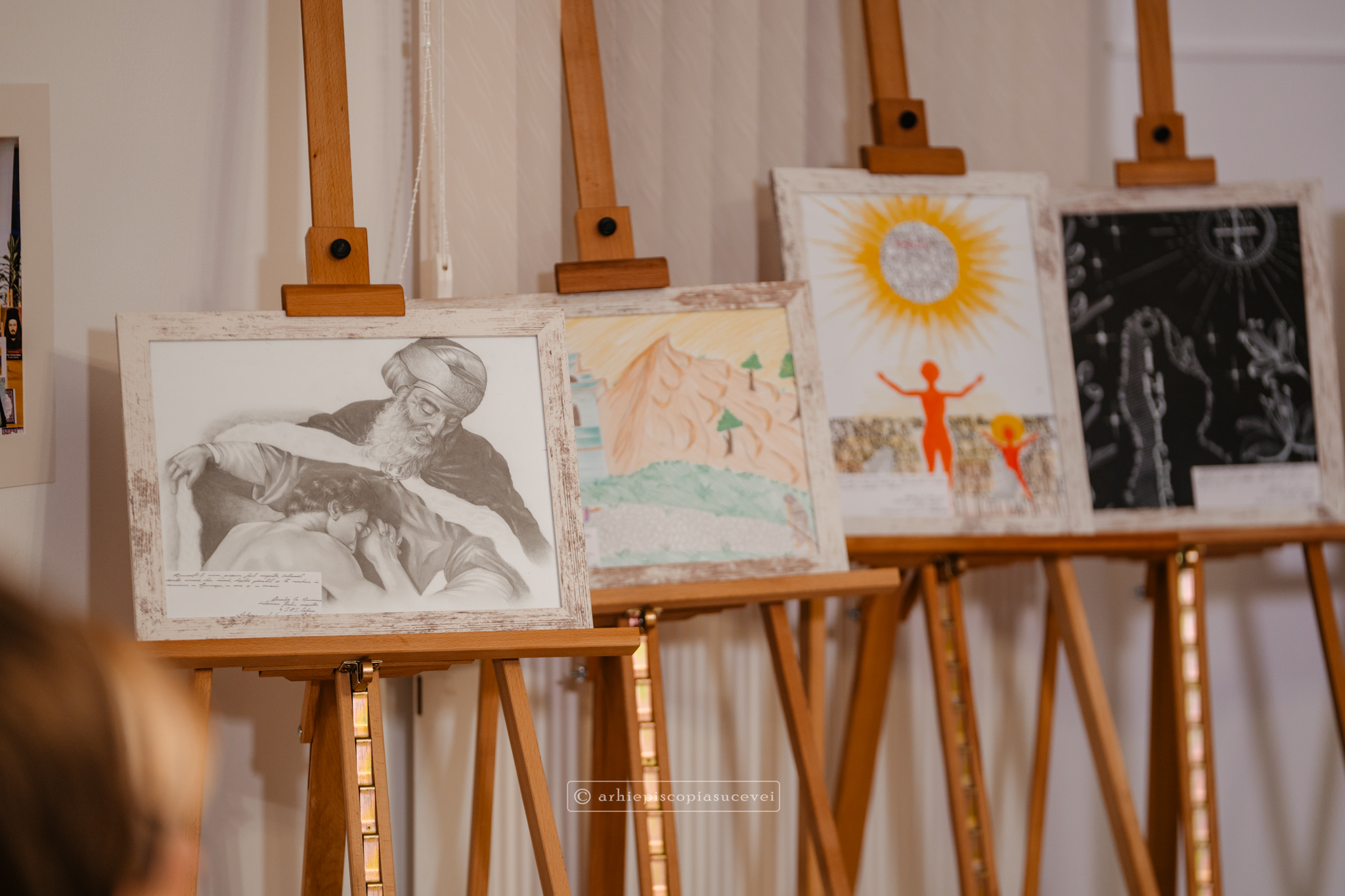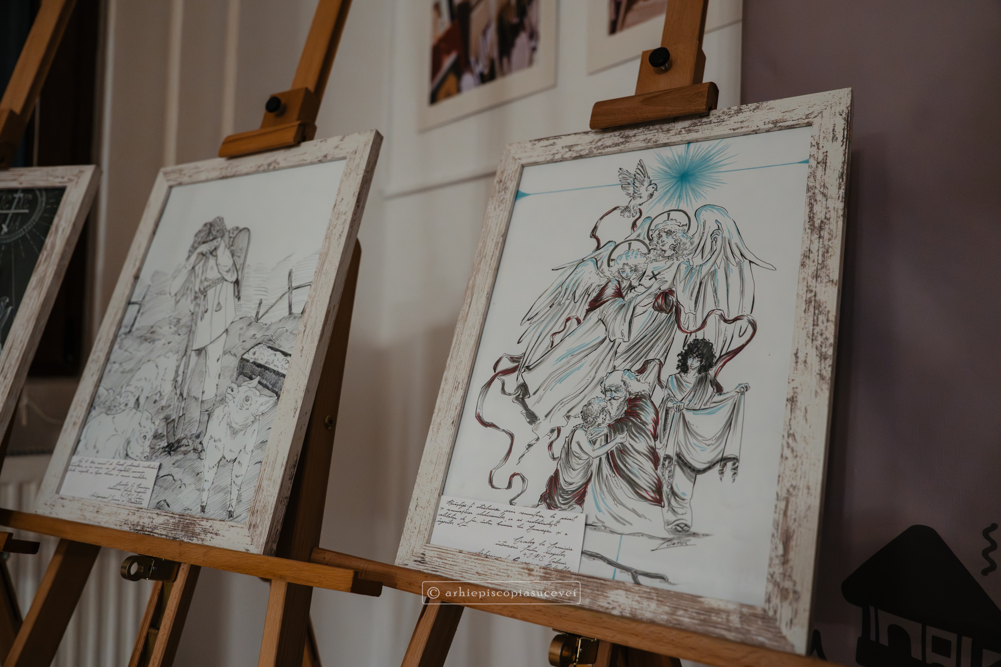 Pentru a descoperi acest tezaur sălășluit în volumul proaspăt făurit, doamna prof. Daniela Ceredeev a citit o deosebită selecție din îndemnurile Părintelui Arhiepiscop, o parte dintre acestea fiind o adevărată sursă de inspirație pentru un proiect inedit și cu valențe educaționale și spirituale multiple, desfășurat de curând la Colegiul Național „Eudoxiu Hurmuzachi” Rădăuți, coordonat de dna prof. metodist Miriam Leon-Postolache. Desfășurat la colegiul rădăuțean, acesta a avut tema Iertarea, veșmânt țesut din har și lumină și a fost inspirat de versetele Decalogului alcătuit de Părintele Arhiepiscop la Duminica întoarcerii fiului risipitor. Potrivit organizatorilor evenimentului, echipa de proiect a fost alcătuită din liceeni cu talent și talant artistic, dar și cu reale competențe de documentare a unei teme de o astfel de complexitate. „Inspirați de versetele Decalogului la Duminica întoarcerii fiului risipitor și valorificând deopotrivă cunoștințe interdisciplinare, elevii au realizat lucrări plastice care-i vădesc a fi deopotrivă mărturisitori și trăitori de Hristos și de Frumos”. Expoziția a cuprins lucrări de tip caligramă și de tip colaj, lucrări în creion și în tuș, desen artistic, schițe, acuarelă, iar o parte dintre autori, precum și dintre cei responsabili de documentare, prezenți la eveniment, au deslușit din tainele propriilor căutări lăuntrice, vorbind despre viziunea artistică, despre conceptele și simbolurile la care au făcut apel, despre metodologia și rezultatele proiectului.
