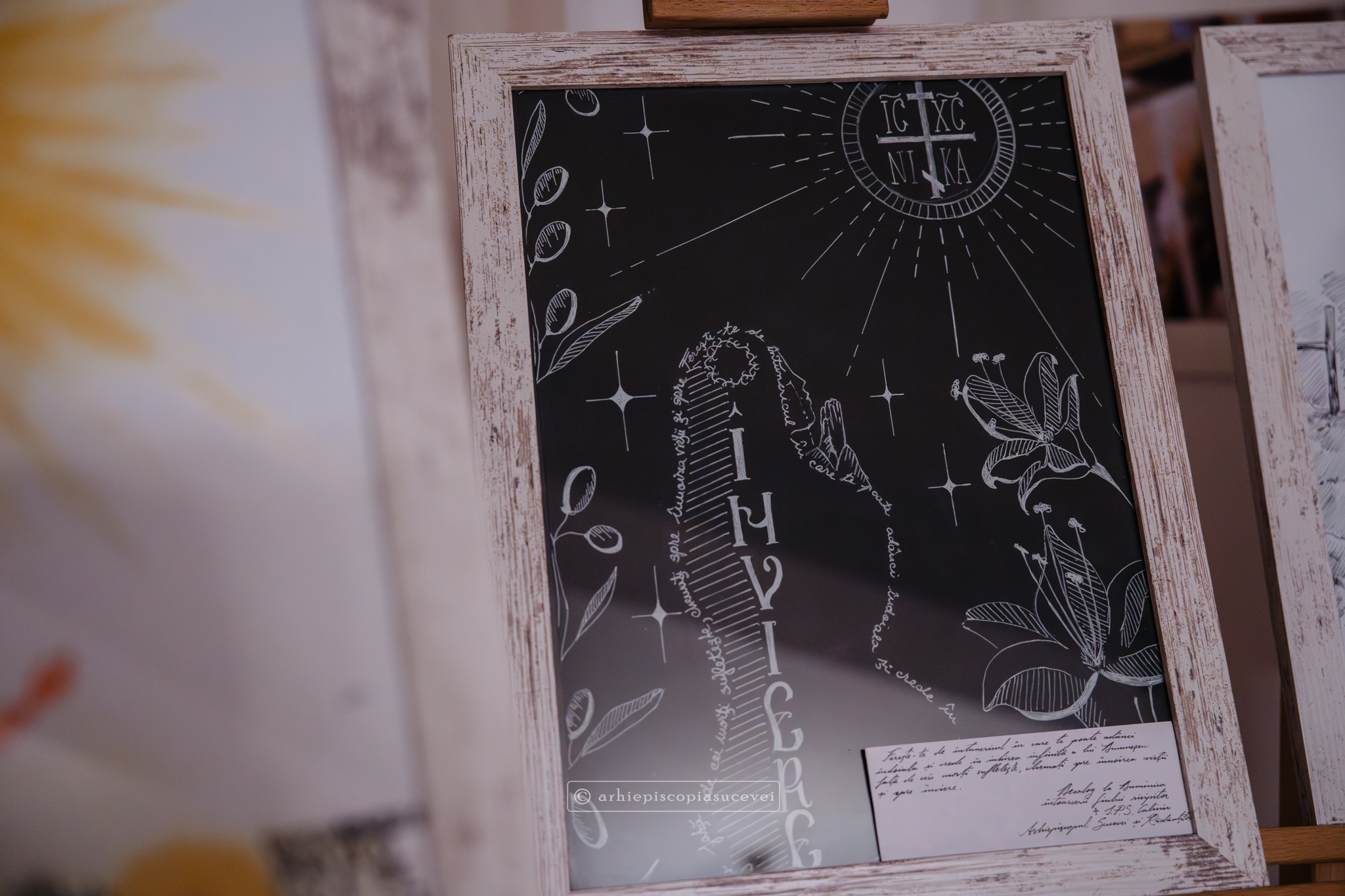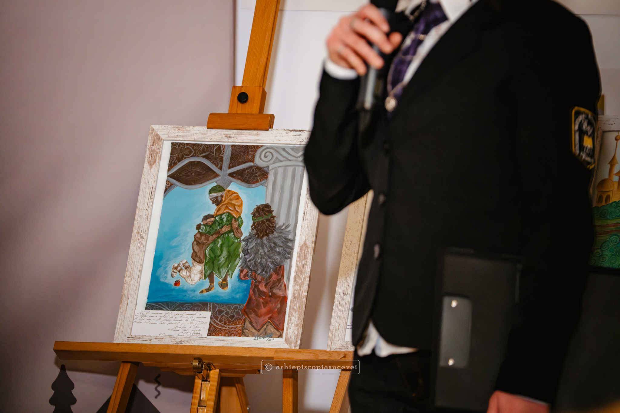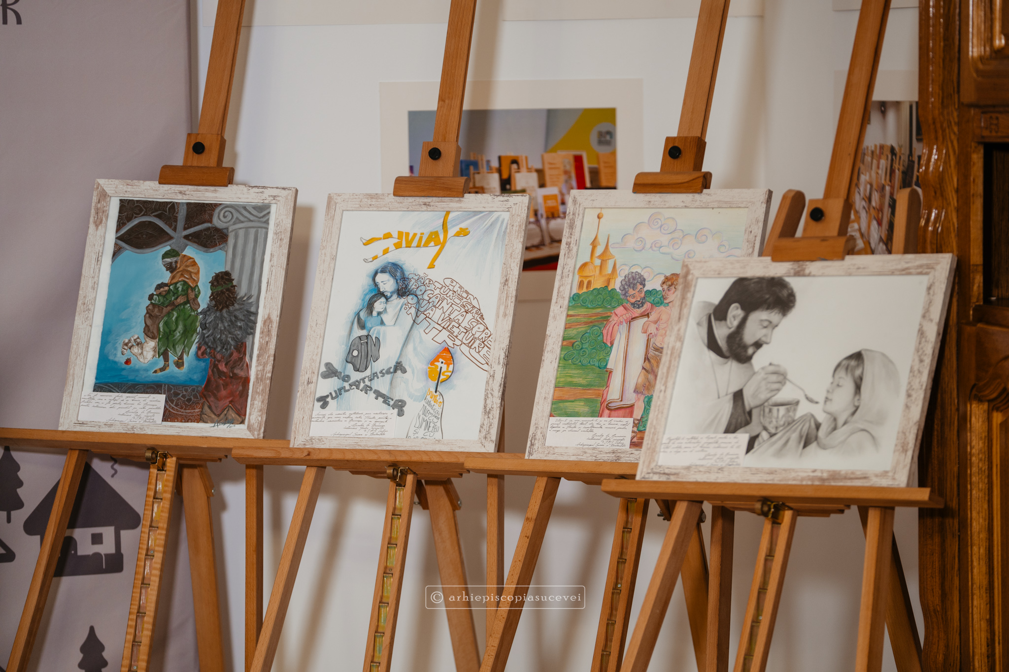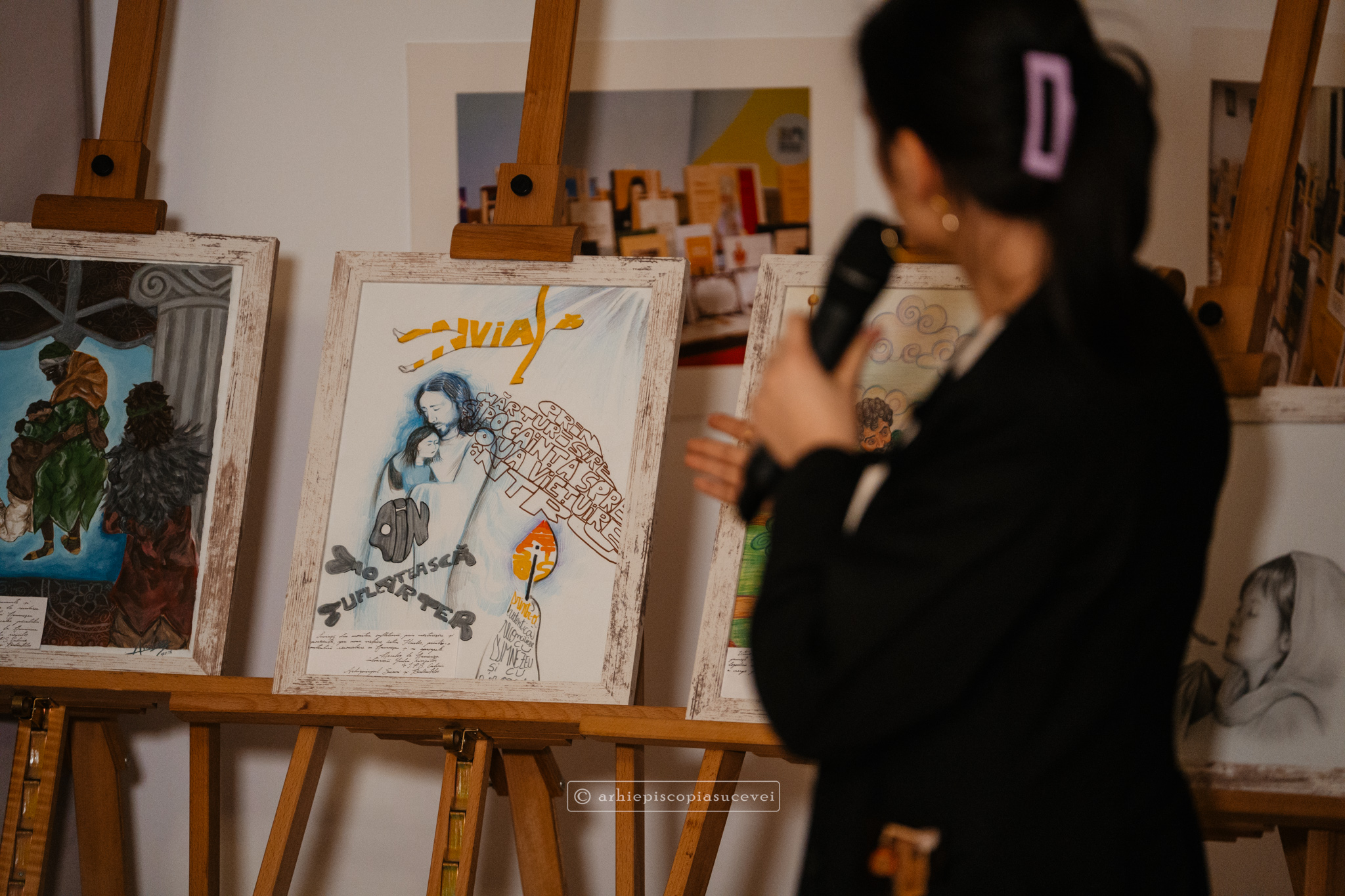 Pentru a descoperi acest tezaur sălășluit în volumul proaspăt făurit, doamna prof. Daniela Ceredeev a citit o deosebită selecție din îndemnurile Părintelui Arhiepiscop, o parte dintre acestea fiind o adevărată sursă de inspirație pentru un proiect inedit și cu valențe educaționale și spirituale multiple, desfășurat de curând la Colegiul Național „Eudoxiu Hurmuzachi” Rădăuți, coordonat de dna prof. metodist Miriam Leon-Postolache. Desfășurat la colegiul rădăuțean, acesta a avut tema Iertarea, veșmânt țesut din har și lumină și a fost inspirat de versetele Decalogului alcătuit de Părintele Arhiepiscop la Duminica întoarcerii fiului risipitor. Potrivit organizatorilor evenimentului, echipa de proiect a fost alcătuită din liceeni cu talent și talant artistic, dar și cu reale competențe de documentare a unei teme de o astfel de complexitate. „Inspirați de versetele Decalogului la Duminica întoarcerii fiului risipitor și valorificând deopotrivă cunoștințe interdisciplinare, elevii au realizat lucrări plastice care-i vădesc a fi deopotrivă mărturisitori și trăitori de Hristos și de Frumos”. Expoziția a cuprins lucrări de tip caligramă și de tip colaj, lucrări în creion și în tuș, desen artistic, schițe, acuarelă, iar o parte dintre autori, precum și dintre cei responsabili de documentare, prezenți la eveniment, au deslușit din tainele propriilor căutări lăuntrice, vorbind despre viziunea artistică, despre conceptele și simbolurile la care au făcut apel, despre metodologia și rezultatele proiectului.