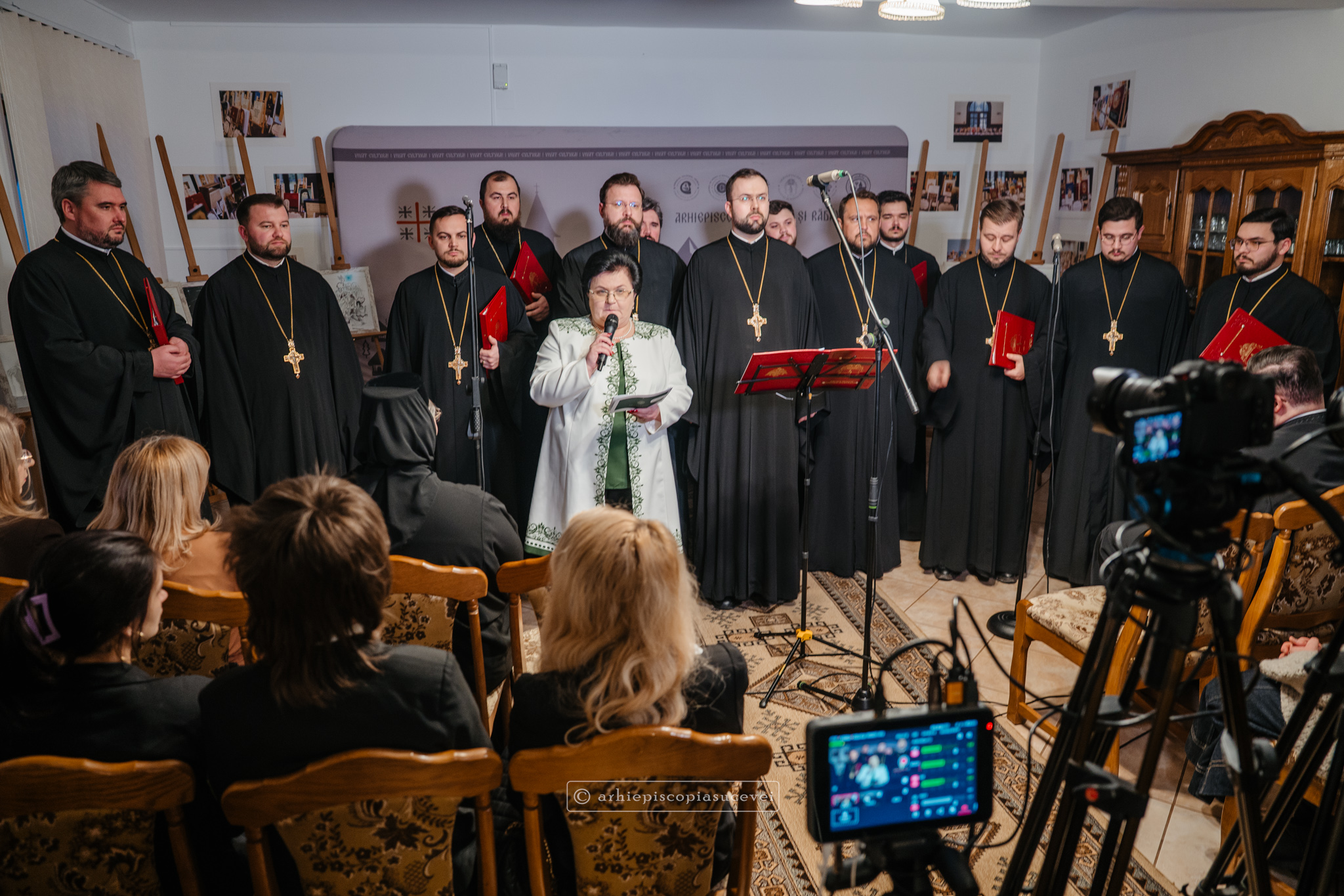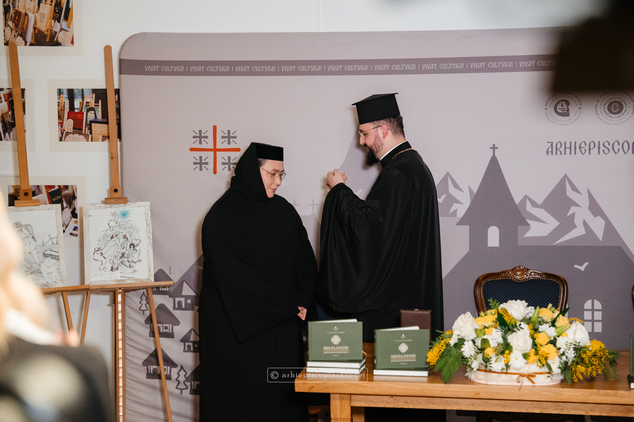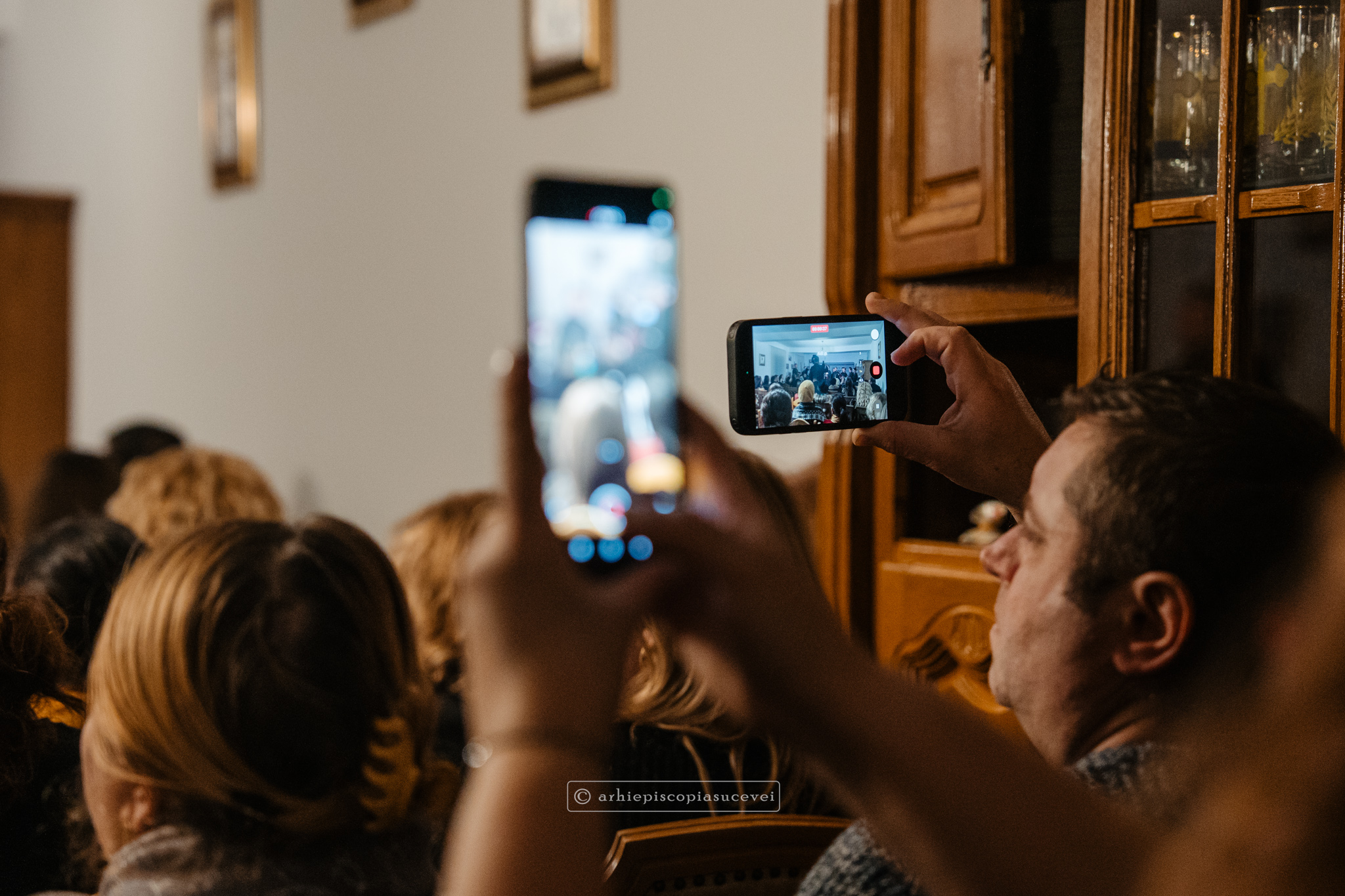 Întâlnirea, care s-a dovedit a fi prilej de comuniune în bucurie, transmisă în direct de Sectorul Media și Comunicare al Centrului Eparhial Suceava pe pagina oficială de Facebook a Arhiepiscopiei Sucevei și Rădăuților și pe paginile partenerilor media, s-a încheiat cu vizitarea Salonul de carte al Editurii Crimca a Arhiepiscopiei Sucevei și Rădăuților.
