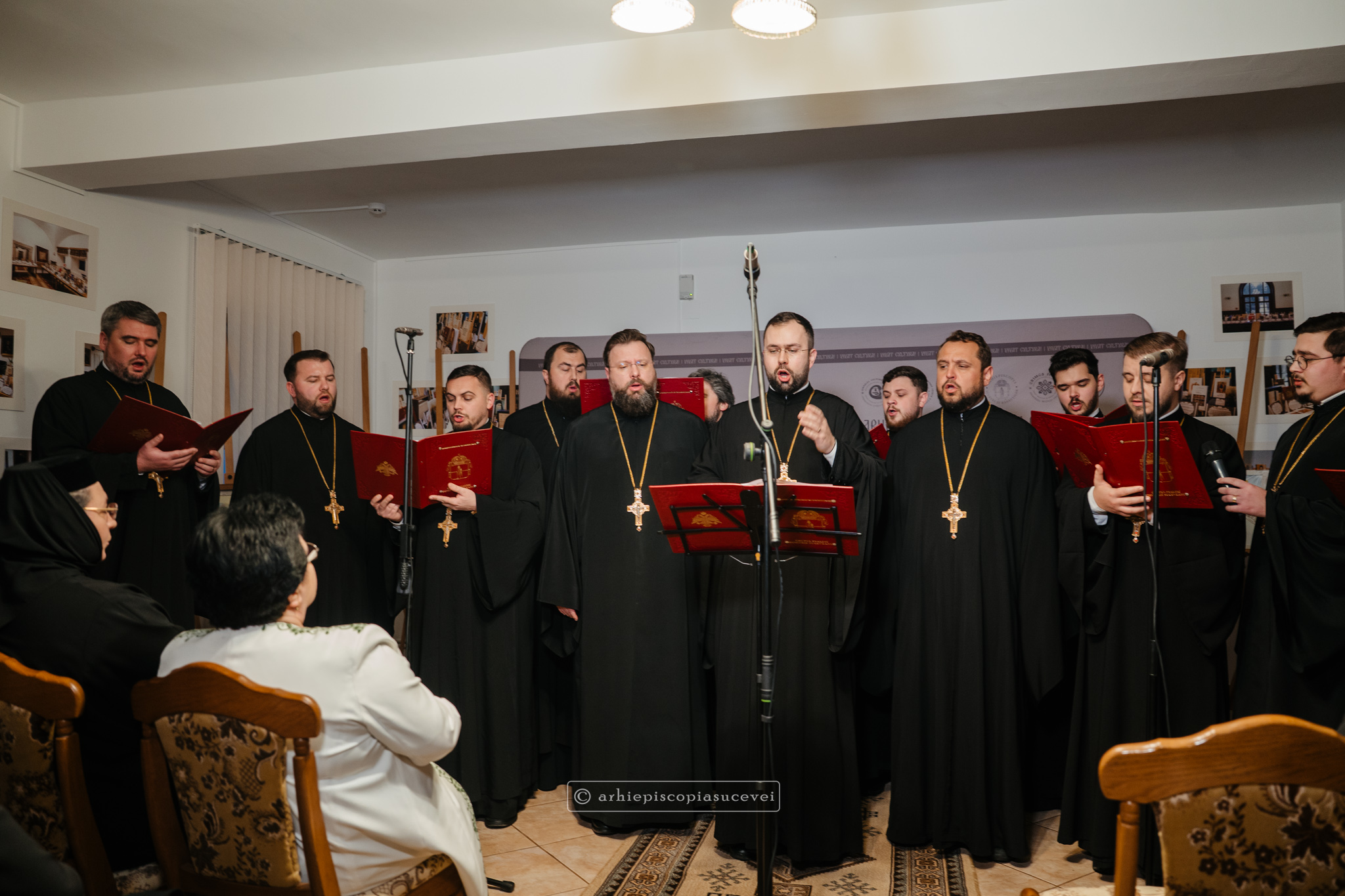 După momentul de împreună rugăciune prin care s-a pus început bun întâlnirii, Grupul Psaltic „Dimitrie Suceveanu” al Catedralei Arhiepiscopale din Suceava, invitat special în cadrul evenimentului, a oferit în dar publicului prezent un concert inedit care a împletit profunzimea cântărilor bizantine cu frumusețea melodiilor patriotice. Repertoriul ales, dar mai ales maniera de interpretare au luminat inimile și chipurile celor prezenți, prețiosul cadou fiind răsplătit cu numeroase aplauze.