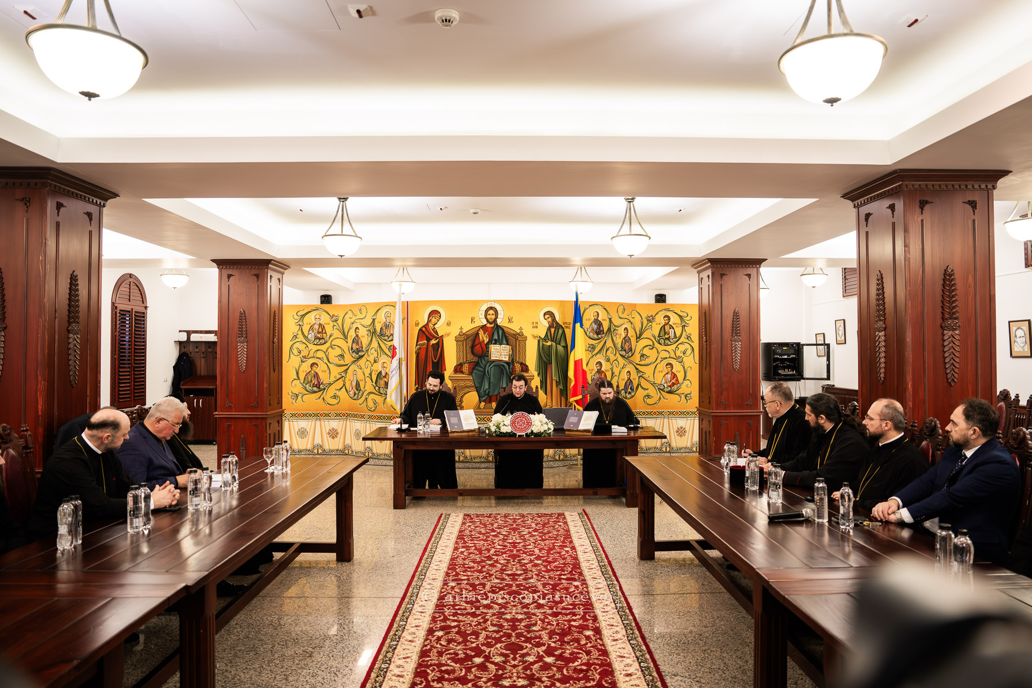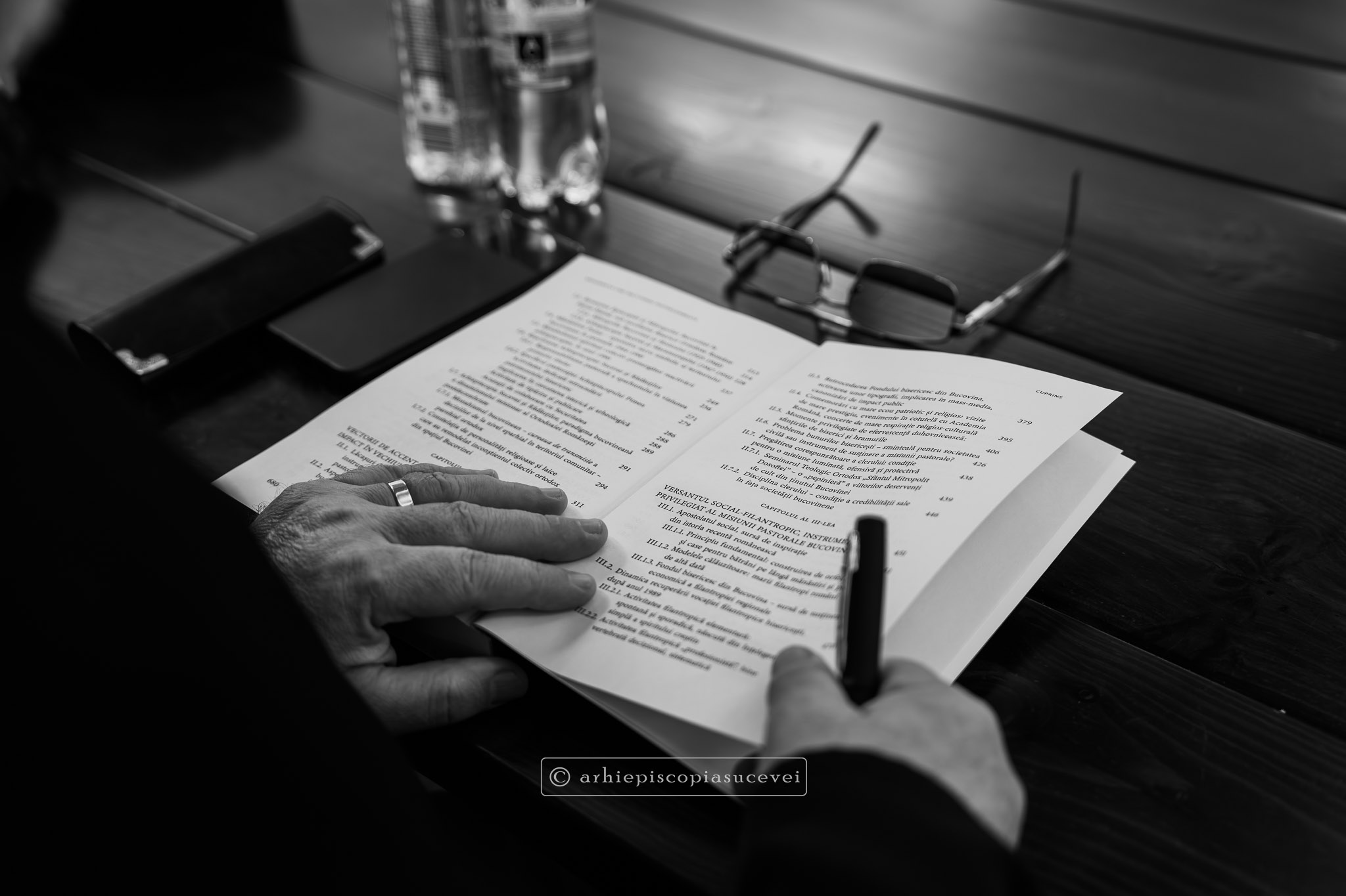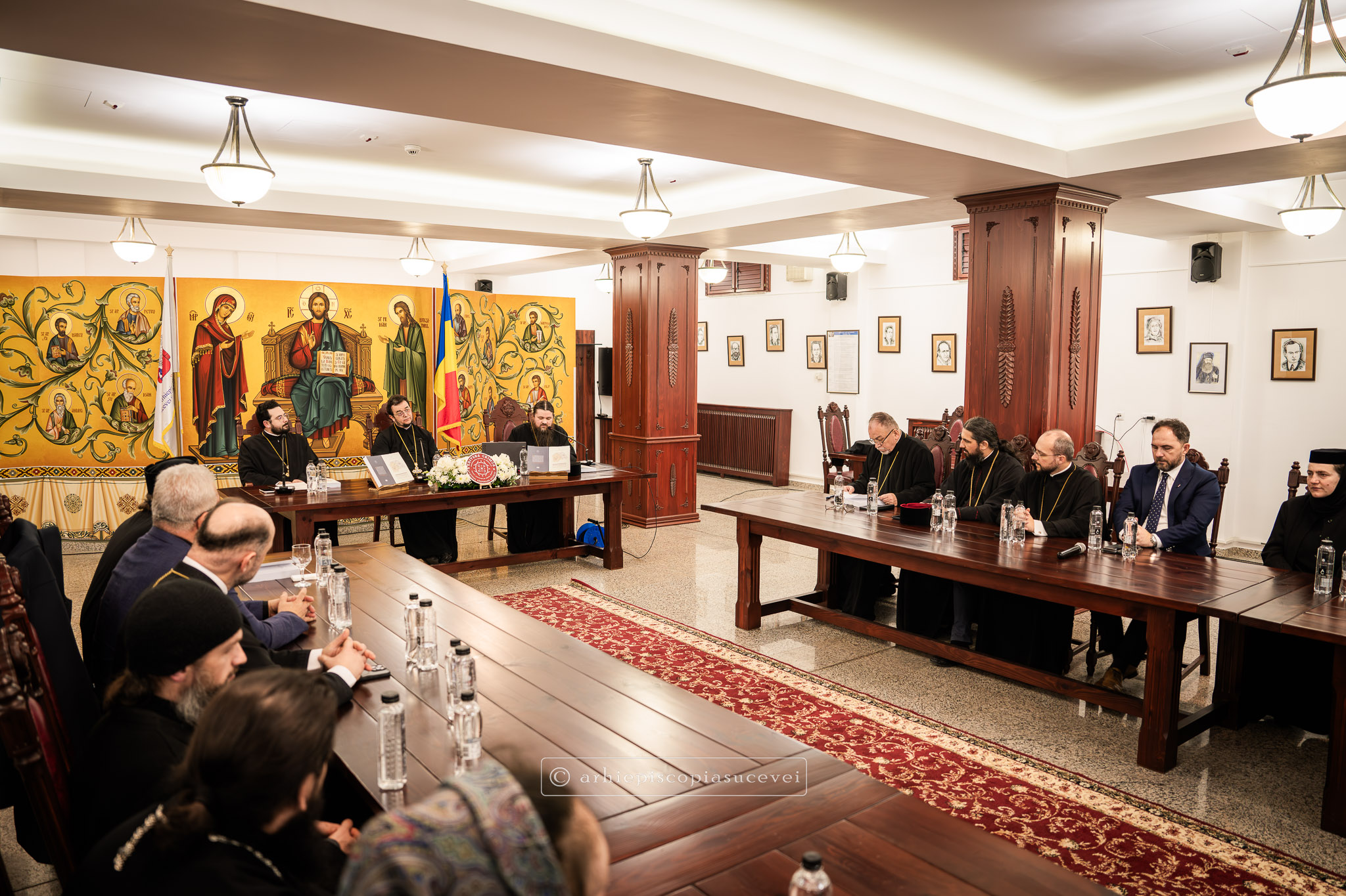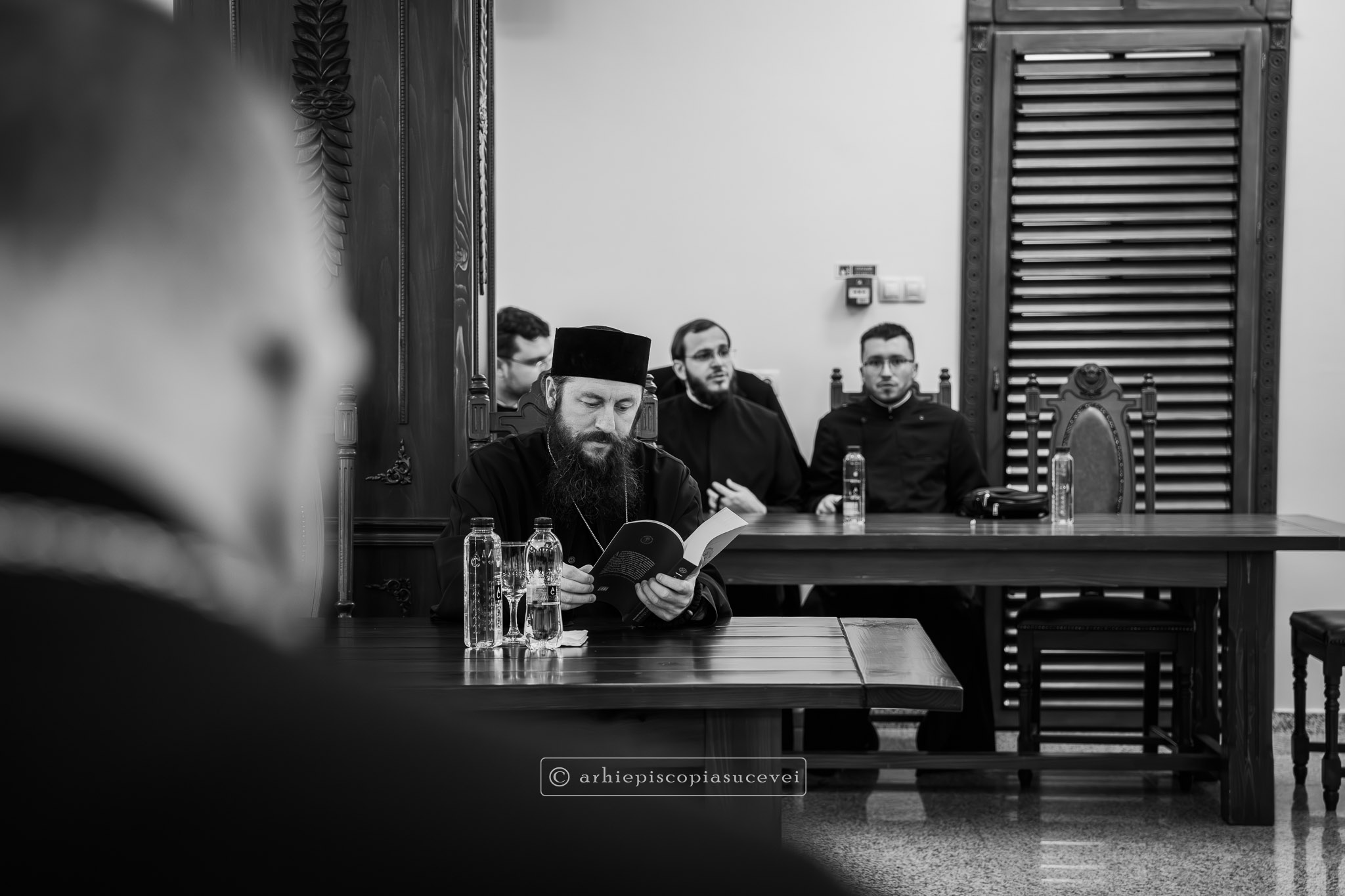 După rostirea Rugăciunii Domnești, evenimentul a continuat cu prezentarea pr. Ștefănel Ciurciun, director al departamentului Editură și Tipografie din cadrul Sectorului Cultural al Arhiepiscopiei și moderator al manifestării. Sfinția sa a subliniat faptul că volumul nu este doar o cronică istorică, ci o analiză pastorală profundă care documentează modul în care Biserica a oferit stabilitate comunității într-o perioadă de incertitudine socială. A fost evocat rolul deosebit pe care în cele trei decenii (1990-2020) l-a avut Înaltpreasfințitul Părinte Pimen, „model viu de jertfă și de constanță”, lucrarea demonstrând cum filantropia, cultura și educația s-au împletit armonios cu viața liturgică pentru a sprijini credincioșii acestor locuri. Părintele director a punctat și faptul că fiind bazată pe o cercetare academică solidă, cartea reprezintă o datorie de conștiință și un act de recunoștință față de eforturile clerului și monahismului, consemnarea scrisă a acestor realizări fiind esențială pentru a asigura păstrarea identității și memoriei spirituale a eparhiei.