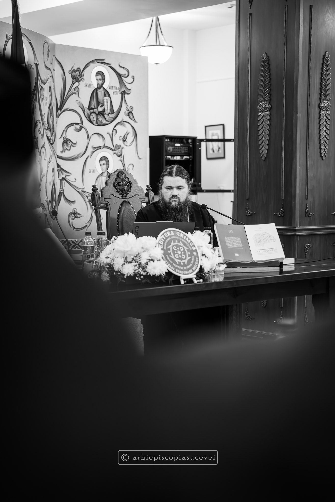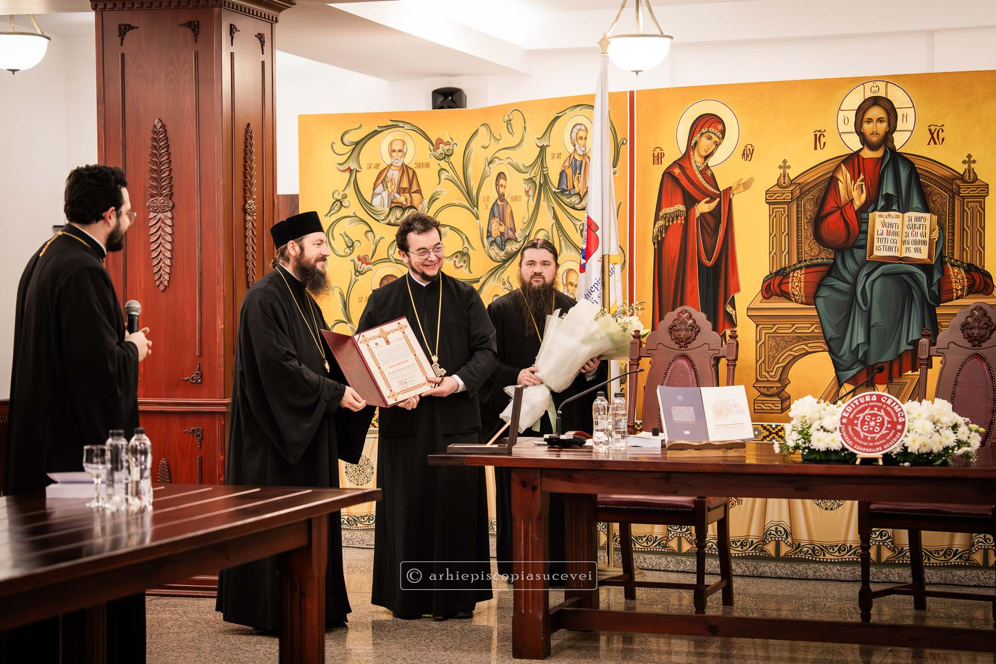 Într-un început luminos de primăvară, în după-amiaza zilei de miercuri, 4 martie 2026, Sala „Pimen Arhiepiscopul” a Centrului Eparhial Suceava a fost gazda evenimentului de lansare al celui mai recent volum publicat la Editura Crimca, „Radiografia unei rectitoriri postdecembriste: Arhiepiscopia Sucevei și Rădăuților (1990-2020)”, lucrare de doctorat a arhim. Haralambie Țanef, stareț al Mănăstirii Mirăuți.