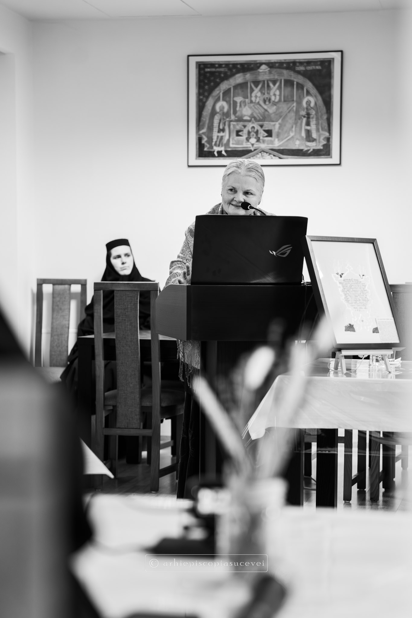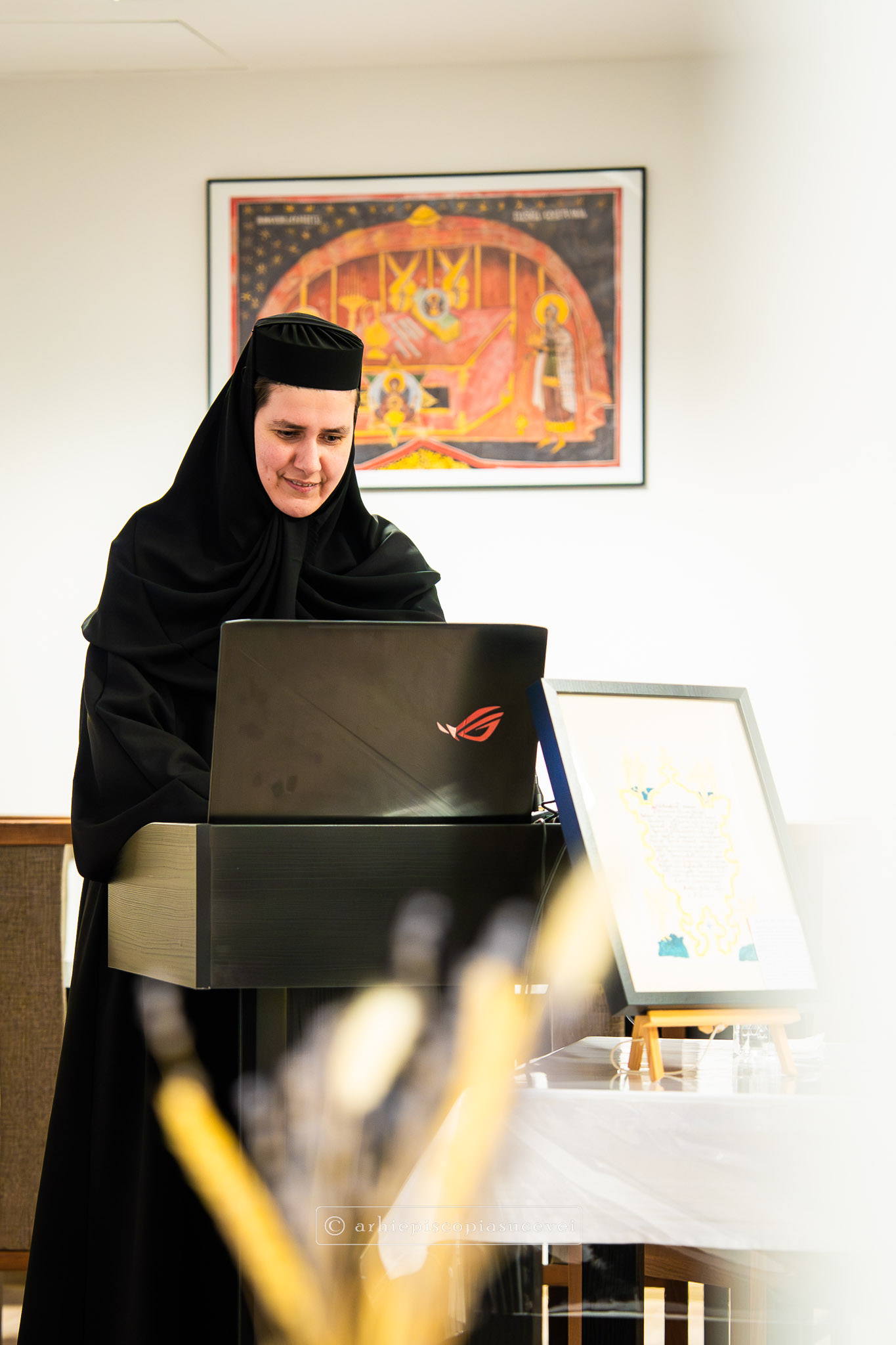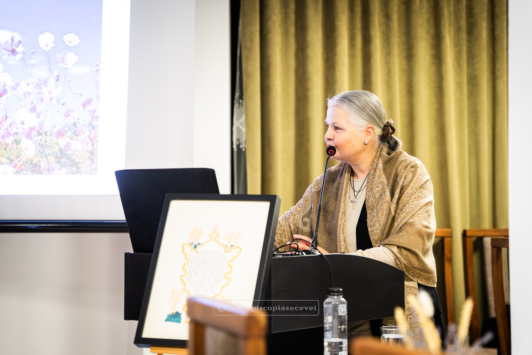 A urmat conferința „Mitropolitul Anastasie Crimca – mărturisitor prin artă”, susținută de prof. univ. dr. Mihaela Palade, de la Facultatea de Teologie Ortodoxă a Universității București. Domnia sa a adus în atenție viața și opera celui care a făcut ca Dragomirna să rămână peste veacuri locul binecuvântat cu pace, lumină, rugăciune și bucurie. În cadrul prelegerii a fost remarcată valoarea artistică excepțională a Psaltirii de la Dragomirna, o lucrare rară prin bogăția sa ornamentală, având în vedere că psaltirile sunt, în mod tradițional, cărți cu decor minimal. Totodată, a fost remarcată importanța simbolismului floral din manuscrise, făcând o paralelă între frumusețea Raiului și capacitatea specific umană de a exprima splendoarea divină prin forme sensibile. Doamna Mihaela Palade a invocat perspective teologice ale Sfinților Părinți și ale Sfântului Preot Dumitru Stăniloae, pentru a demonstra că actul artistic este o formă de laudă adusă lui Dumnezeu. Nu în ultimul rând, invitata specială a serii a evidențiat măiestria miniaturilor moldovenești, considerate repere de neegalat în patrimoniul cultural al Țărilor Române.