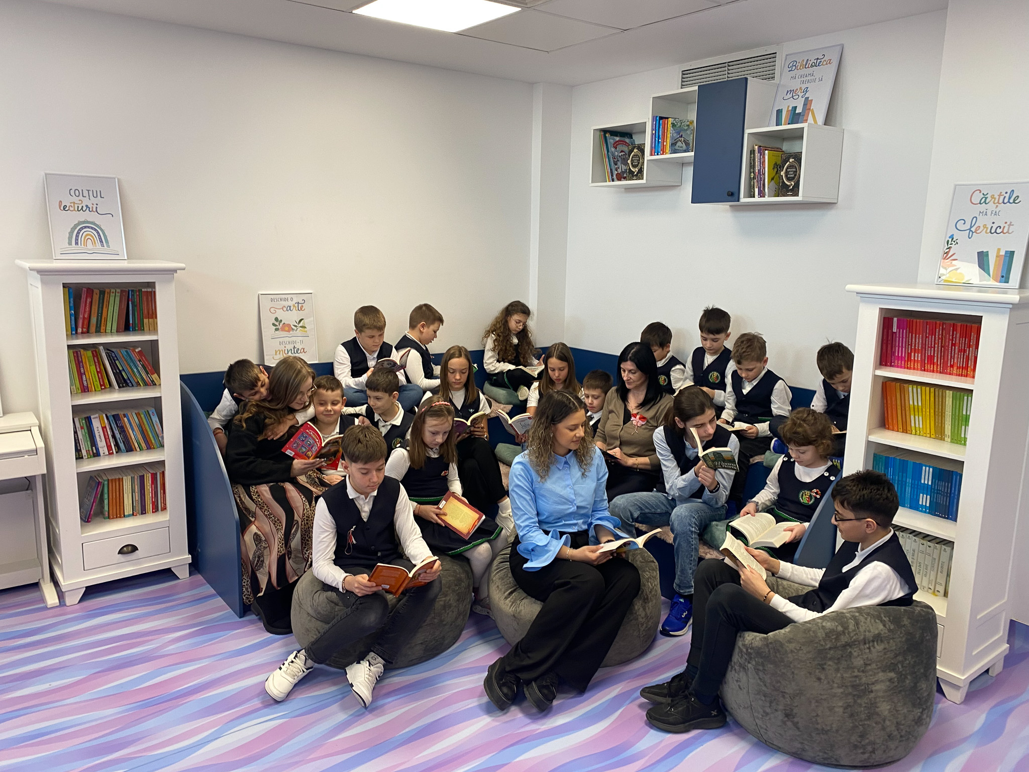 În după-amiaza zilei de 3 martie a.c., elevi și profesori deopotrivă au petrecut timp de calitate și au sărbătorit Ziua Internațională a Scriitorilor într-un spațiu nou, înconjurați de cărți. Amenajarea acestui spațiu a fost o împreună-lucrare între fundație, elevi și părinți, fiecare contribuind cu titluri, atât din lectura recomandată de profesorii de limba și literatura română, cât și din alte domenii de interes pentru elevi.