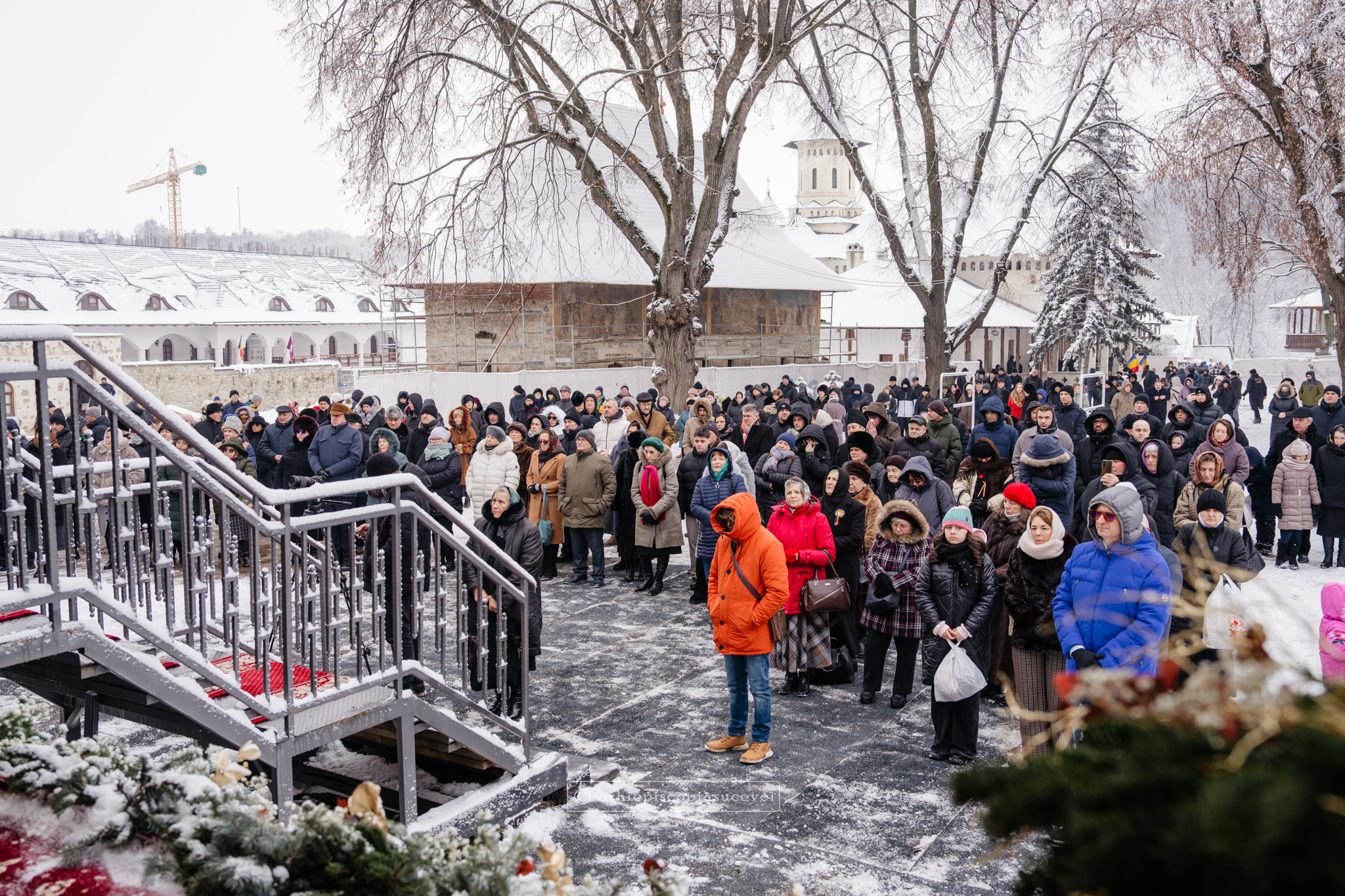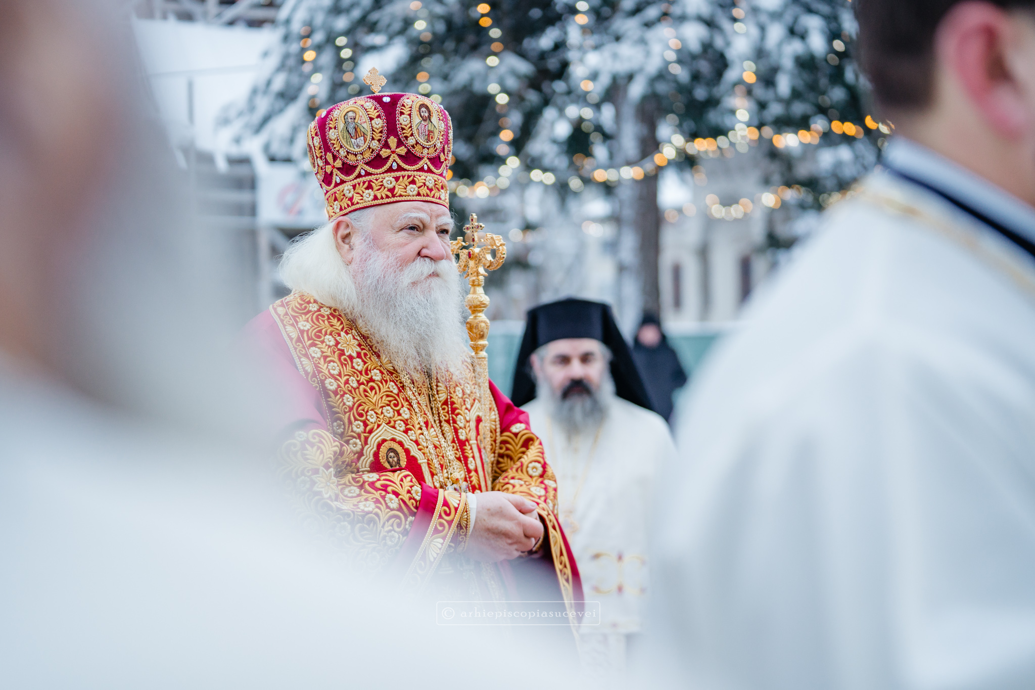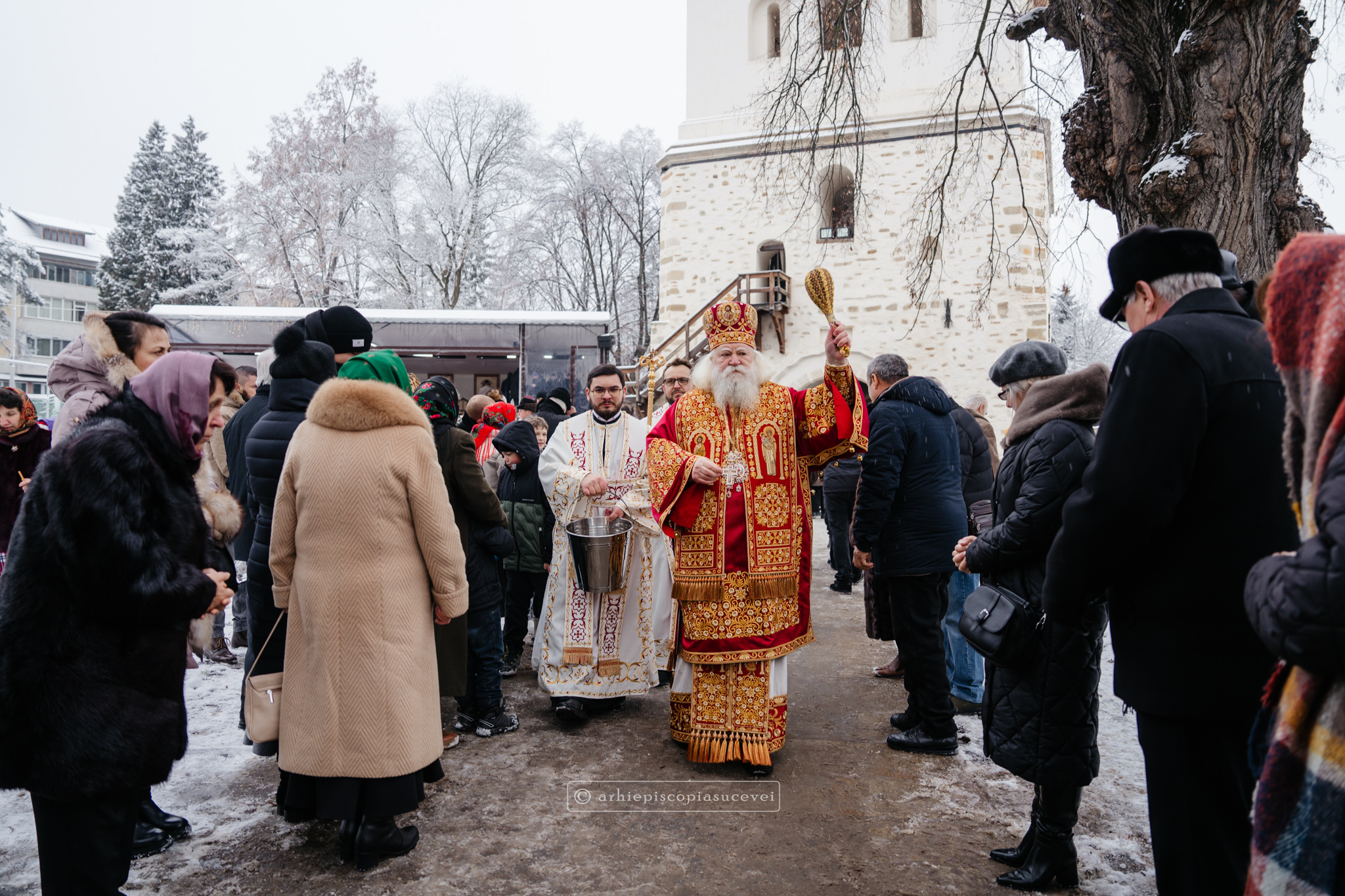 La ceas de sărbătoare pentru întreaga creștinătate, lumina tainică a Praznicului Nașterii Domnului care s-a revărsat în sufletele tuturor celor care cinstesc venirea în lume a Fiului lui Dumnezeu s-a oglindit și pe chipurile credincioșilor prezenți la Mănăstirea Sfântului Ioan cel Nou, Catedrala Arhiepiscopală din Suceava. În pofida temperaturilor scăzute, Ajunul Crăciunului aducând și un strat generos de zăpadă, aceștia au poposit între zidurile ansamblului monastic pentru a se întâlni la vreme de bucurie cu sfântul mult iubit, prin închinarea la cinstitele moaște ale Marelui Mucenic Ioan, și pentru a primi binecuvântarea arhierească.
