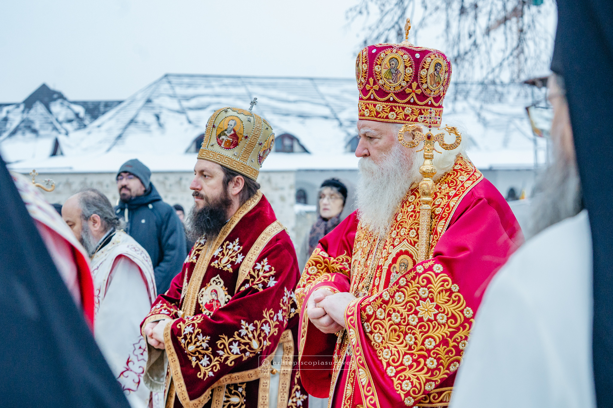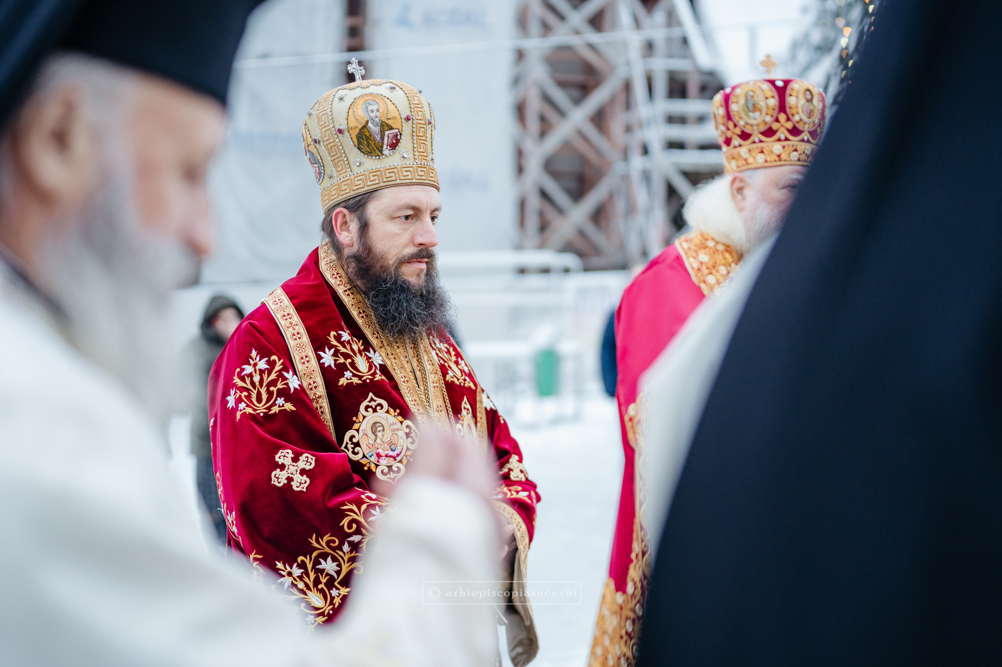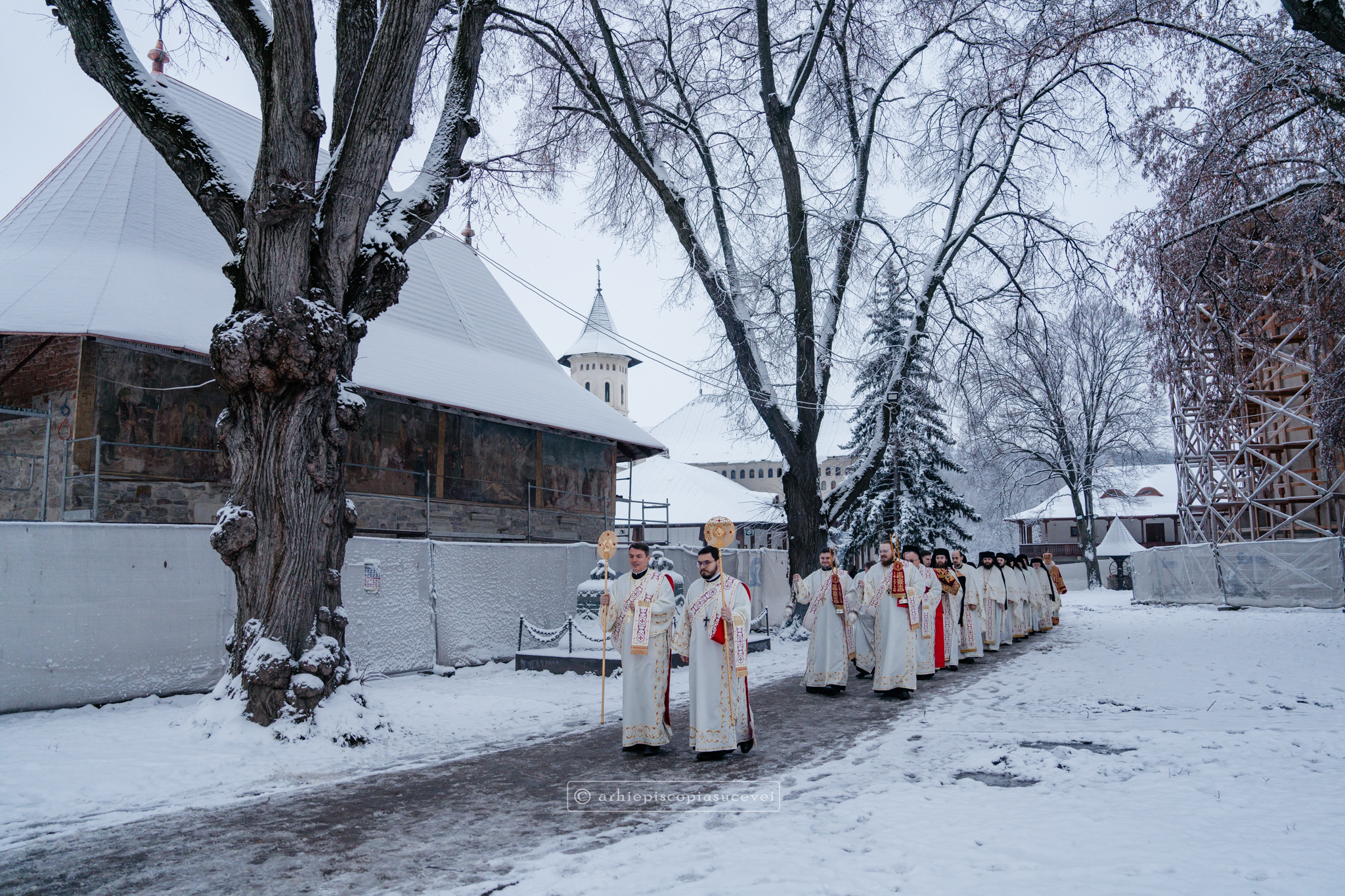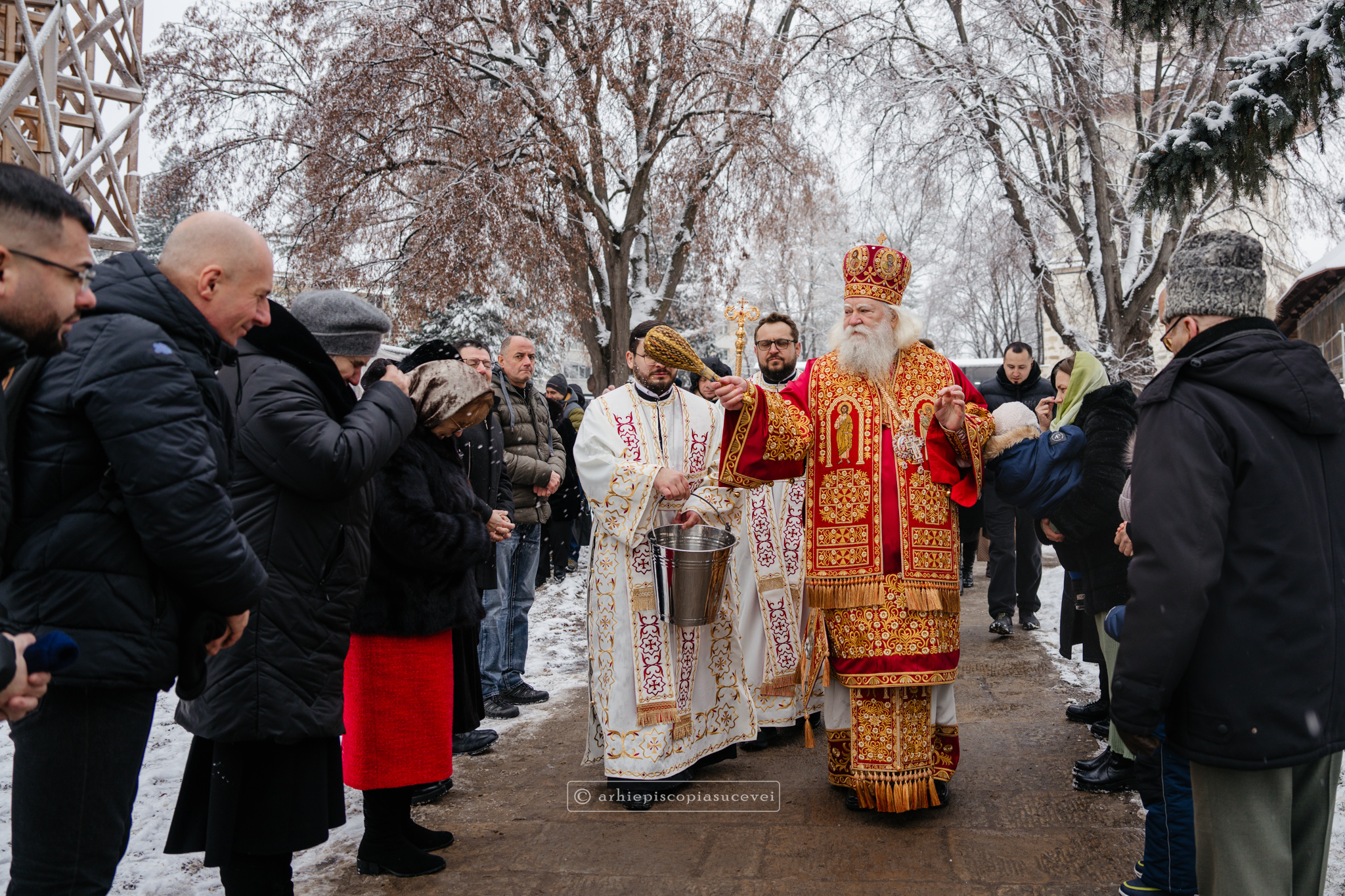 La ceas de sărbătoare pentru întreaga creștinătate, lumina tainică a Praznicului Nașterii Domnului care s-a revărsat în sufletele tuturor celor care cinstesc venirea în lume a Fiului lui Dumnezeu s-a oglindit și pe chipurile credincioșilor prezenți la Mănăstirea Sfântului Ioan cel Nou, Catedrala Arhiepiscopală din Suceava. În pofida temperaturilor scăzute, Ajunul Crăciunului aducând și un strat generos de zăpadă, aceștia au poposit între zidurile ansamblului monastic pentru a se întâlni la vreme de bucurie cu sfântul mult iubit, prin închinarea la cinstitele moaște ale Marelui Mucenic Ioan, și pentru a primi binecuvântarea arhierească.