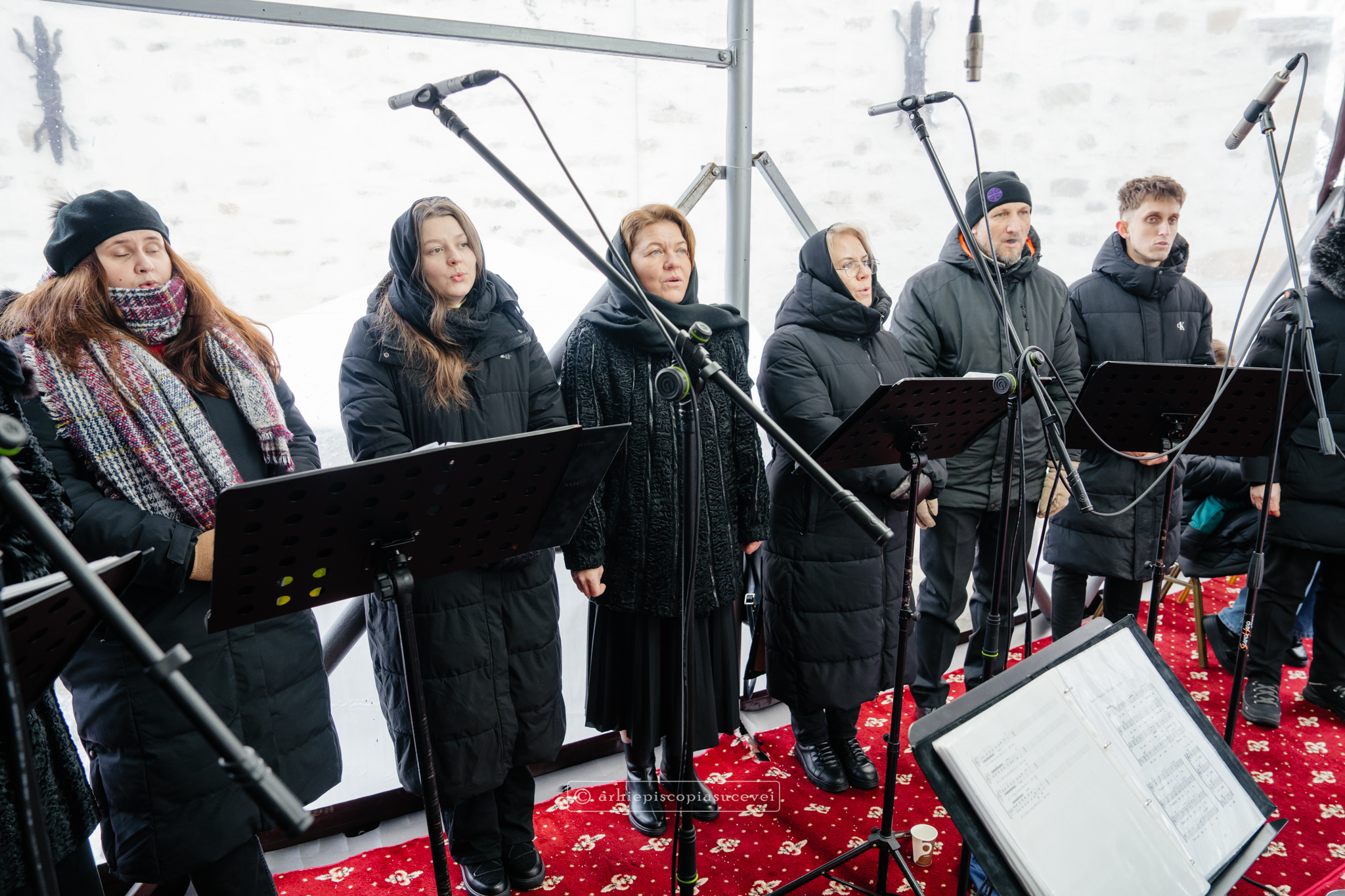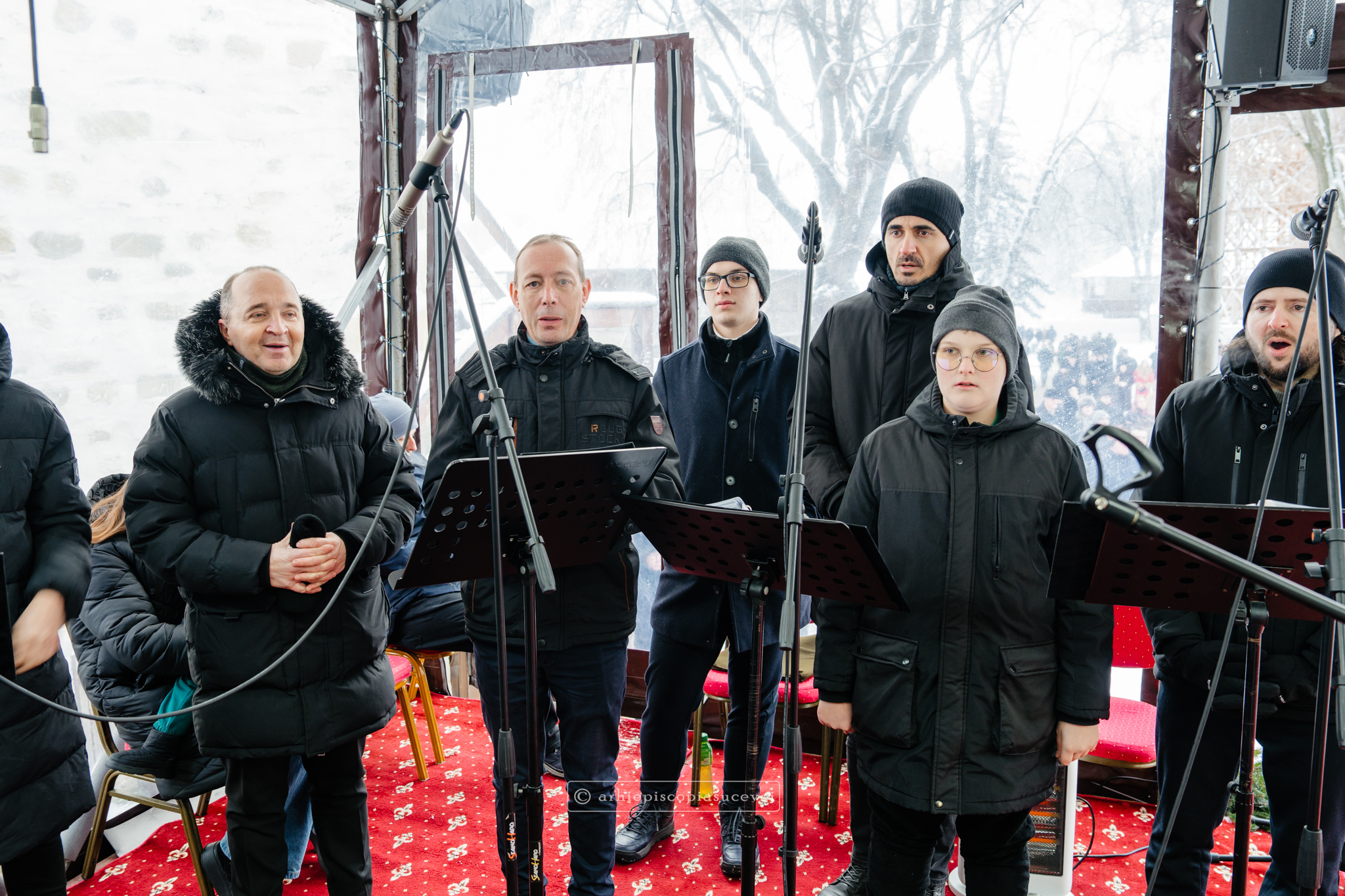 Ca de fiecare dată, slujba a fost împodobită cu răspunsurile liturgice oferite de Corala mixtă „Sfântul Ioan cel Nou” a Catedralei Arhiepiscopale, dirijată de părintele Lucian-Ionuț Tablan Popescu. Pentru a încununa bucuria acestei zile închinate venirii în lume a Pruncului Iisus, membrii corului au susținut un scurt recital de colinde la momentul Chinonicului, bucurându-i astfel pe toți cei prezenți cu Vestea cea bună.