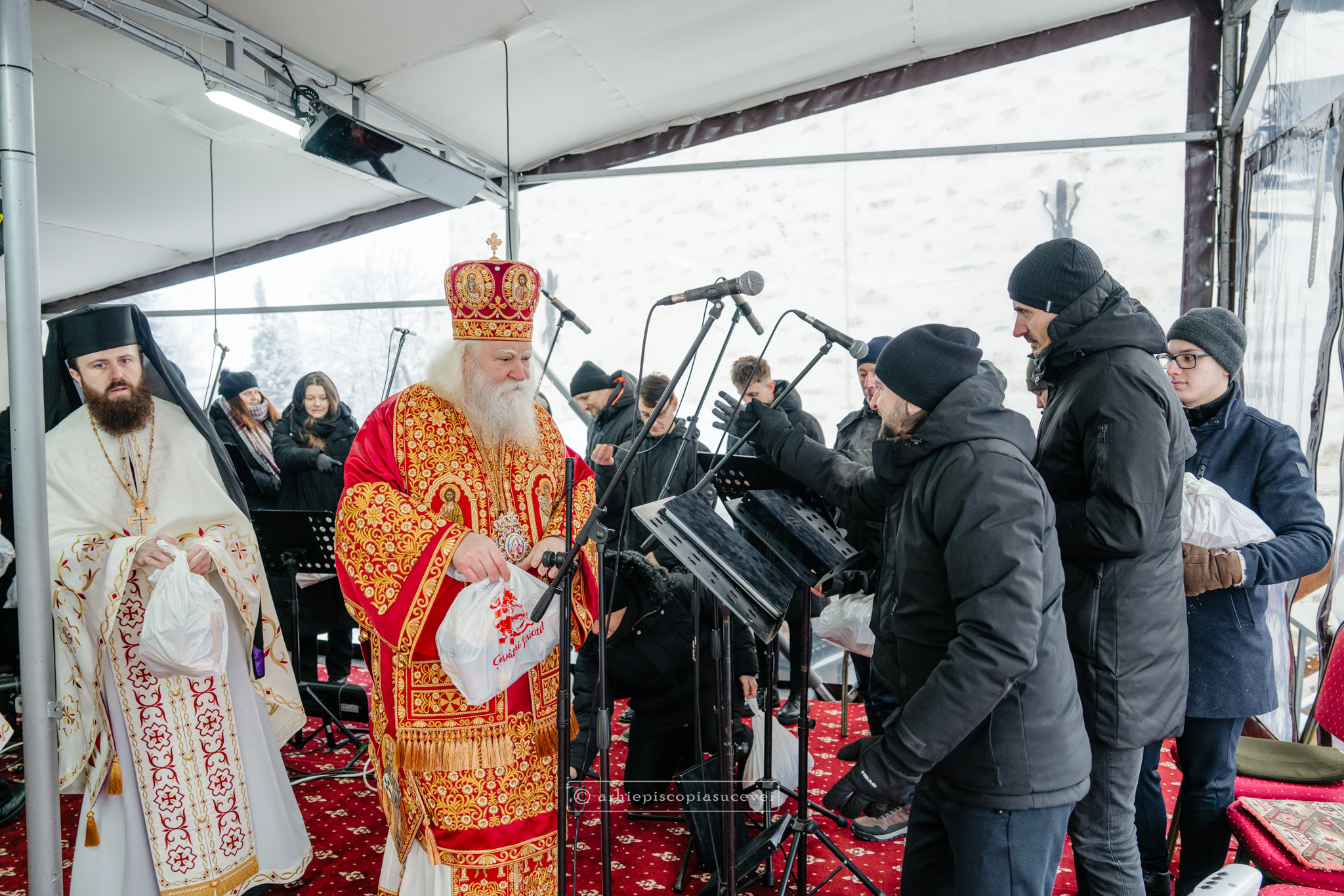 Vestitorii Nașterii Domnului au fost răsplătiți cu daruri, iar înainte de a se îndrepta spre casele lor, cei prezenți au fost binecuvântați de cei doi ierarhi prin stropire cu apă sfințită, bucurându-se apoi de un mic dar oferit de obștea mănăstirii condusă de arhim. Serafim Grigoraș.