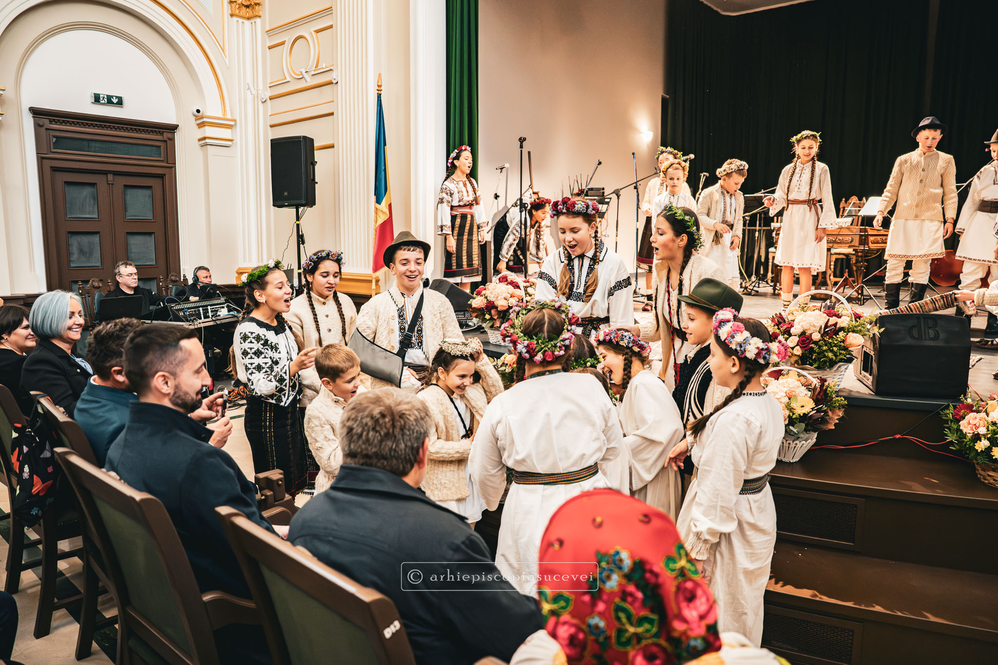 Frumusețea și profunzimea sufletului românesc de pretutindeni a fost oglindită încă din debutul evenimentului, în seara zilei de joi, 9 octombrie 2025, în cadrul concertului folcloric „De la Cernăuți la vale…”, moderat de domnul Remus Fandarac, artist popular. Cuvântul de bun venit a fost rostit de pr. Mihai Cobziuc, consilier eparhial în cadrul Biroului Relații cu minoritățile, promotor al manifestării. Sfinția sa a subliniat faptul că acest eveniment cultural-științific este sărbătoarea identității, a memoriei vii, a legăturii trainice dintre Bucovina istorică și prezentul ei plurivalent, „o punte între generații, între teritorii și destine, între rădăcinile noastre adânci, dar și înălțările pe care le visăm”.
