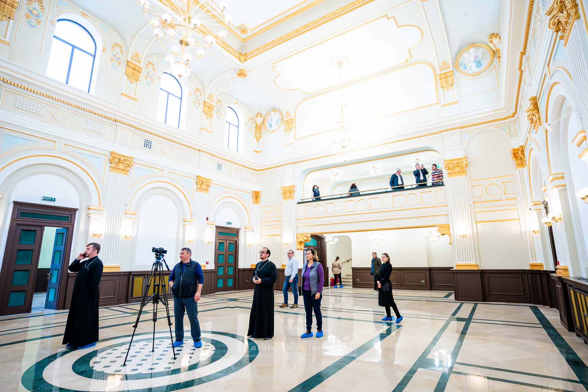 Comisia lucrărilor de recepție a fost formată din reprezentanți ai Fondului Bisericesc Ortodox Român al Bucovinei, ing. Ciprian Muscă (președinte al comisiei) și pr. Viorel Ilișoi, delegați ai Arhiepiscopiei Sucevei și Rădăuților, Mihaela Bogleș și pr. Ștefan Mihalcea, dar și reprezentanți ai Direcției Județene de Cultură Suceava, ai Inspectoratului Județean de Construcții și ai Inspectoratului Județean de Urgență Suceava. Au mai fost prezenți specialiști în construcții și instalații, membri ai echipei de proiect, precum și delegați ai firmei de construcții care s-a ocupat de lucrările de reabilitare a monumentului.