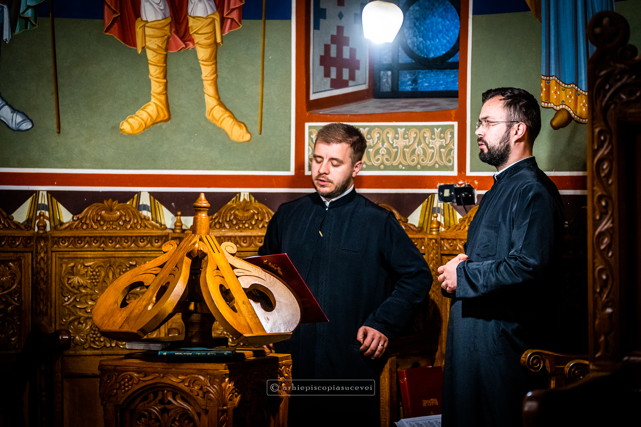 Ierarhul a săvârșit Sfânta și Dumnezeiasca Liturghie alături de arhim. Paraschiv Dabija, vicar administrativ al Arhiepiscopiei Sucevei și Rădăuților, și pr. Constantin Ciprian Blaga, consilier în cadrul Sectorului Editură și Tipografie al Centrului Eparhial Suceava.