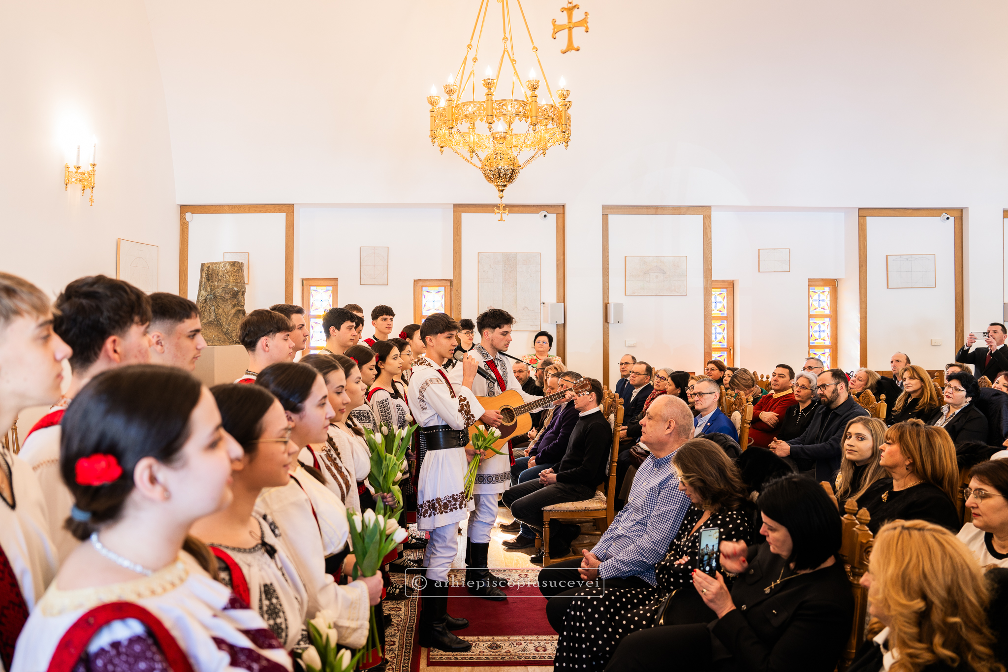 Grupul vocal-tradițional „Ai lui Ștefan, noi oșteni” de la Liceul Tehnologic „Ion Nistor” Vicovu de Sus, coordonat de prof. Vasile Schipor, director, a susținut recitalul „Dragostea de neam și țară”, un grupaj de tulburătoare cântece patriotice și pricesne specifice perioadei prepascale. Tinerii, îmbrăcați în frumosul costum popular specific zonei, au oferit la final flori ale primăverii, lalele albe, publicului prezent, care s-a dovedit a fi cu adevărat emoționat de profunzimea momentului artistic.