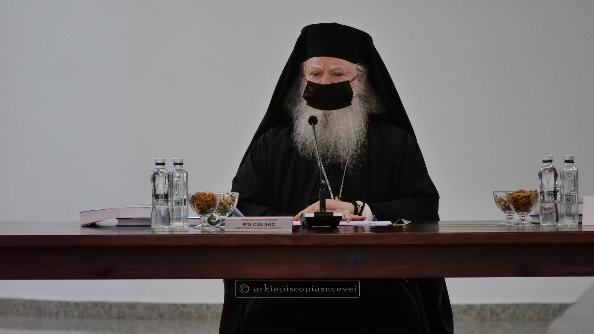 În cuvântul de încheiere, Înaltpreasfințitul Părinte Calinic a adus prinos de recunoștință celor care s-au implicat în buna desfășurare a lucrării Arhiepiscopiei Sucevei și Rădăuților în anul 2021 și a subliniat că toate aceste realizări constituie rezultatul strădaniei tuturor. „Toată această activitate, înregimentată în paginile volumului pe care l-ați primit în dar, nu s-a făcut de către un singur om, ci este vorba de o împreună-lucrare. Din acest motiv, aș vrea să mulțumesc părinților consilieri, părinților protopopi, preacuvioșilor părinți exarhi și stareți, preacuvioaselor maici starețe, părinților din parohii și mănăstiri, monahilor și monahiilor care ostenesc în sfintele noastre mănăstiri și schituri, autorităților centrale, județene și locale, conducerii diferitelor instituții și tuturor celor care au sprijinit activitățile și lucrarea Bisericii din Bucovina, precum și credincioșilor și credincioaselor din arhiepiscopia noastră. Un gând de recunoștință se cuvine și celor care nu mai sunt, strămutându-se dureros de neașteptat la cele veșnice, dar care s-au ostenit alături de noi în anul ce a trecut.”
