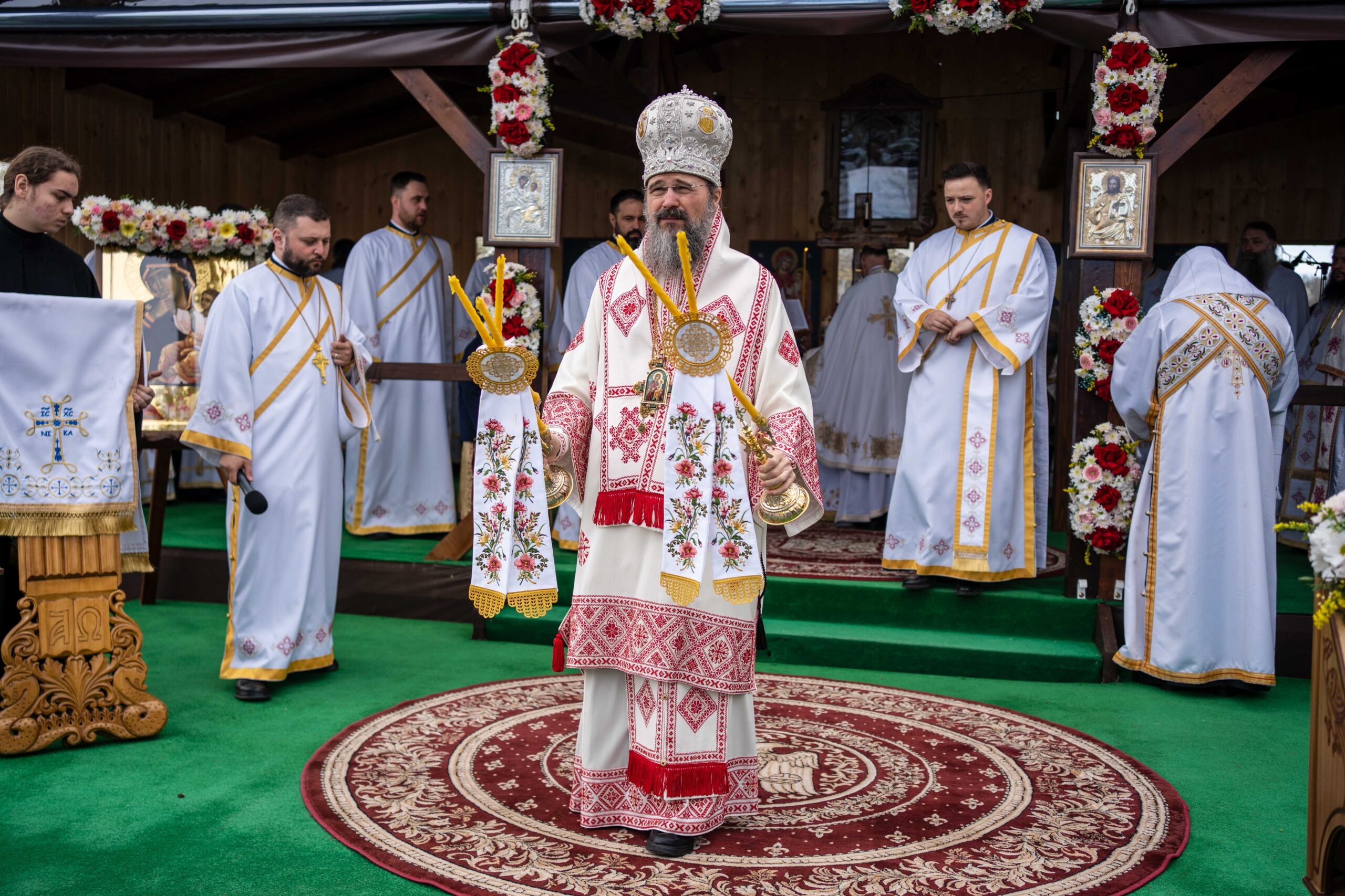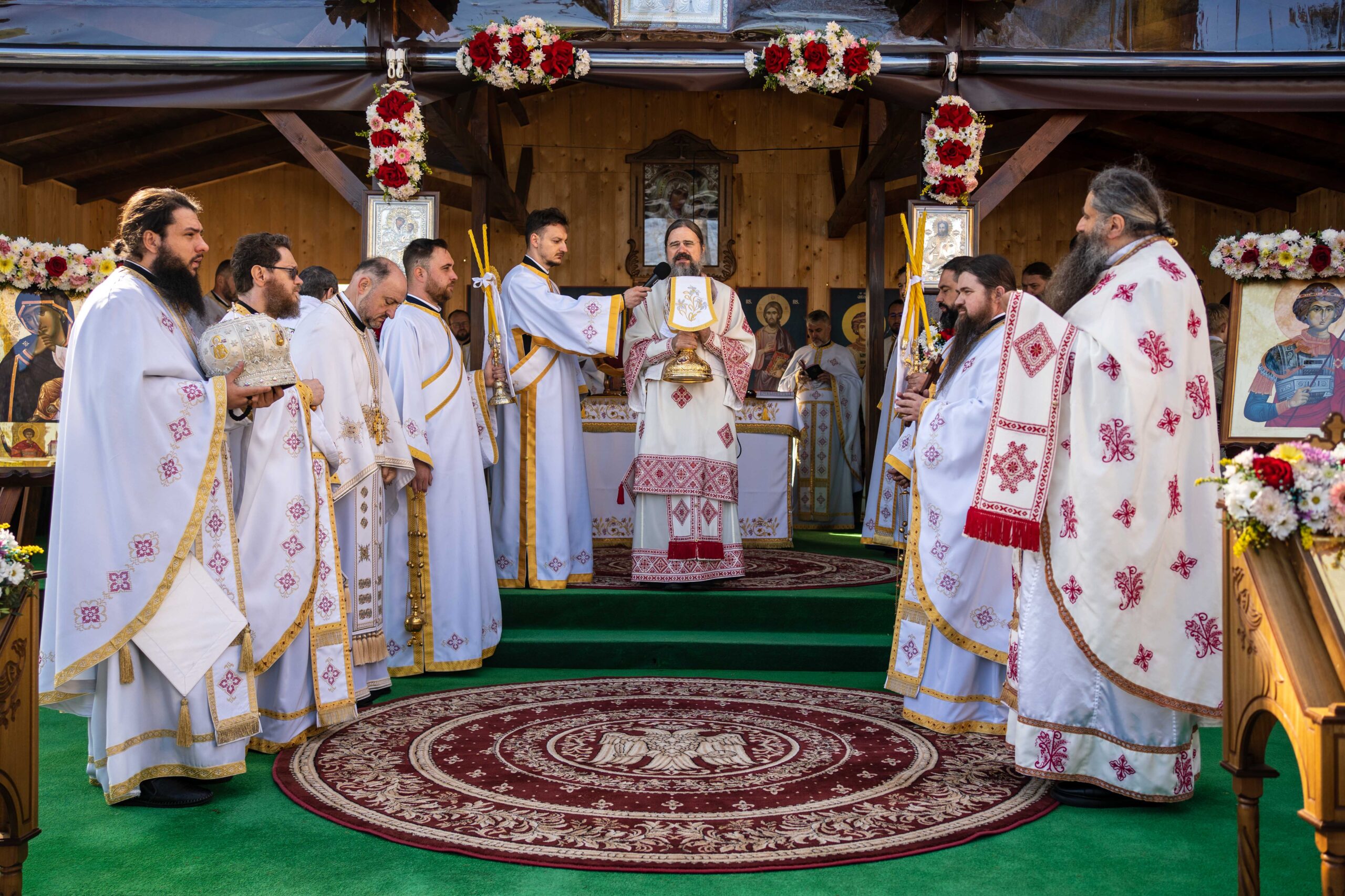 Preasfinția Sa a săvârșit apoi Sfânta Liturghie pe un podium special amenajat în incinta complexului monastic, alături de un sobor de preoți și diaconi, între care și pr. Ionel Doru Budeanu, protoiereu al Protopopiatului Suceava I.