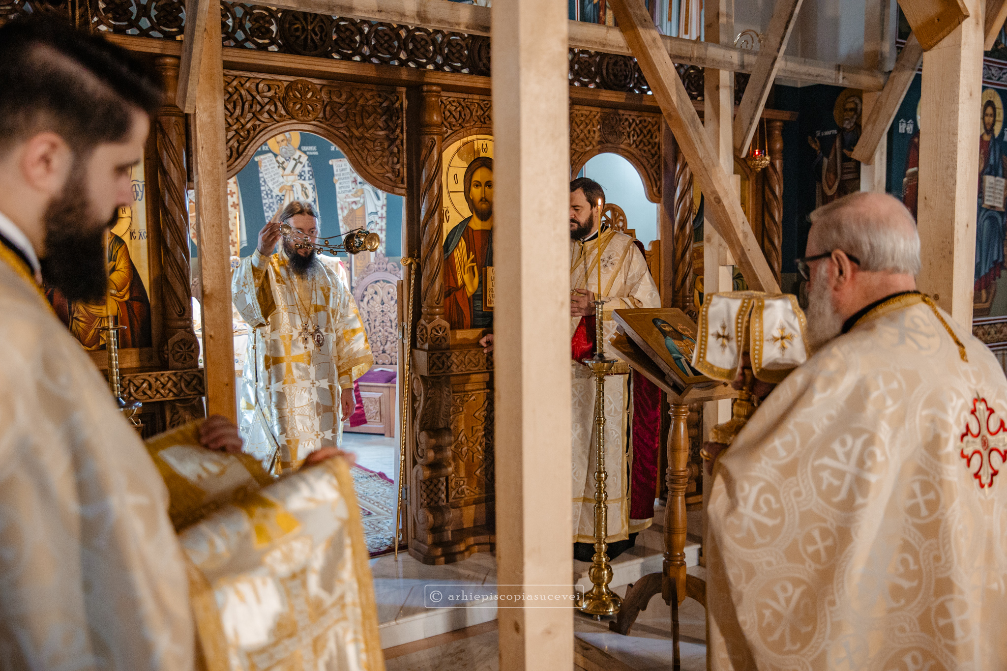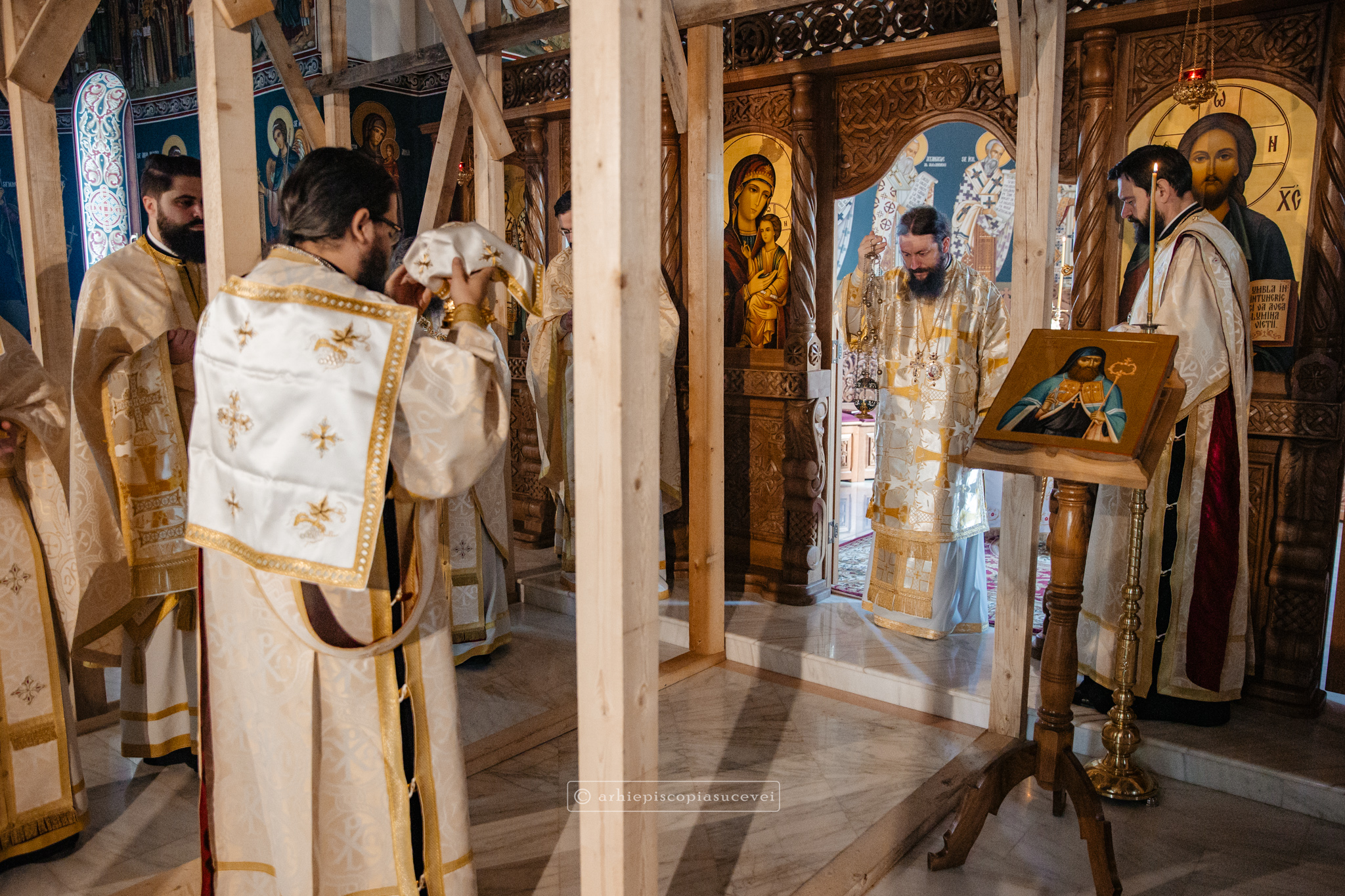 Programul sărbătorii a debutat în ajun prin săvârșirea slujbei Vecerniei unite cu Litia, oficiată de Preasfințitul Părinte Damaschin Dorneanul, Episcop-Vicar al Arhiepiscopiei Sucevei și Rădăuților. Ierarhul a fost înconjurat de un sobor de preoți și diaconi, cadre didactice ale instituției de învățământ, cărora li s-a alăturat Arhim. dr. Hrisostom Ciuciu, cadru didactic la Facultatea de Teologie Ortodoxă „Sfântul Dumitru Stăniloae” din Iași și viețuitor al Mănăstirii Putna.