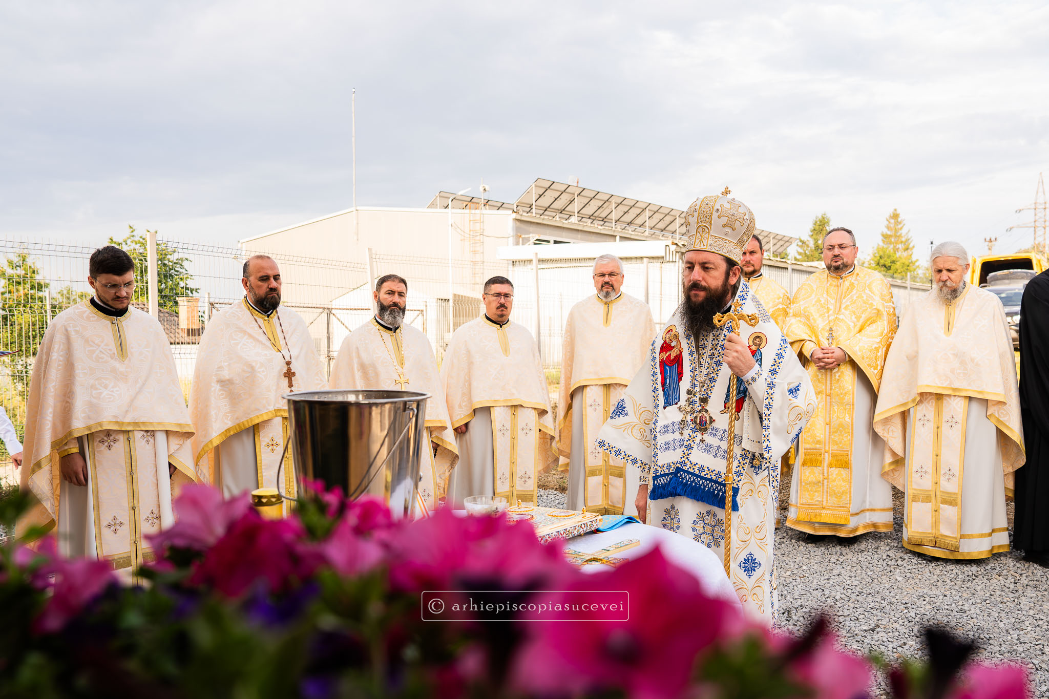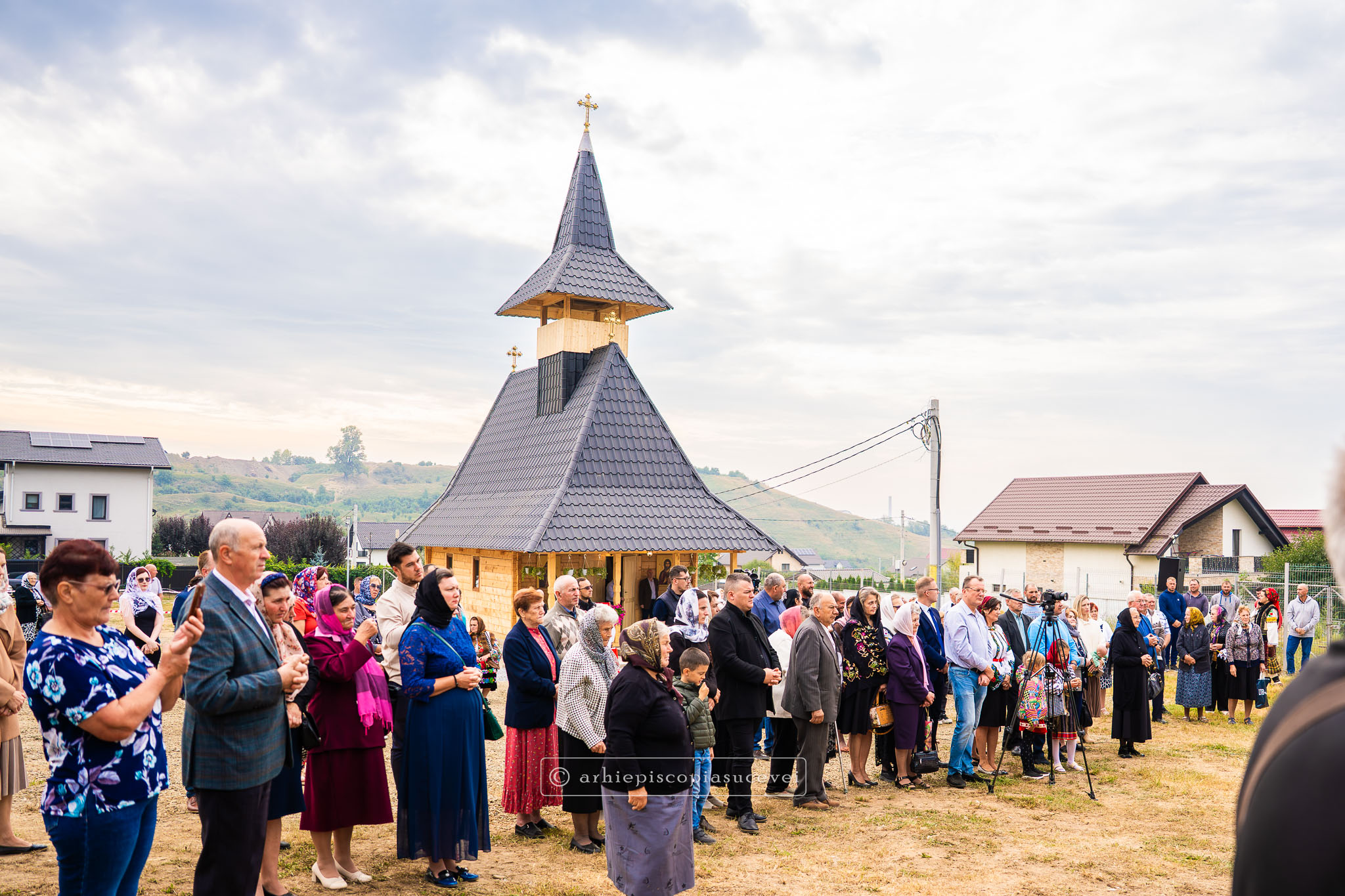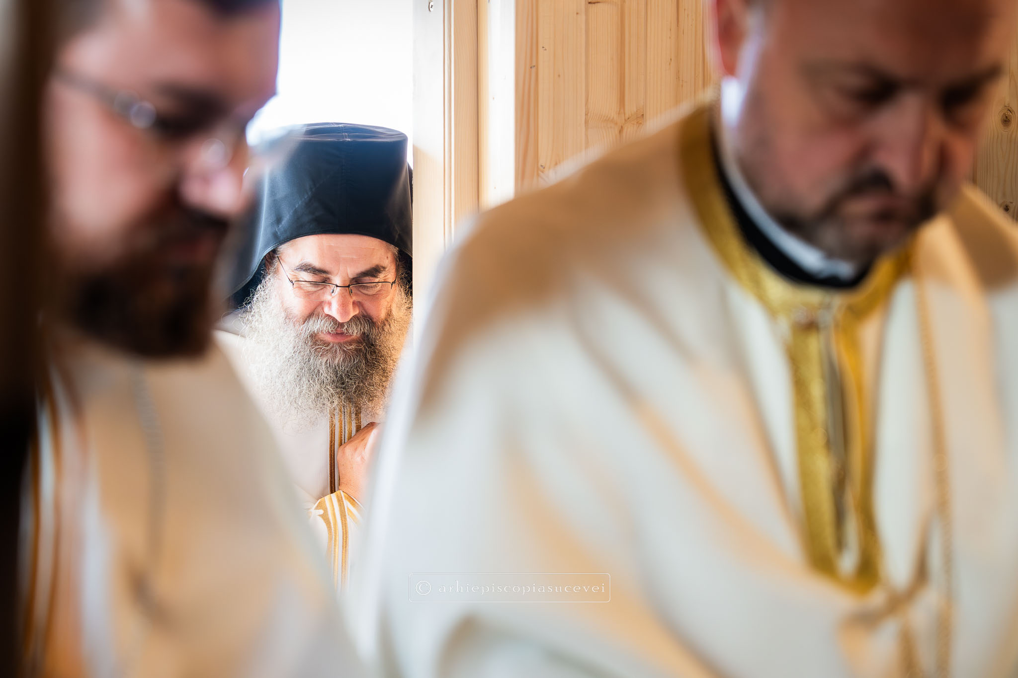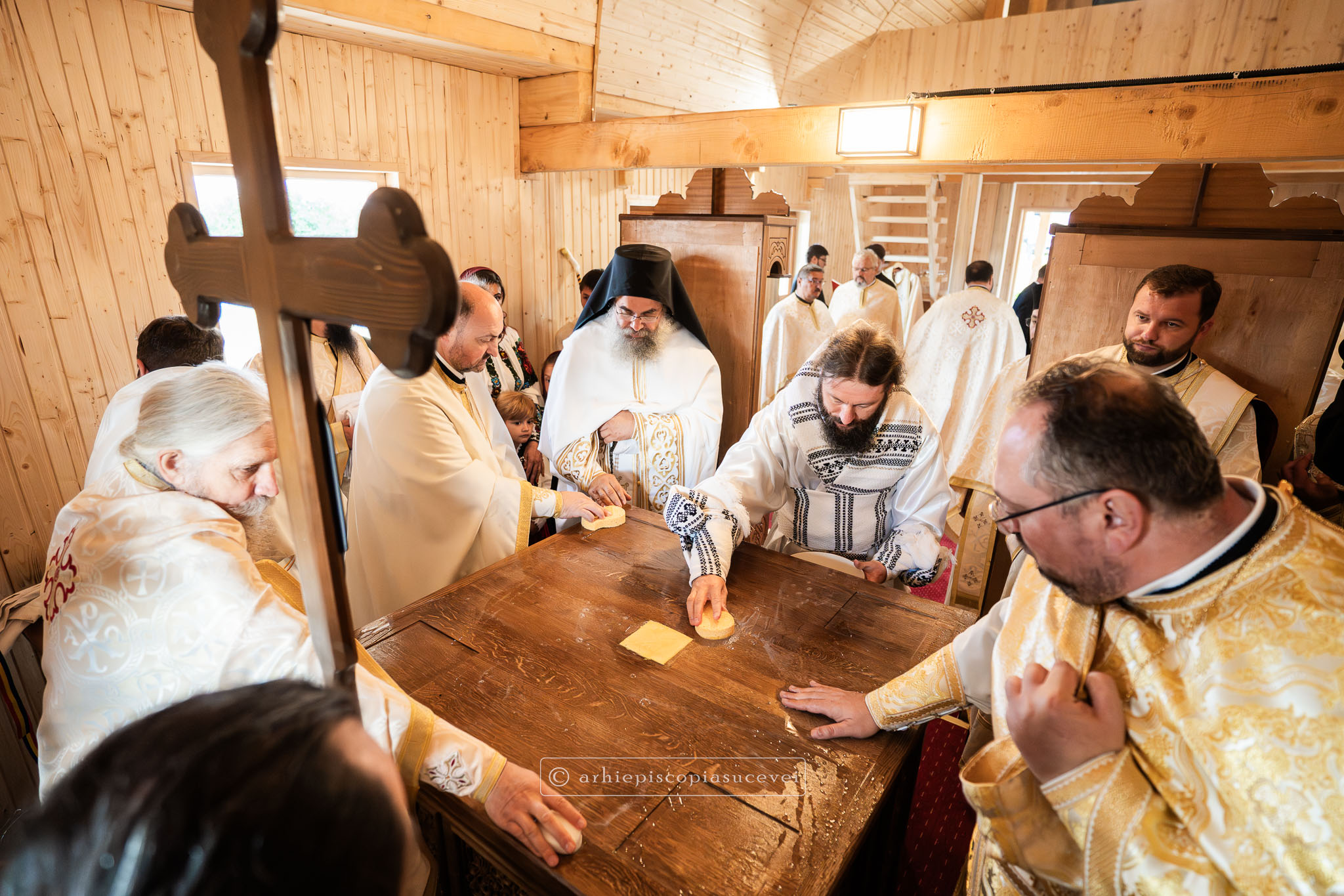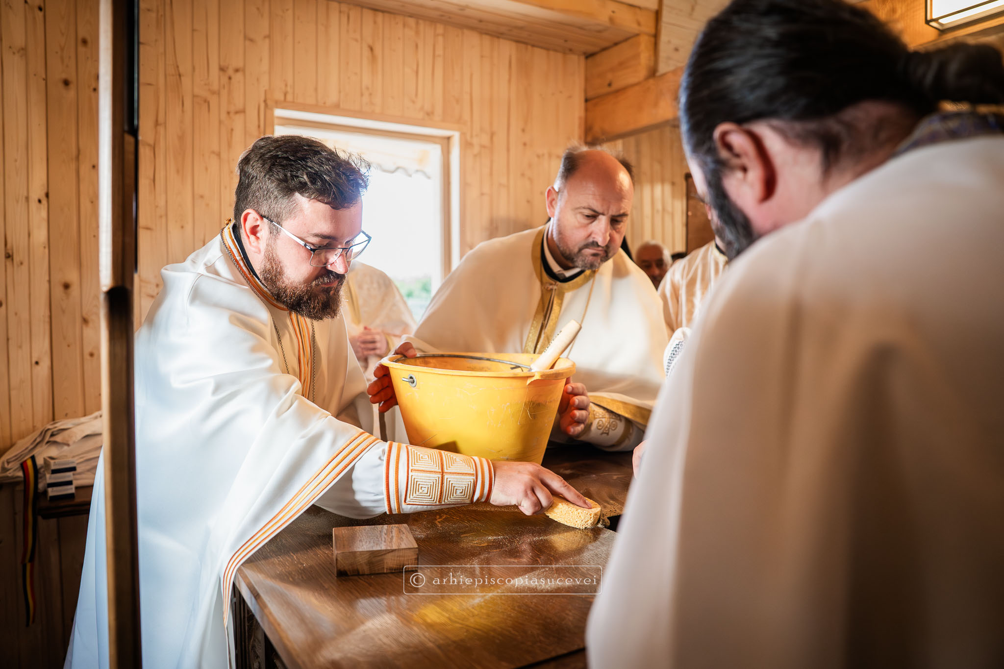 După ce a fost întâmpinat în cartierul sucevean La pădurea de stejari cu pâine și sare, potrivit obiceiului, Preasfințitul Părinte Damaschin Dorneanul a săvârșit slujba de binecuvântare a noului locaș de cult, înveșmântat astfel în lumină și har cu voia Tatălui, cu ajutorul Fiului și cu săvârșirea Sfântului Duh.