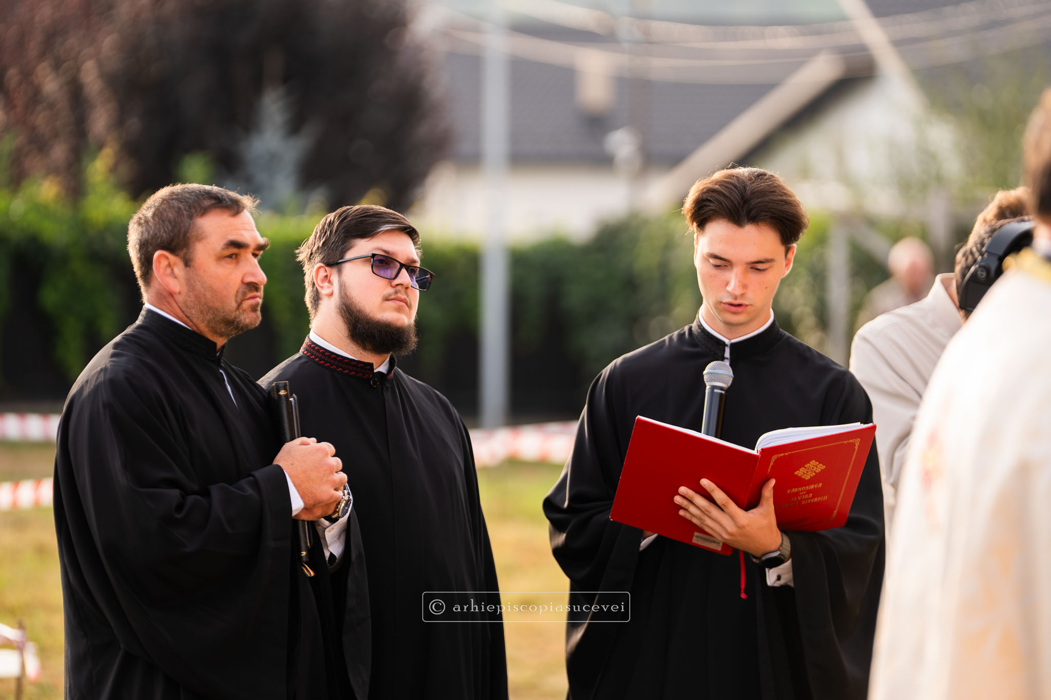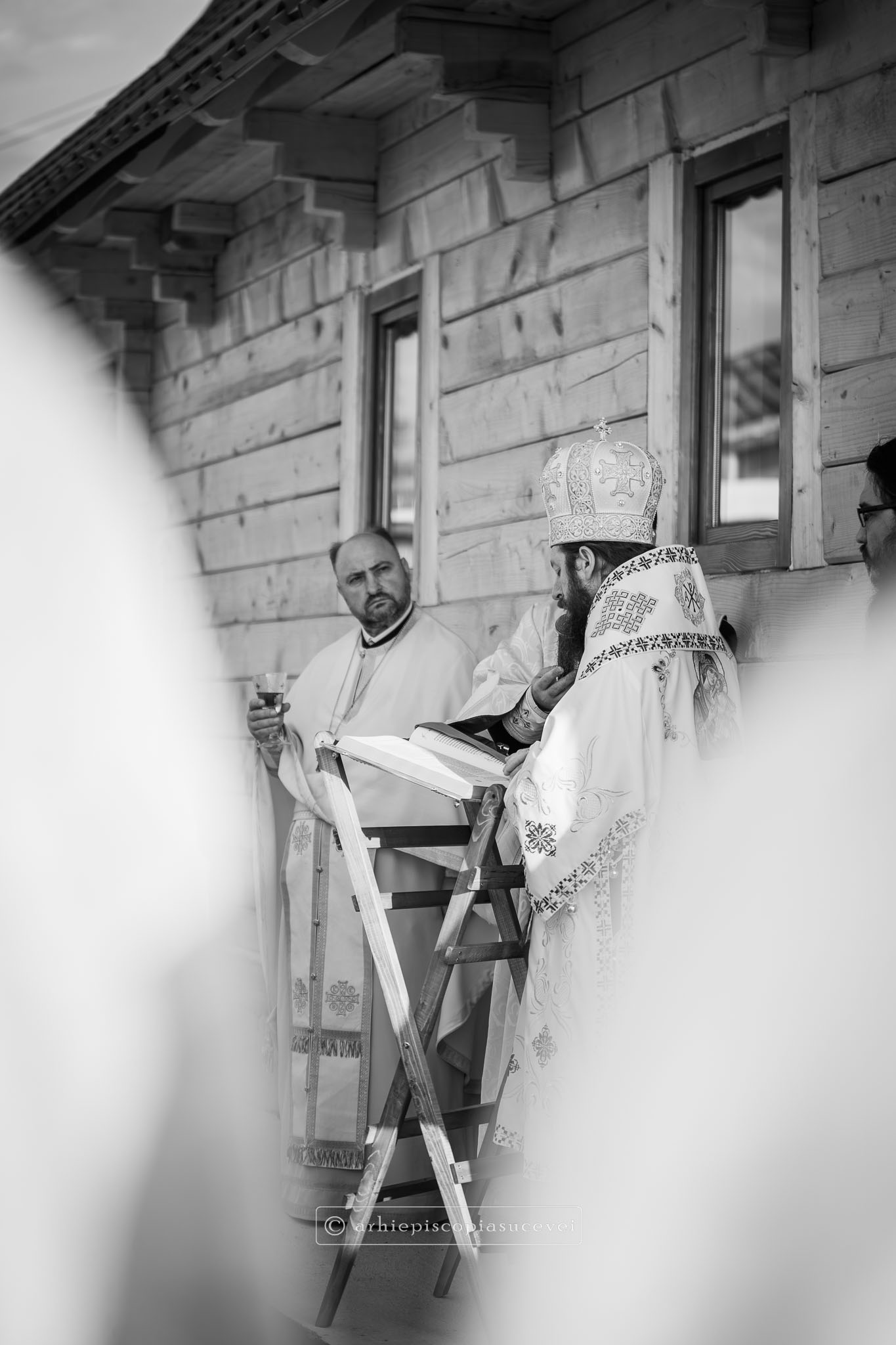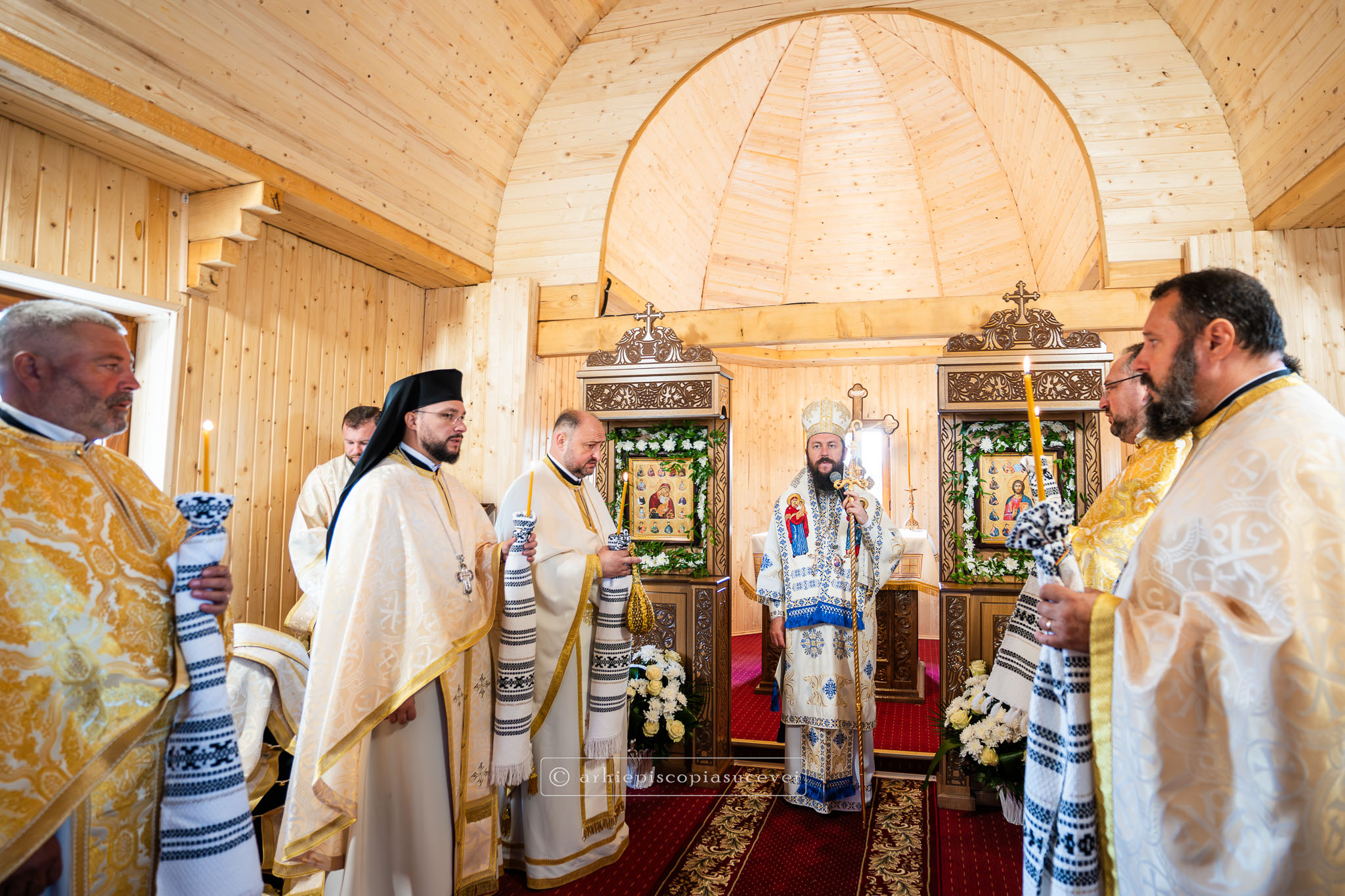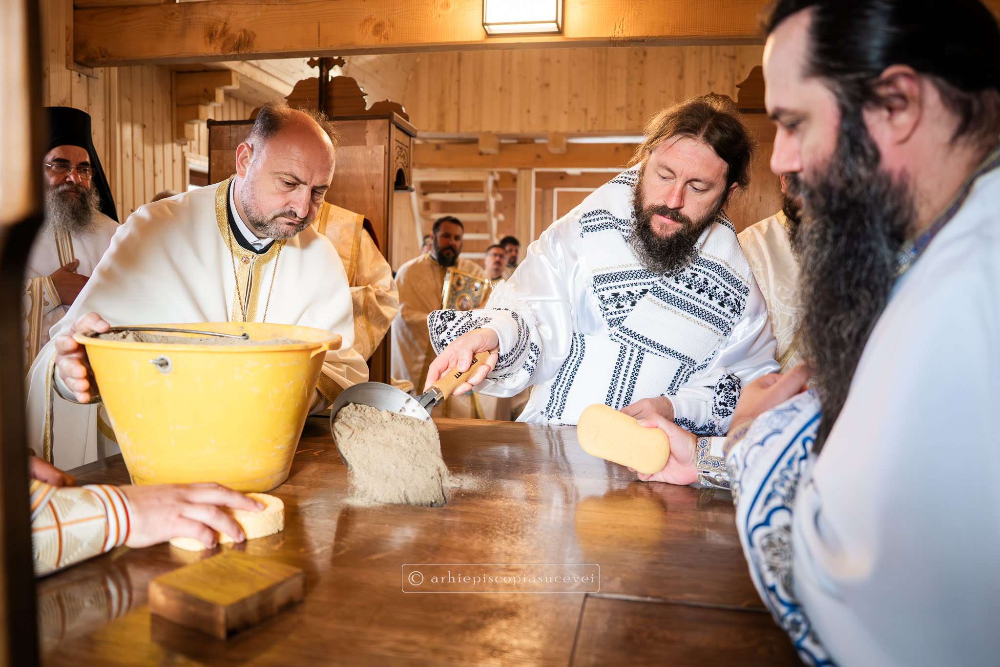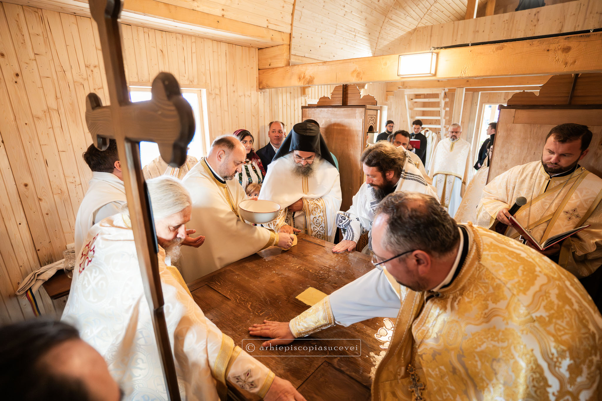 După ce a fost întâmpinat în cartierul sucevean La pădurea de stejari cu pâine și sare, potrivit obiceiului, Preasfințitul Părinte Damaschin Dorneanul a săvârșit slujba de binecuvântare a noului locaș de cult, înveșmântat astfel în lumină și har cu voia Tatălui, cu ajutorul Fiului și cu săvârșirea Sfântului Duh.
