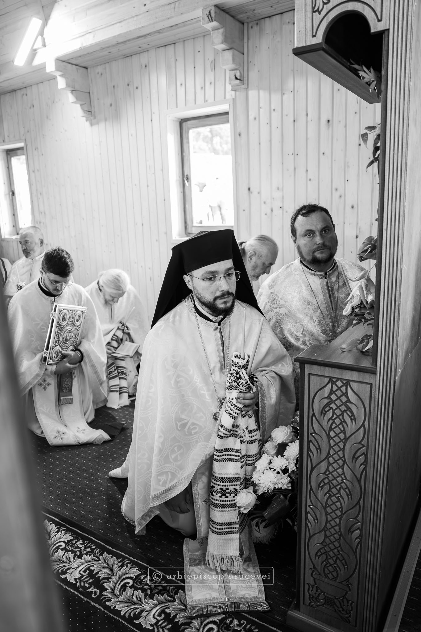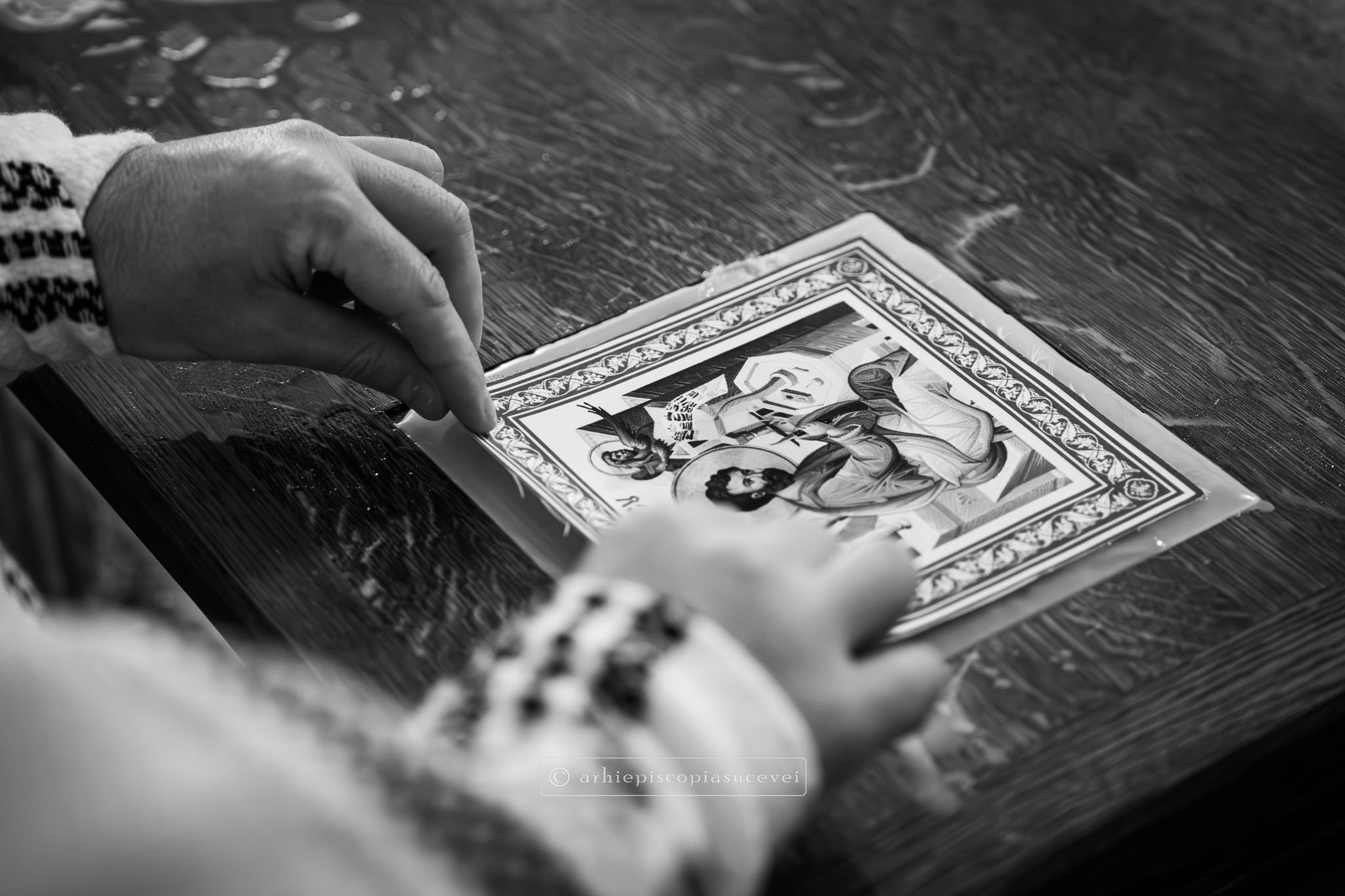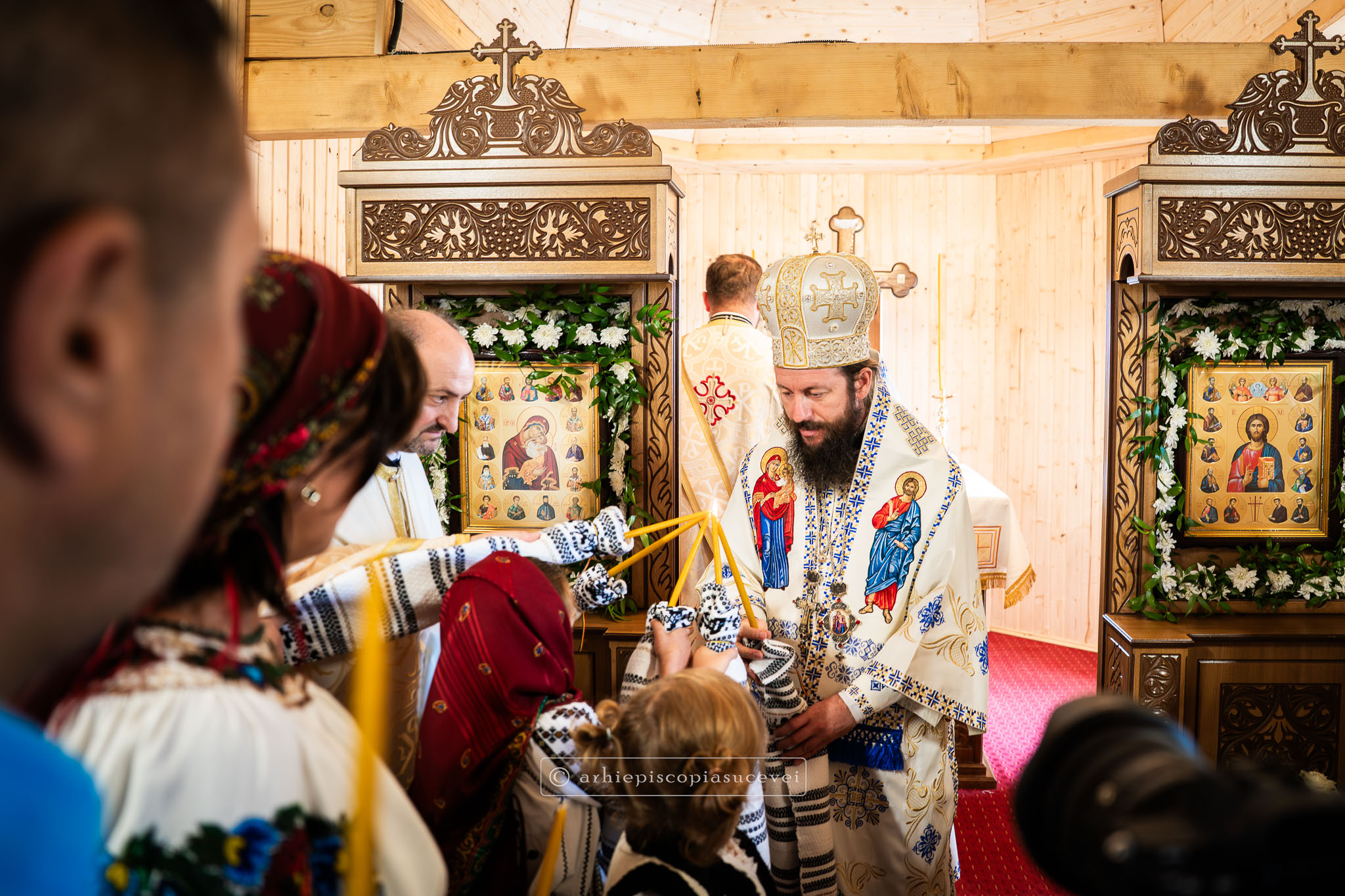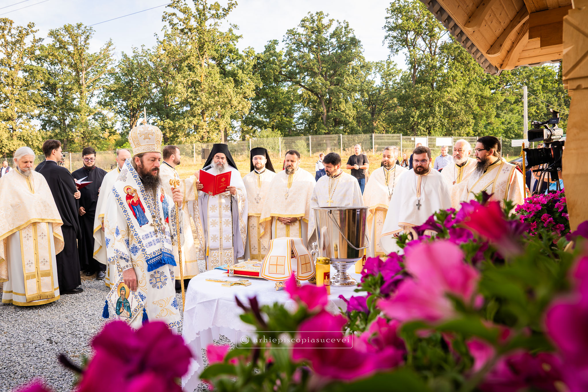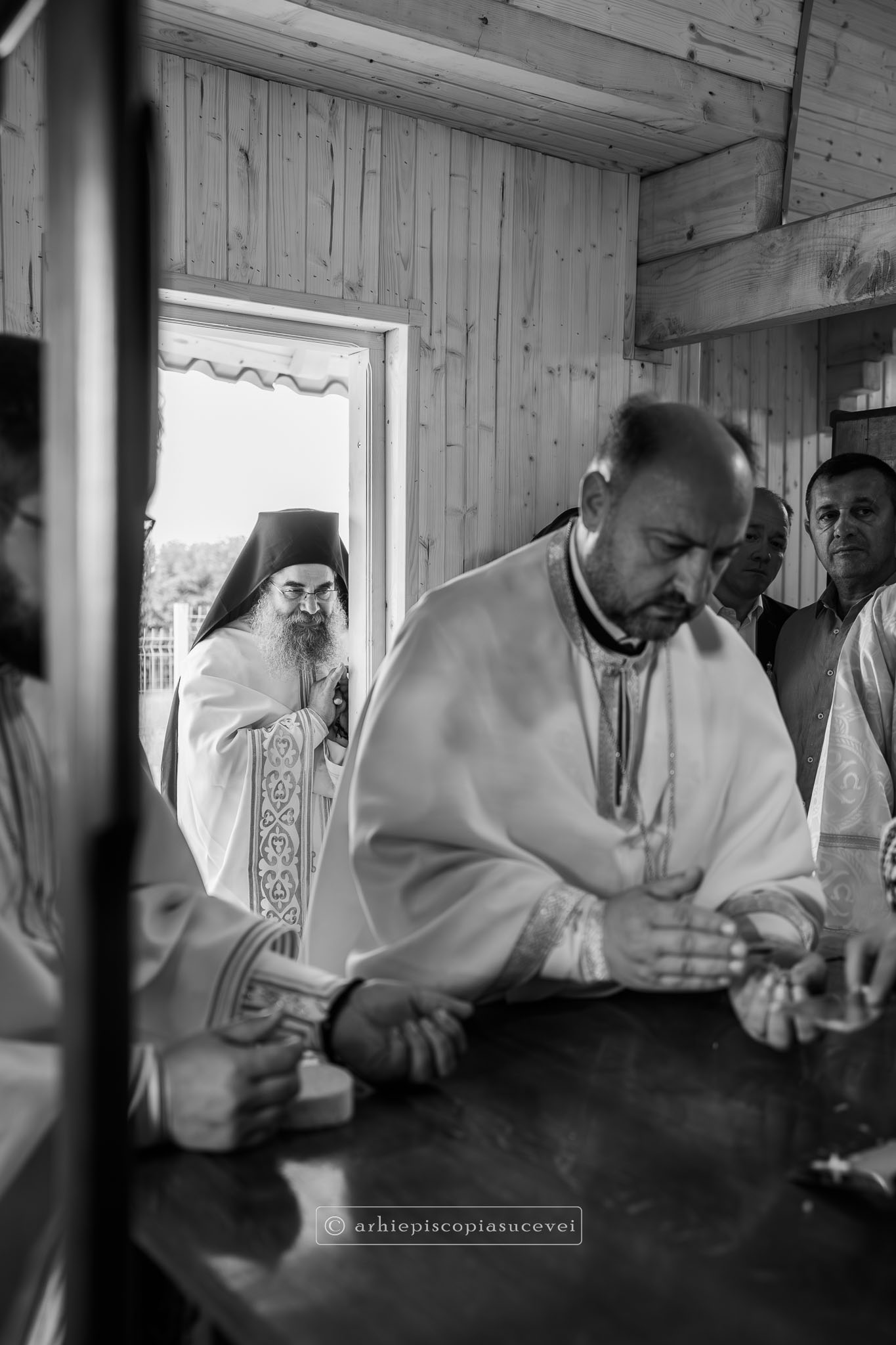 După ce a fost întâmpinat în cartierul sucevean La pădurea de stejari cu pâine și sare, potrivit obiceiului, Preasfințitul Părinte Damaschin Dorneanul a săvârșit slujba de binecuvântare a noului locaș de cult, înveșmântat astfel în lumină și har cu voia Tatălui, cu ajutorul Fiului și cu săvârșirea Sfântului Duh.