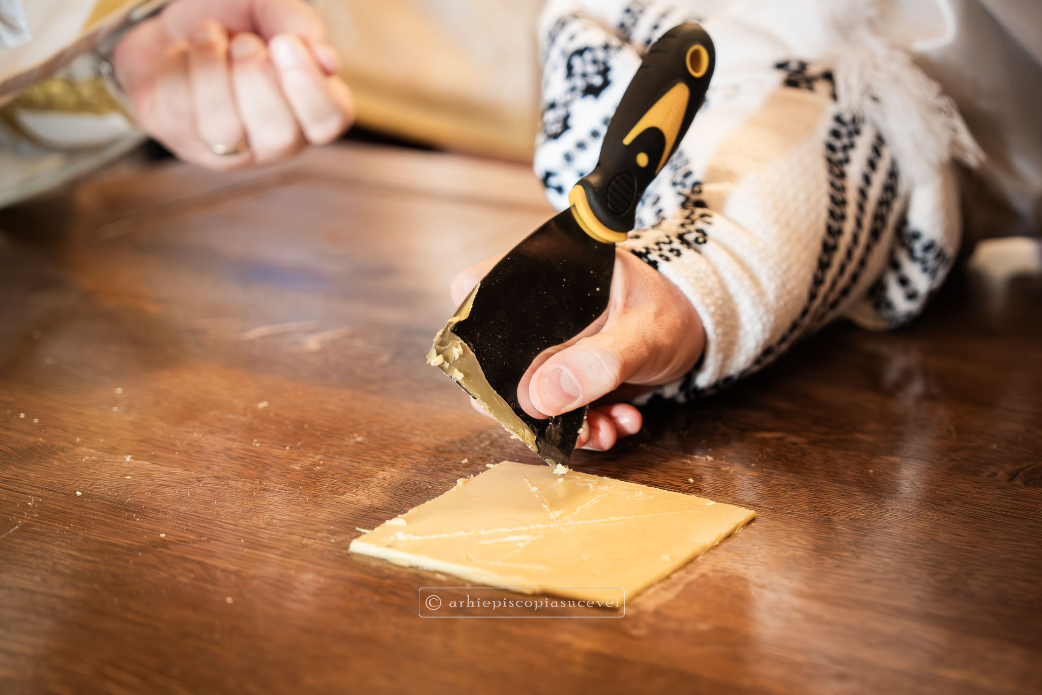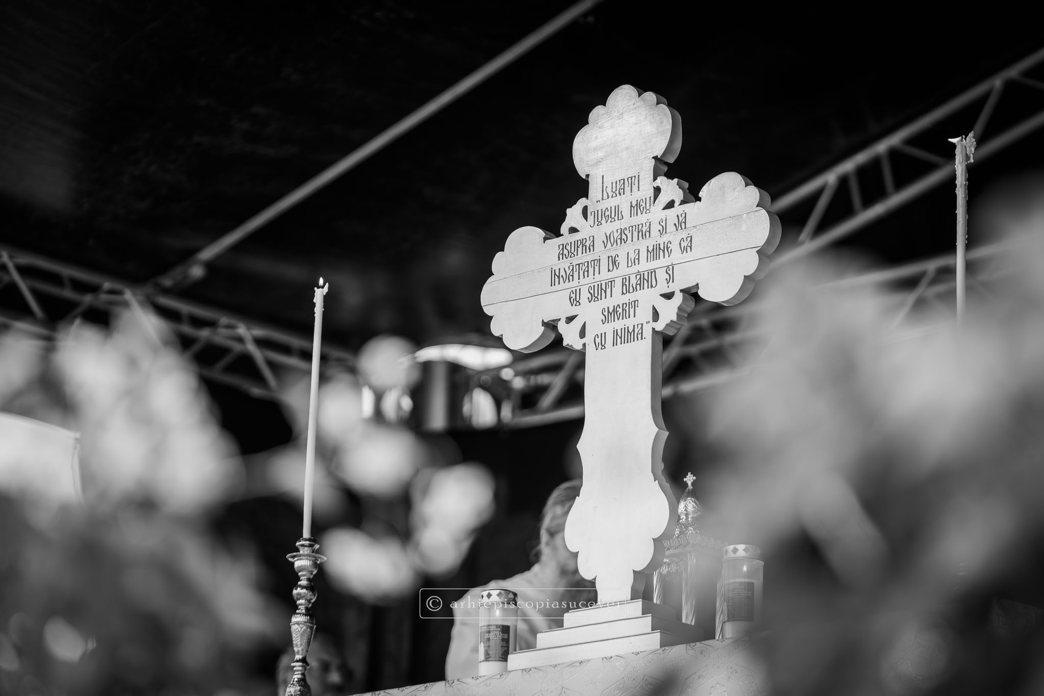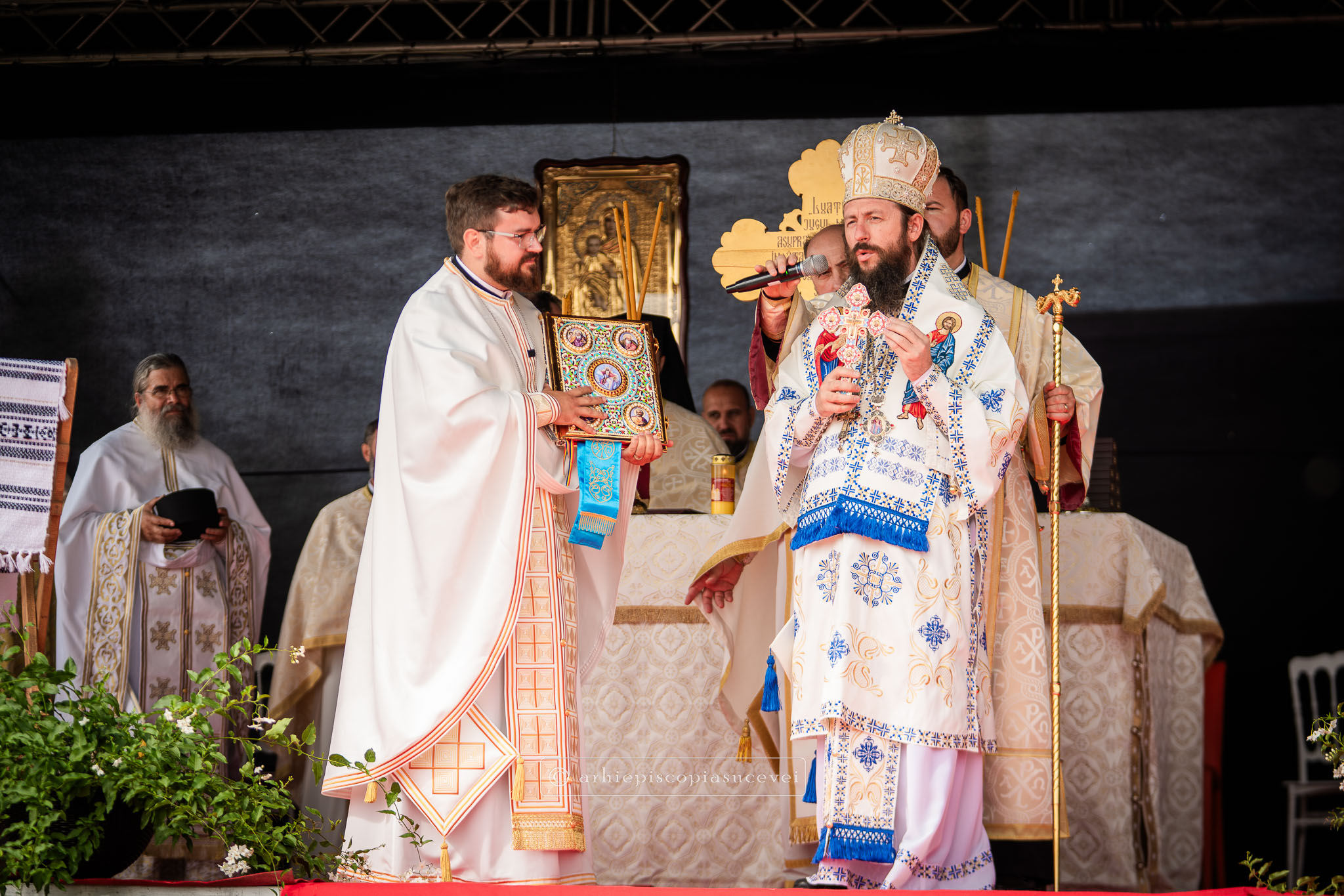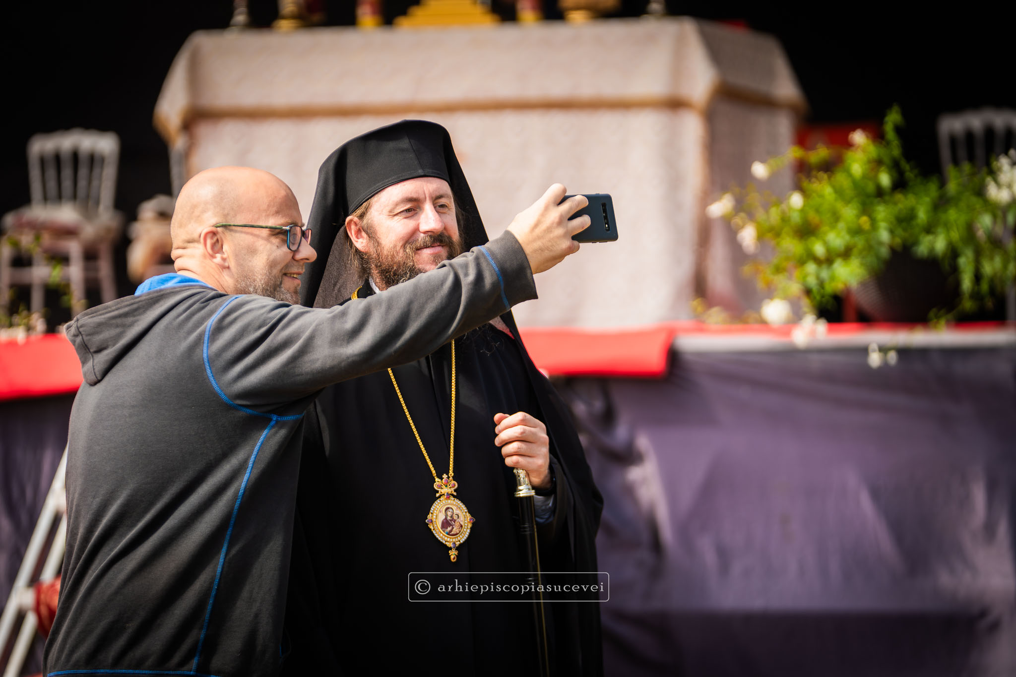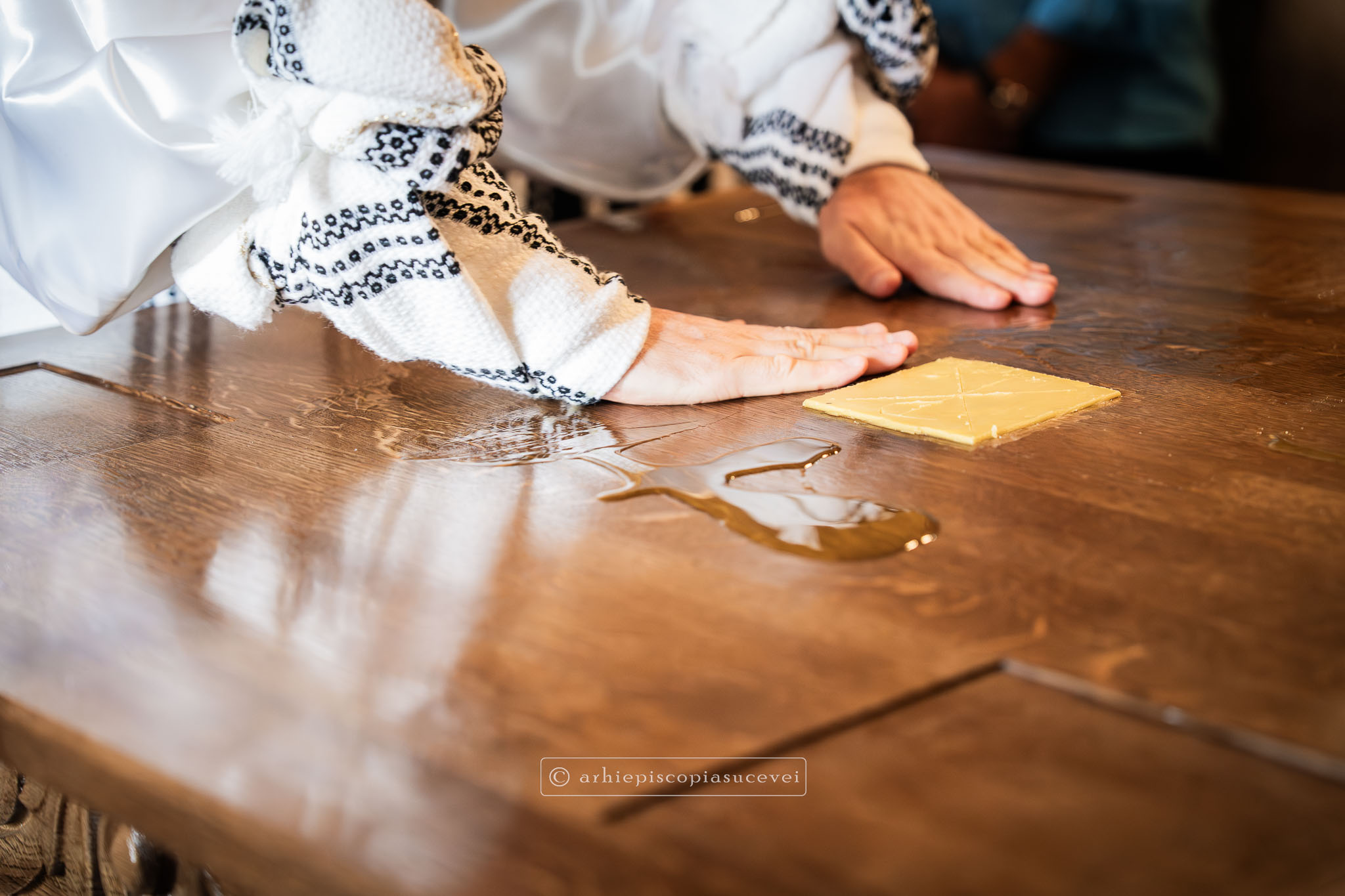 După ce a fost întâmpinat în cartierul sucevean La pădurea de stejari cu pâine și sare, potrivit obiceiului, Preasfințitul Părinte Damaschin Dorneanul a săvârșit slujba de binecuvântare a noului locaș de cult, înveșmântat astfel în lumină și har cu voia Tatălui, cu ajutorul Fiului și cu săvârșirea Sfântului Duh.