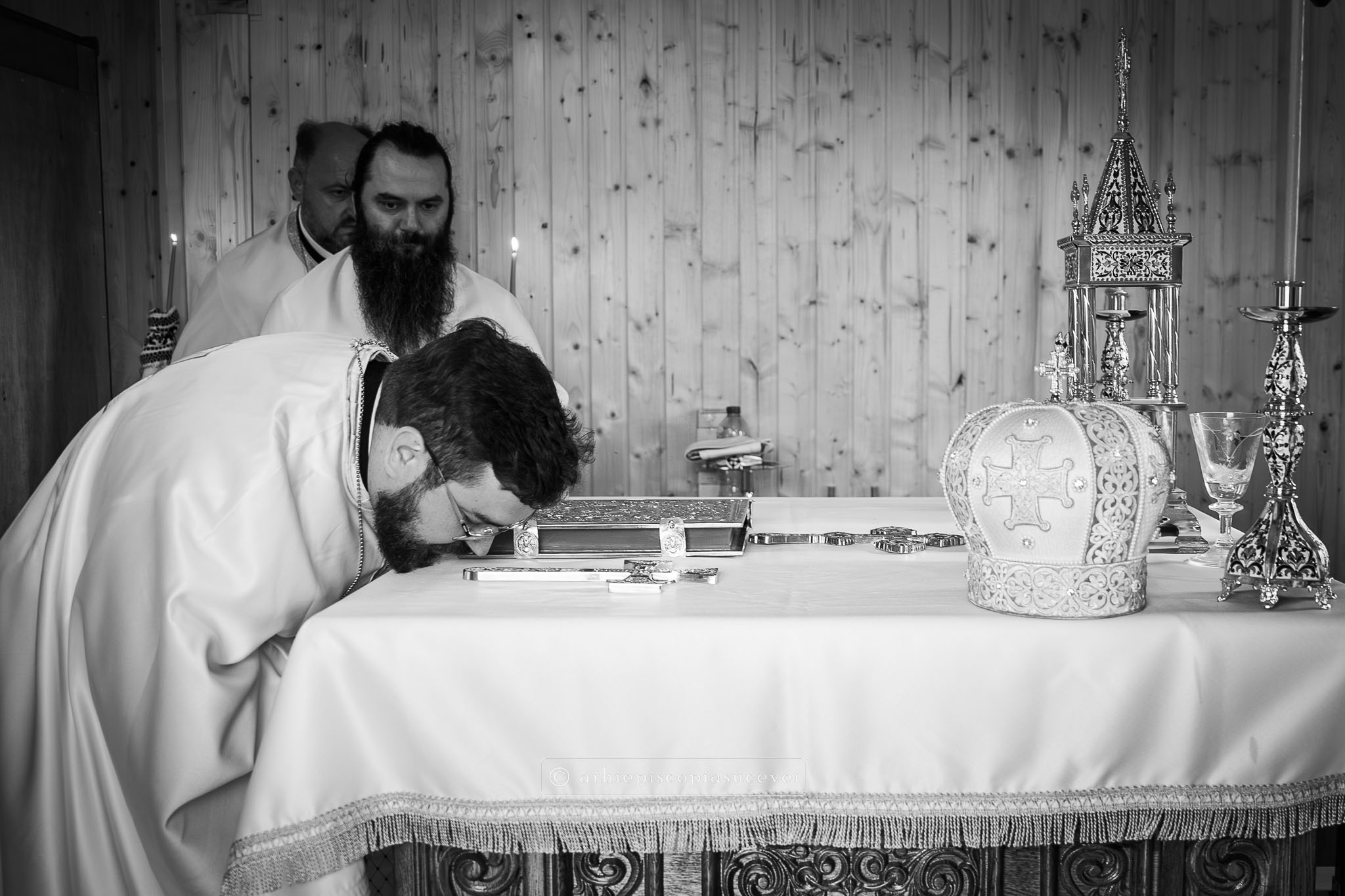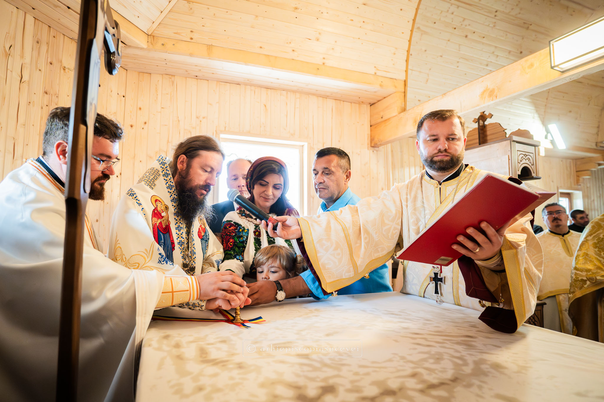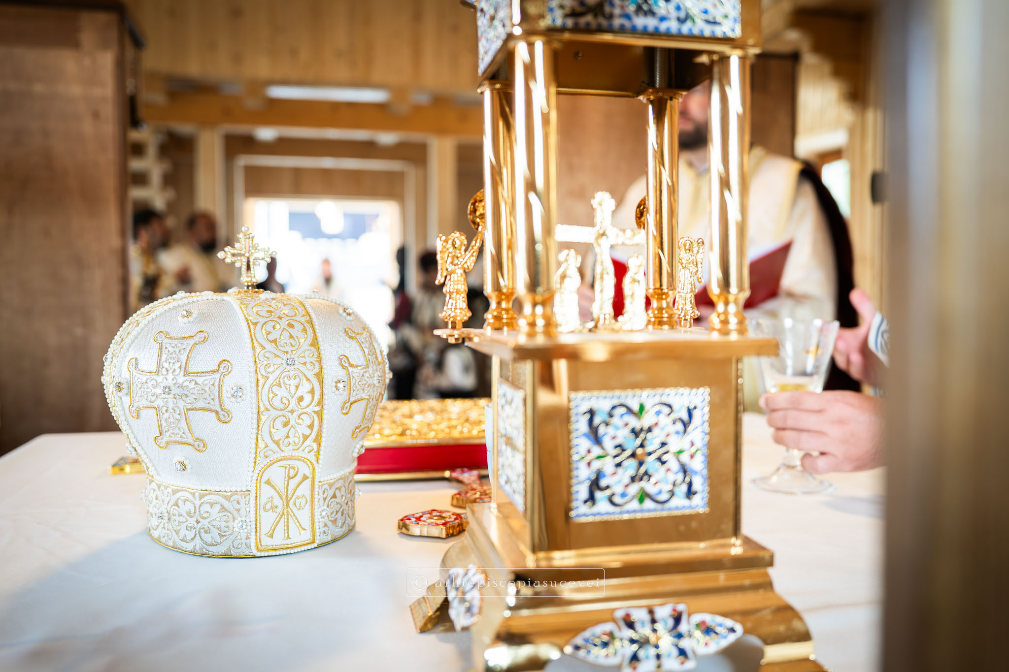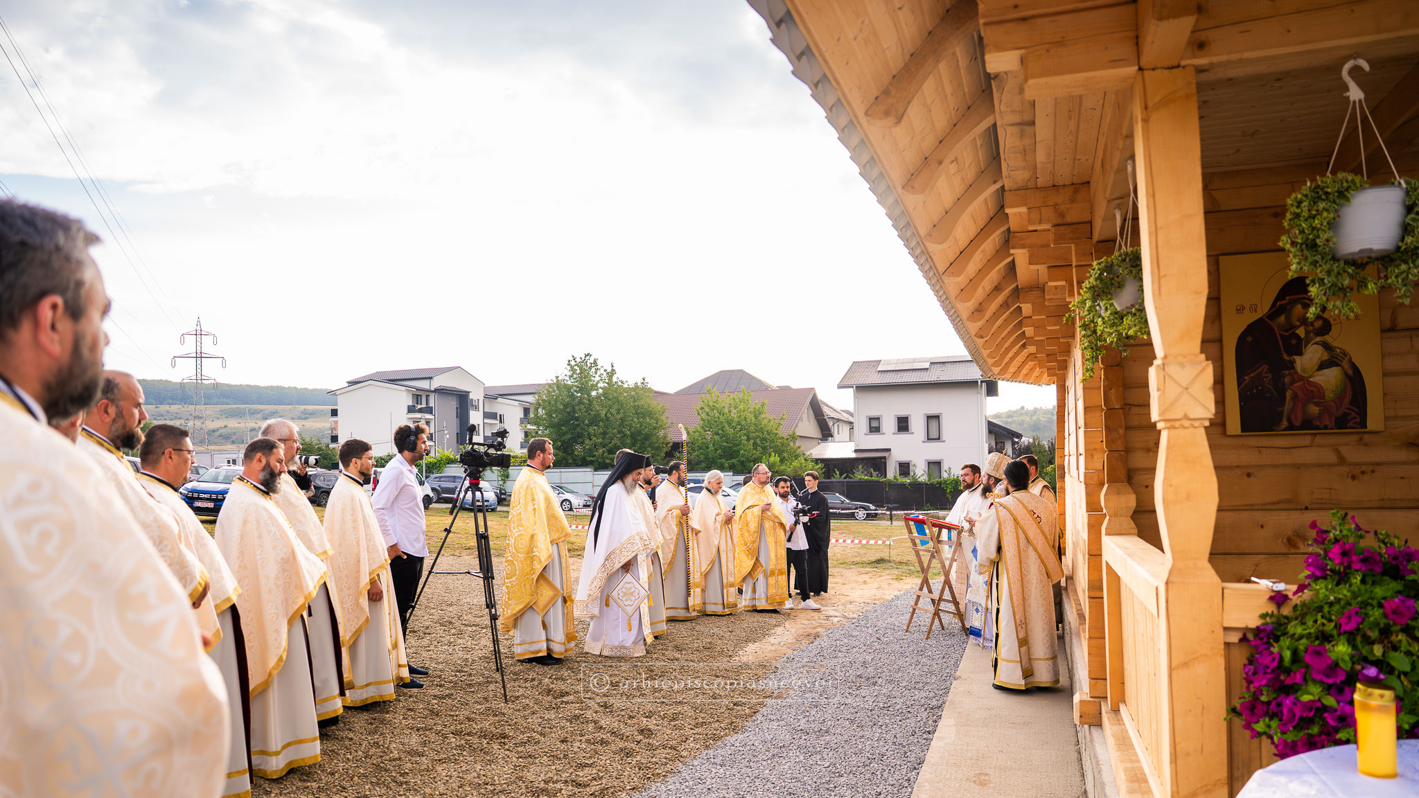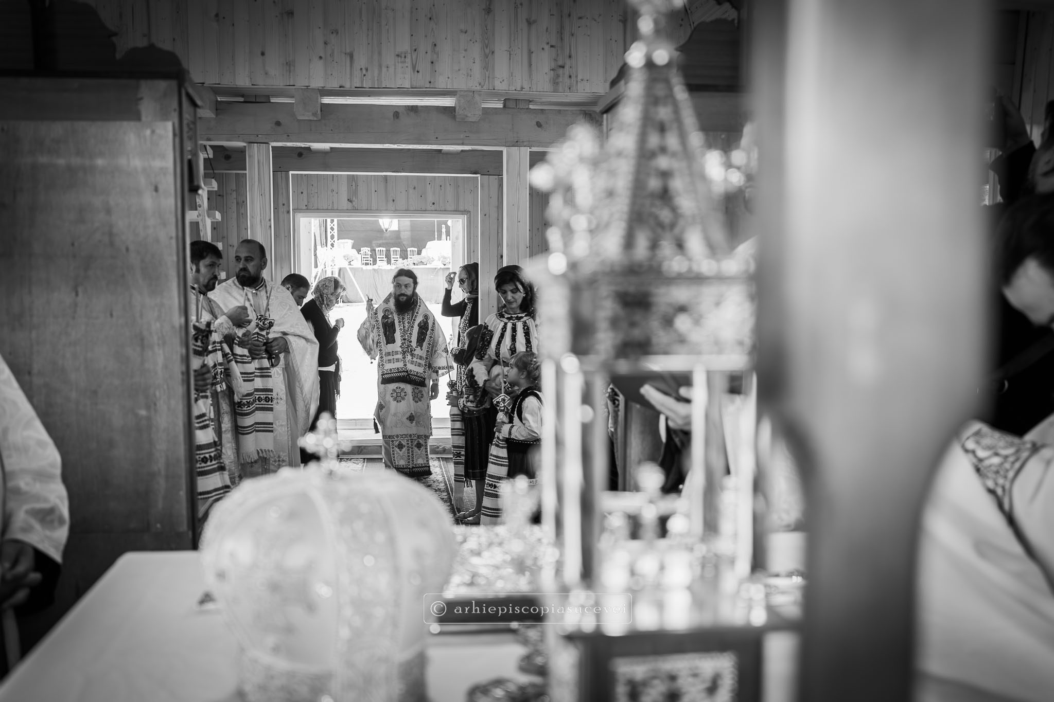 Slujba de târnosire a început cu invocarea harului Preasfintei Treimi în fața ușilor închise ale bisericuței din lemn, aceasta fiind mai apoi înconjurată de soborul slujitor, făcându-se trei opriri, pentru a o binecuvânta prin stropire cu apă sfințită și prin însemnarea în chipul Sfintei Cruci cu Sfântul și Marele Mir. Preasfinția Sa a pecetluit apoi masa Sfântului Altar și a sfințit interiorul bisericii, potrivit rânduielilor liturgice.