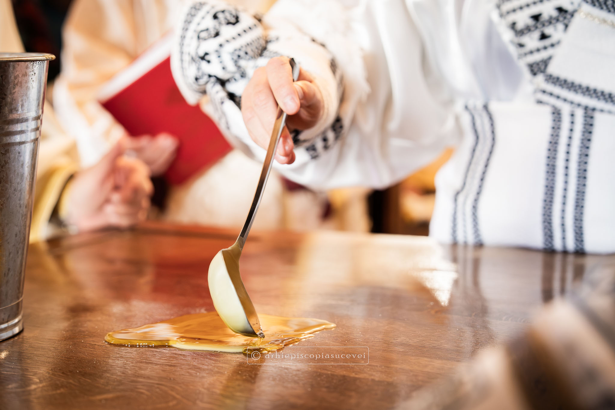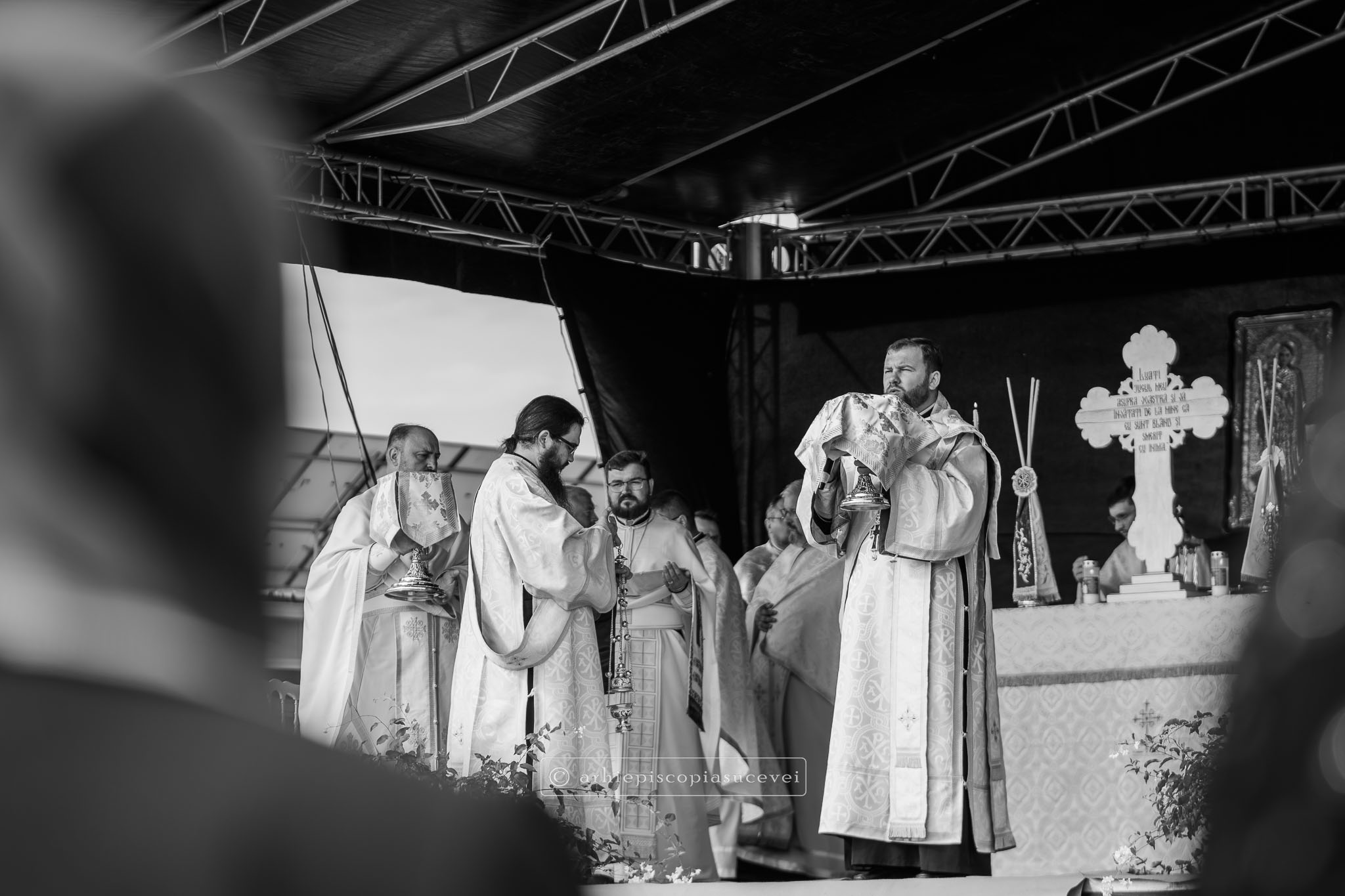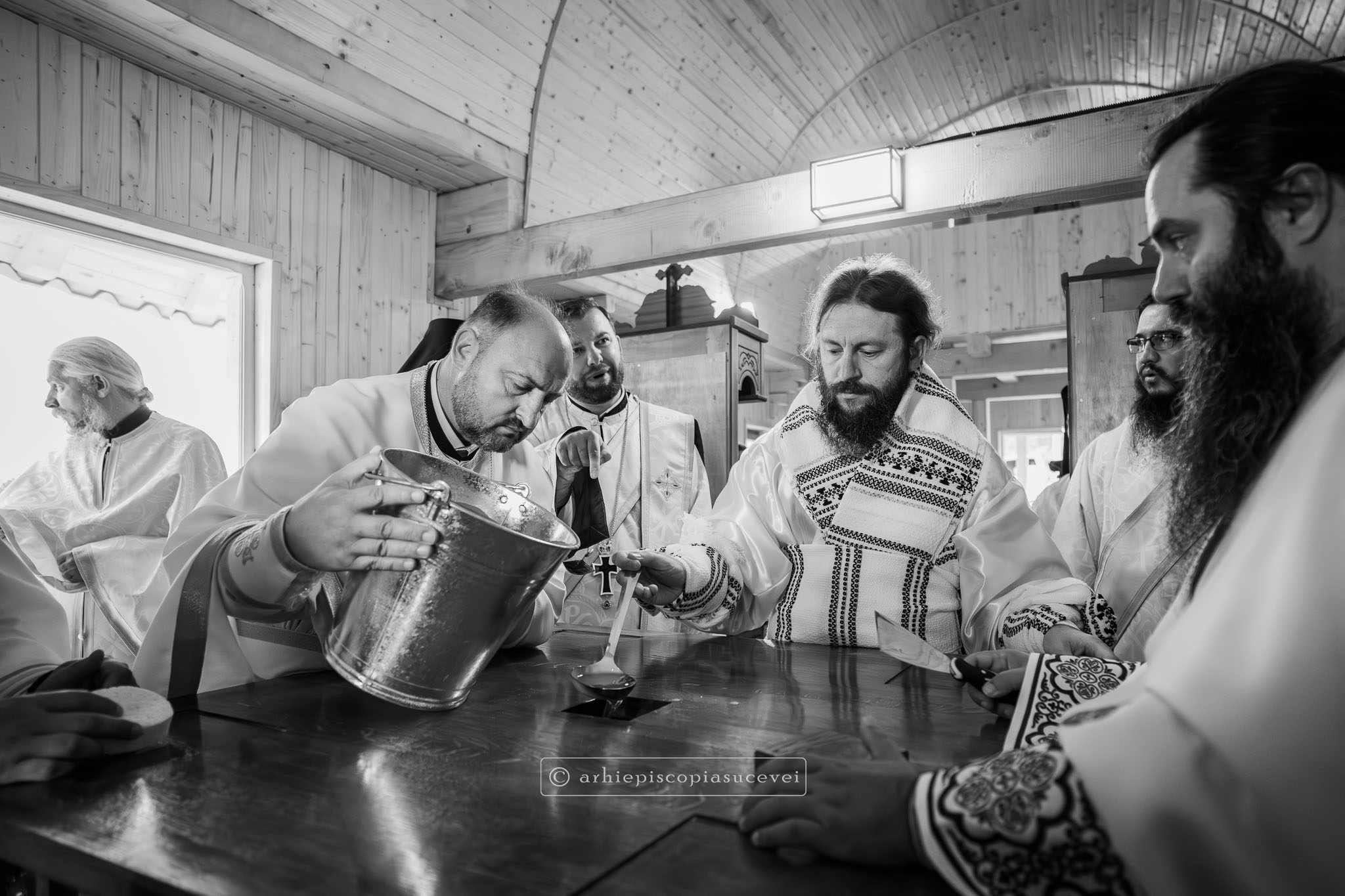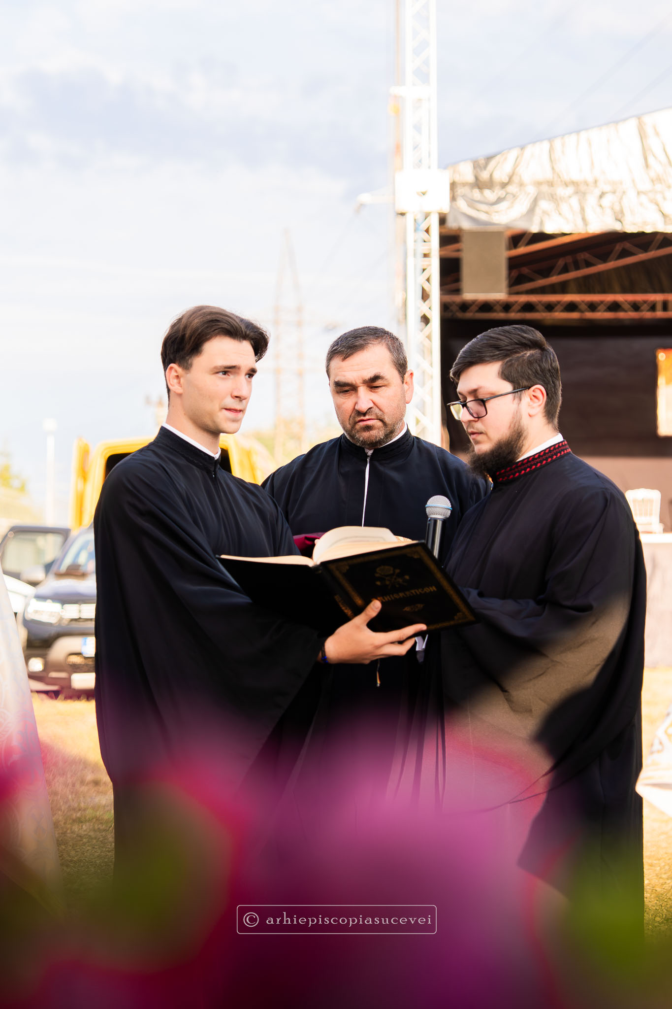 A urmat săvârșirea Sfintei și Dumnezeieștii Liturghii a Sfântului Ioan Gură de Aur de către un sobor de preoți și diaconi sub protia Preasfințitului Părinte Damaschin Dorneanul. Alături de pr. Andrei Mocanu, din soborul slujitor au făcut parte arhim. Mihai Balan, exarh de zonă, pr. Ionel Doru Budeanu, protoiereu al Protopopiatului Suceava I, clerici de la Centrul Eparhial Suceava, precum și preoți de la parohiile din cuprinsul Arhiepiscopiei Sucevei și Rădăuților, dar și din Arhiepiscopia Iașilor.