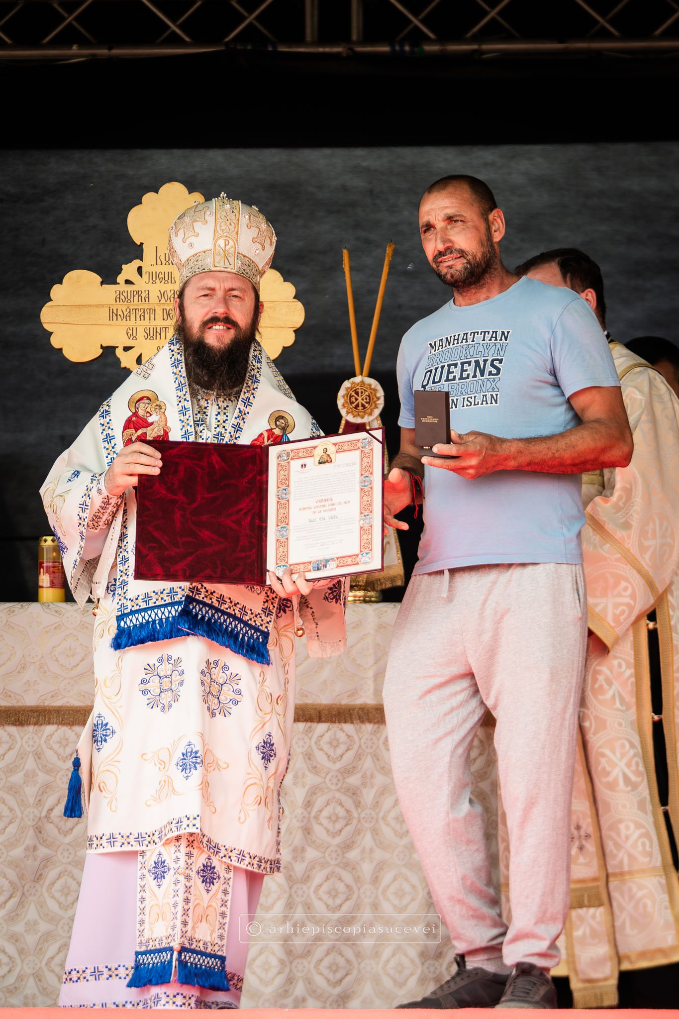 A urmat evidențierea celor care s-au implicat în ridicarea locașului de închinare, fiind oferite din partea Înaltpreasfințitului Părinte Calinic, Arhiepiscop al Sucevei și Rădăuților, mai multe distincții de vrednicie, Ordinul „Crucea Bucovinei”pentru „remarcabila activitate dedicată Bisericii și Comunității”, și Ordinul „Sfântul Mare Mucenic Ioan cel Nou de la Suceava”.