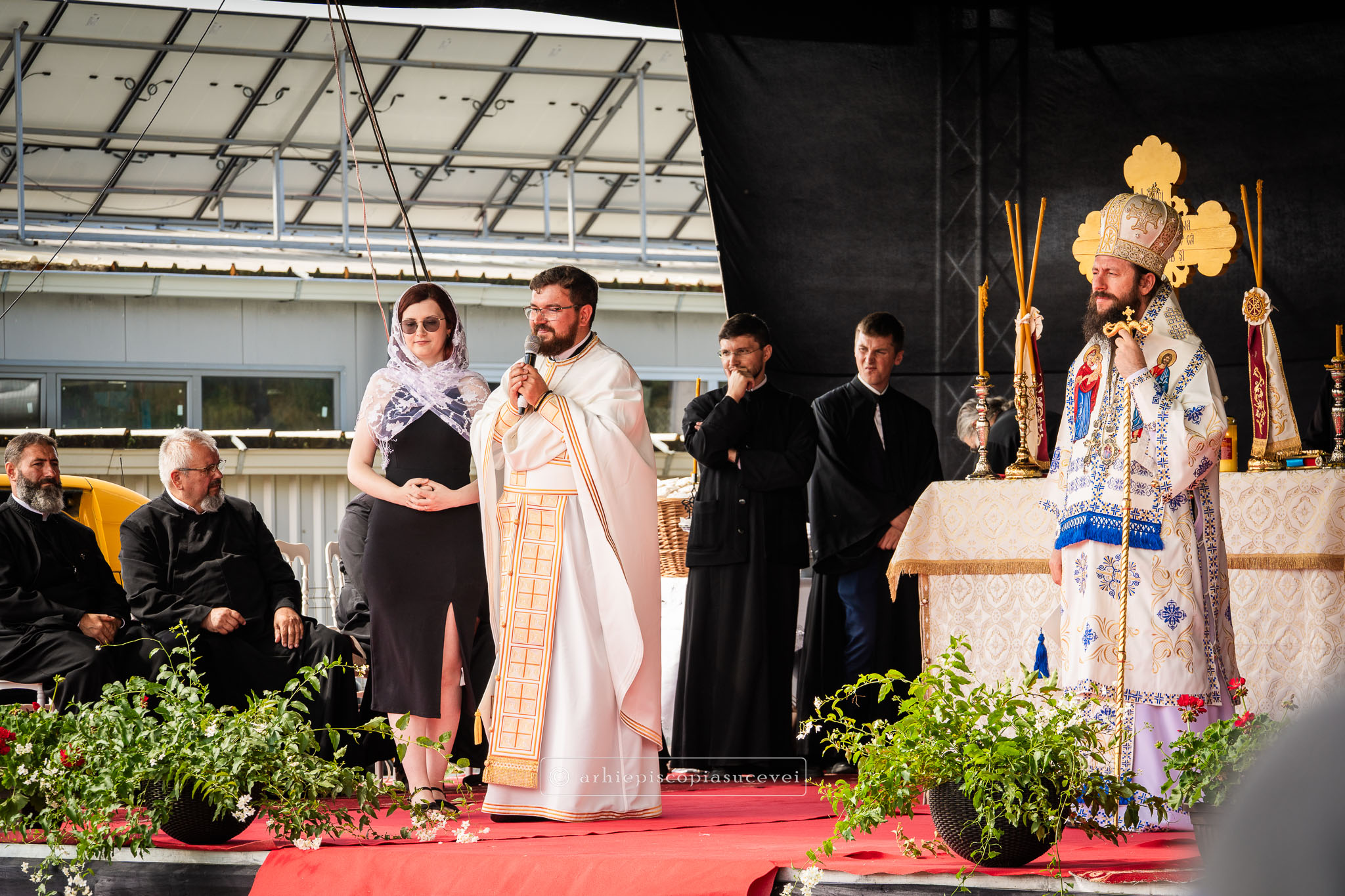 Părintele paroh Andrei Mocanu i-a mulțumit Înaltpreasfințitului Părinte Arhiepiscop Calinic, pentru binecuvântare și pentru grija și dragostea arătate, și Preasfințitului Părinte Damaschin Dorneanul, pentru prezență și slujire. Gândul de recunoștință s-a îndreptat și către clericii și credincioșii prezenți, către reprezentanții autorităților și, nu în ultimul rând, către cei care s-au arătat deja ctitori ai bisericii care urmează să se înalțe în acest loc, cu ajutorul Preamilostivului Dumnezeu. În semn de mulțumire pentru binecuvântarea arhierească, părintele i-a oferit ierarhului prezent o icoană cu Maica Domnului cu Pruncul.