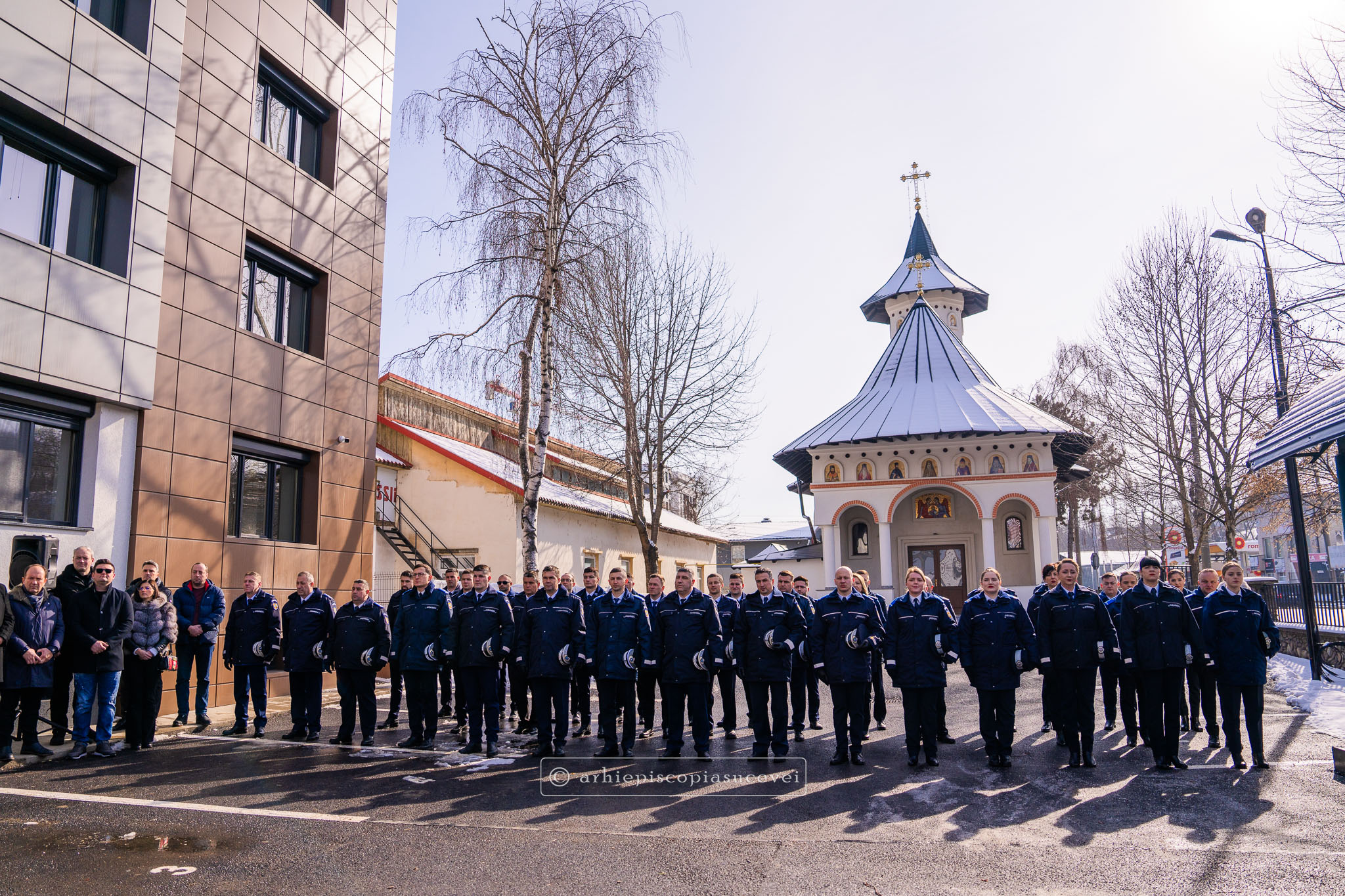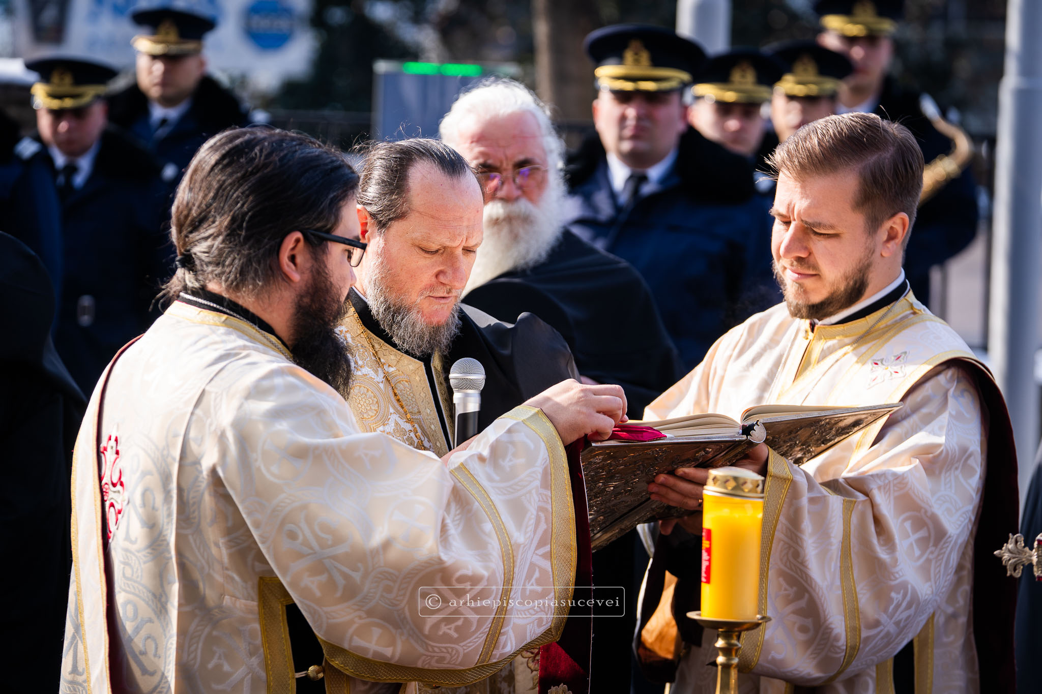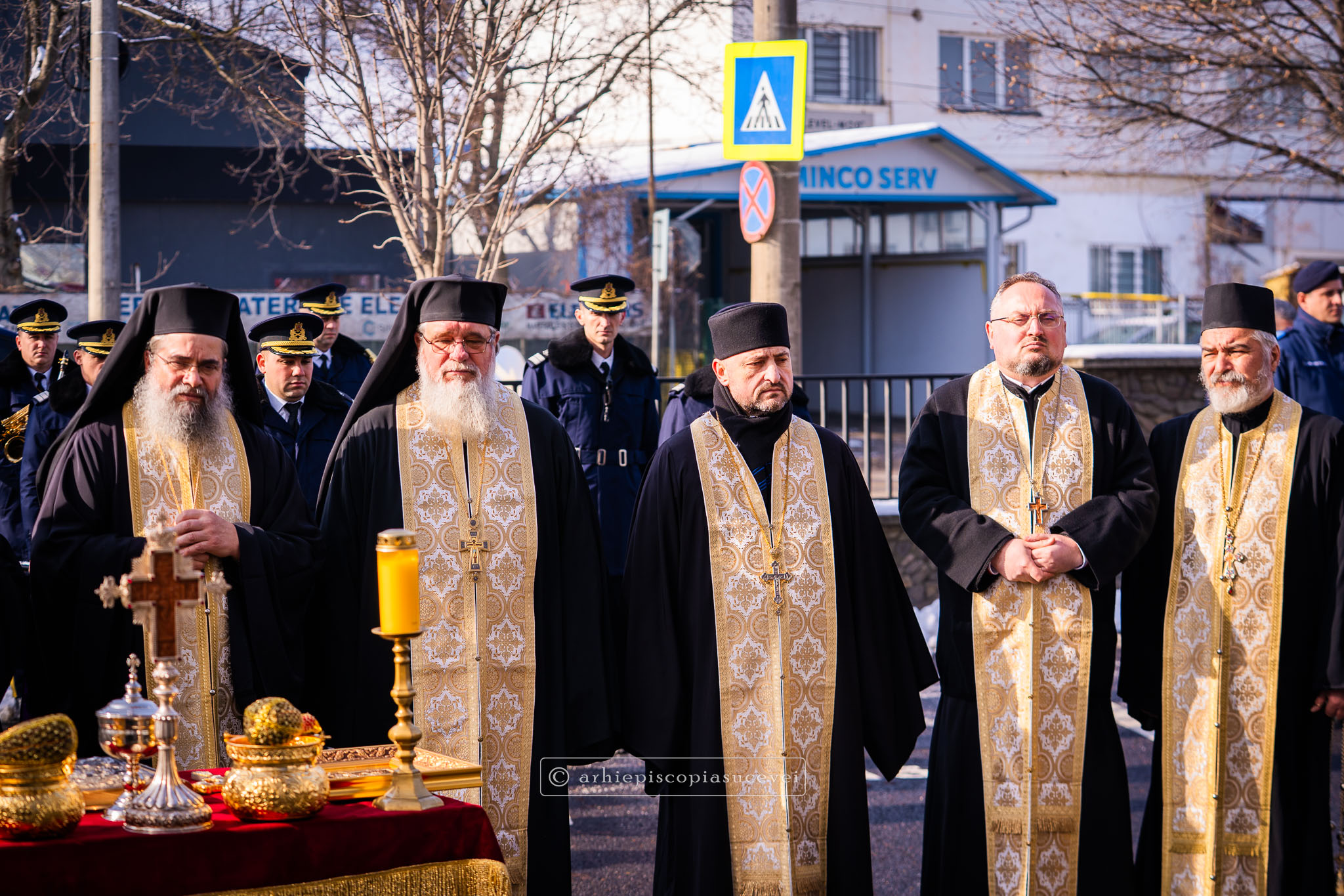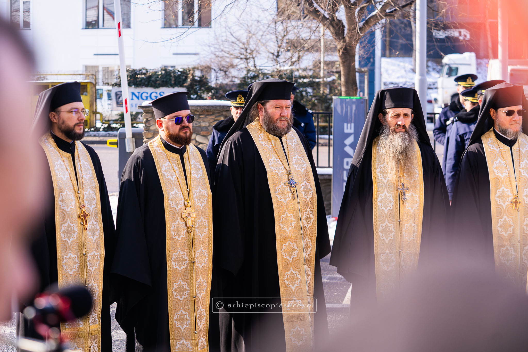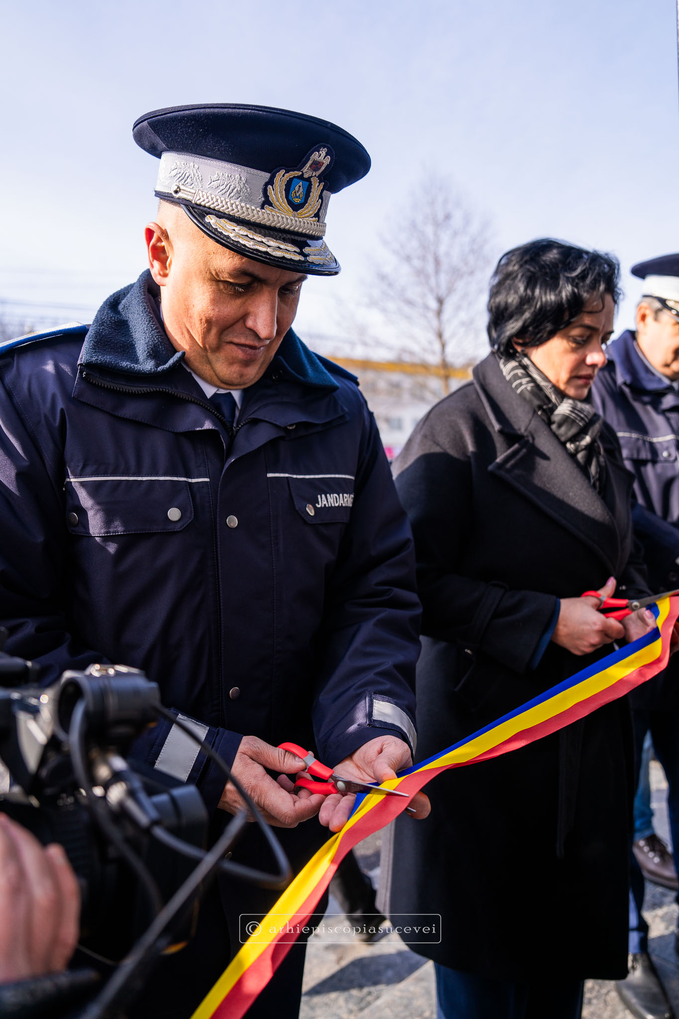 Evenimentul a debutat cu intonarea Imnului Național al României de către Fanfara Militară a Garnizoanei Iași, Brigada 15 Mecanizată „Podu Înalt”, în prezența delegaților Arhiepiscopiei Sucevei și Rădăuților și a autorităților naționale și județene, între care doamna Angelica Fădor, Secretar de Stat în cadrul Ministerului Afacerilor Interne, Generalul de brigadă Lucian Trășcălie, Adjunct al Inspectorului General al Jandarmeriei Române, Traian Andronachi, Prefectul Județului Suceava, Stelian Simerea, Vicepreședintele Consiliului Județean Suceava. Alături de reprezentanții structurilor Inspectoratului de Jandarmi Județean din cuprinsul județului, la eveniment au luat parte și conducătorii structurilor Ministerului Apărării Naționale Suceava și ale Ministerului Afacerilor Interne.