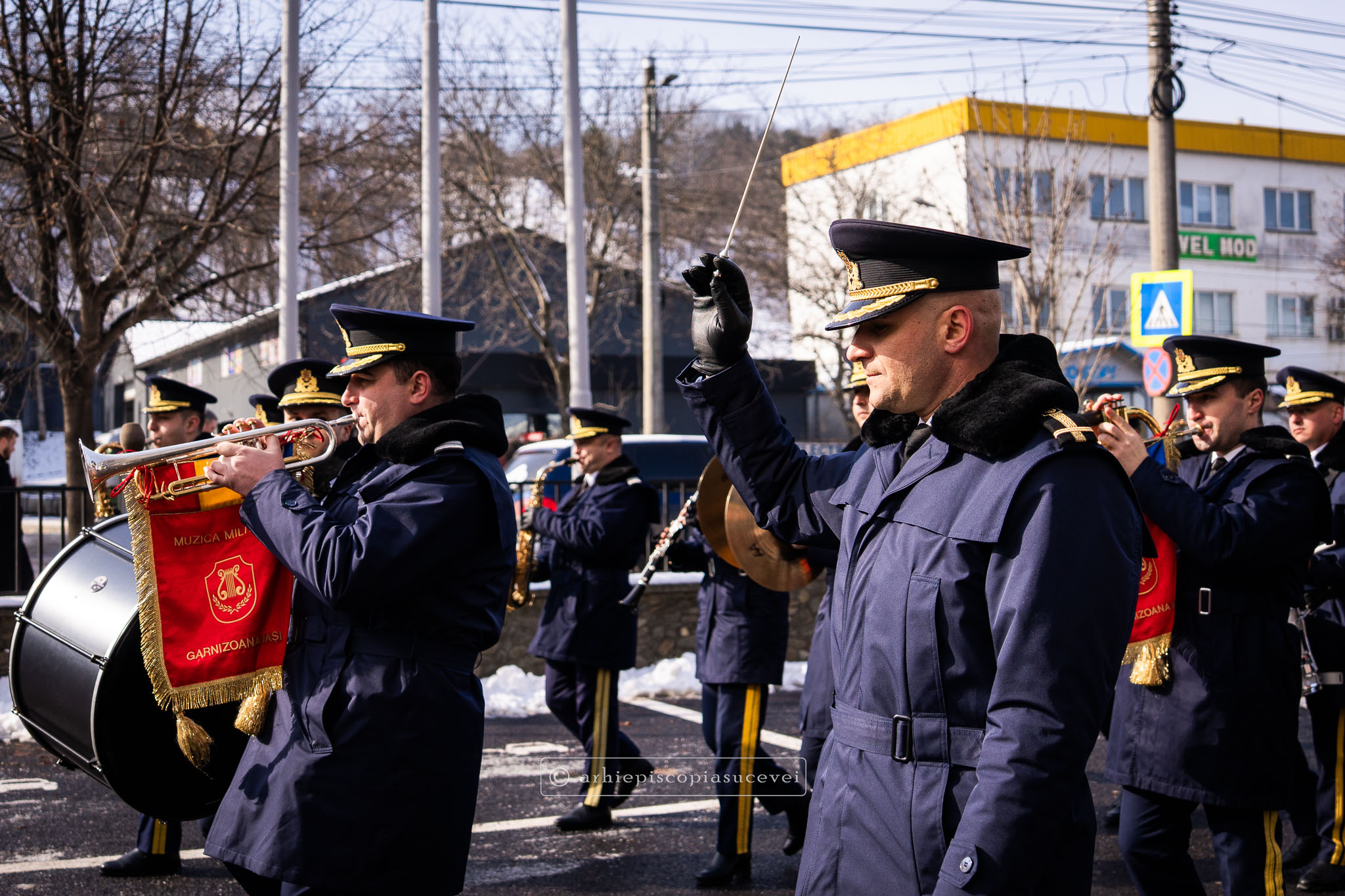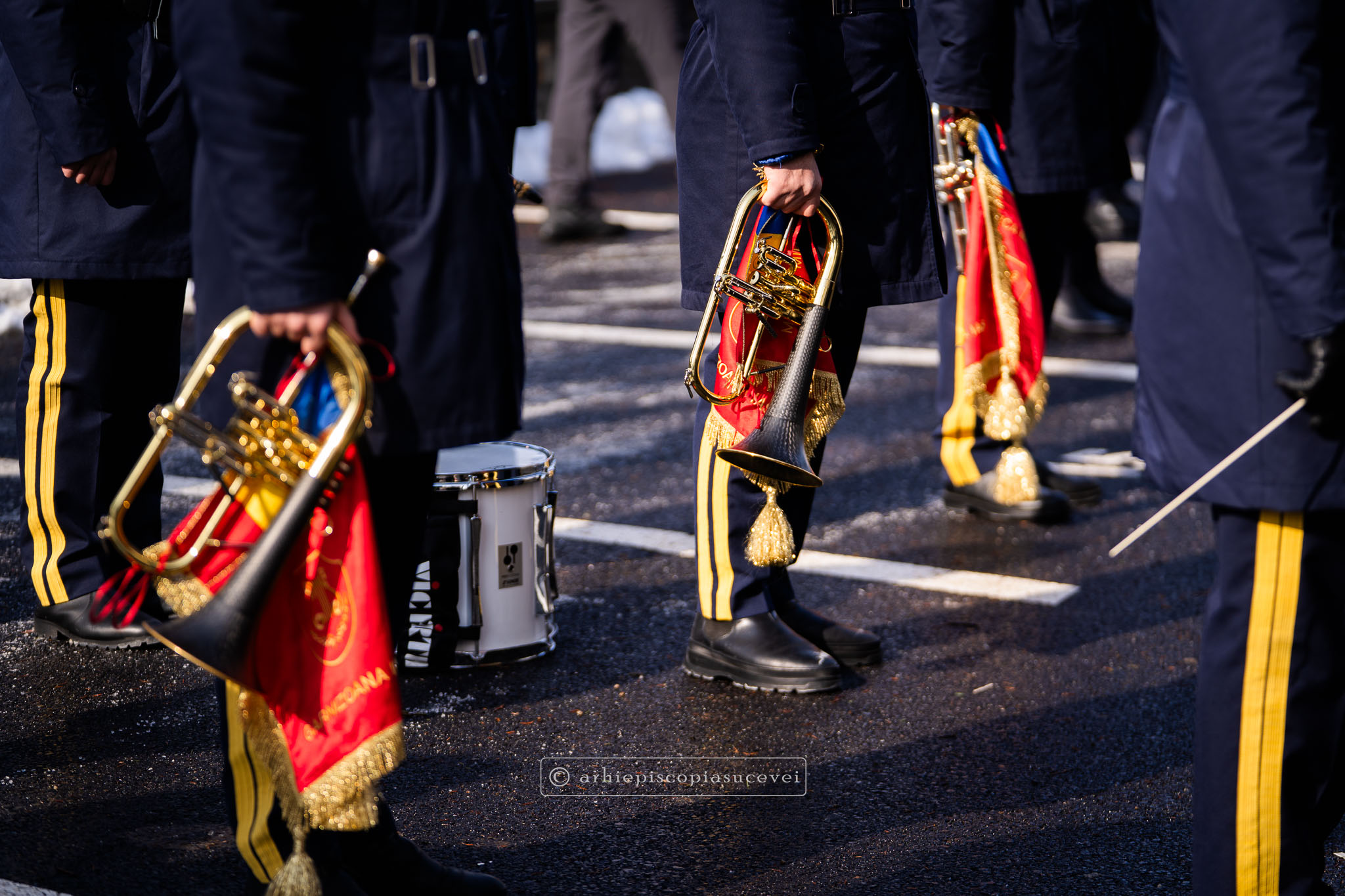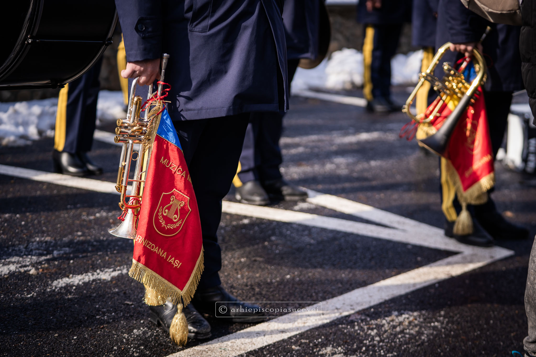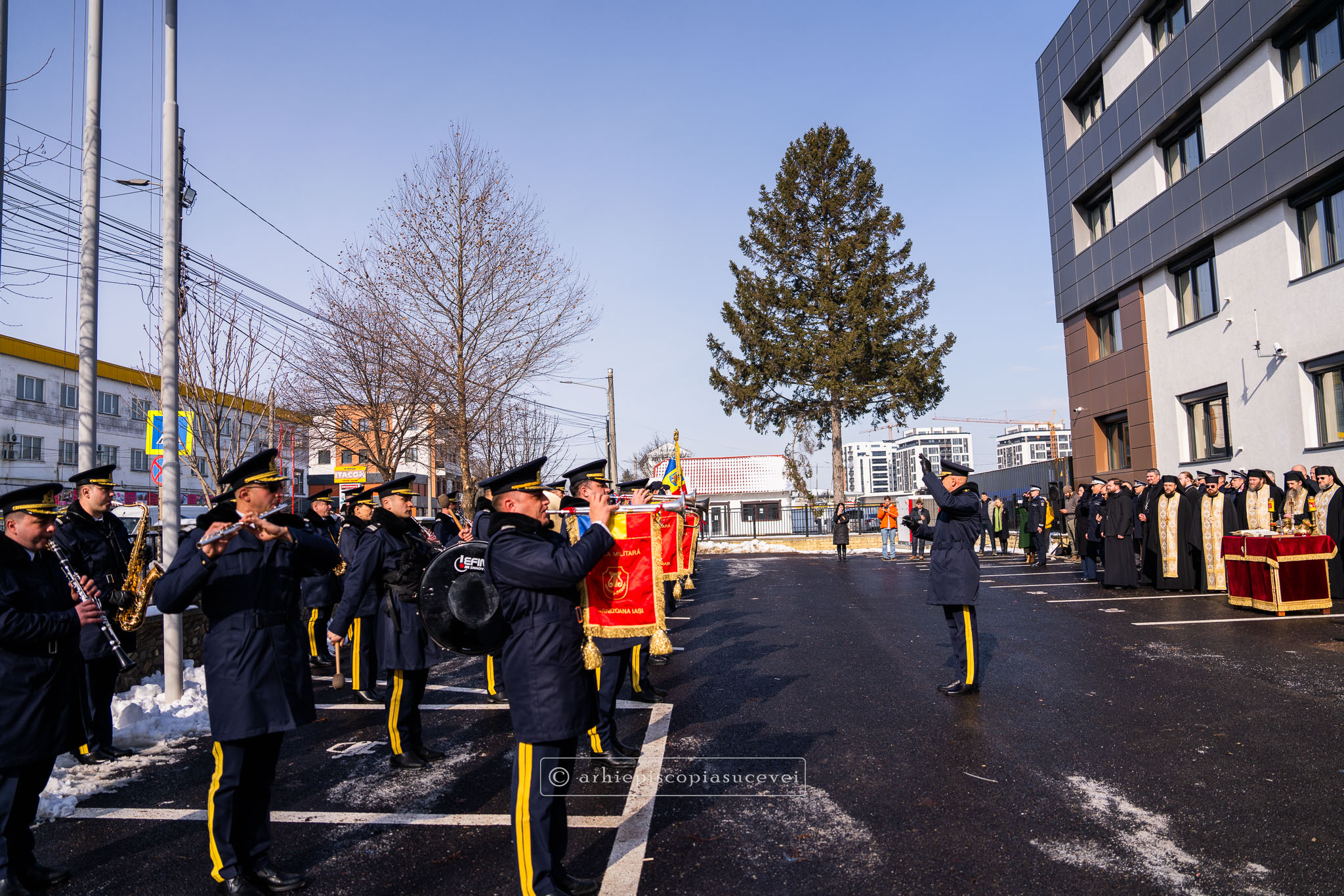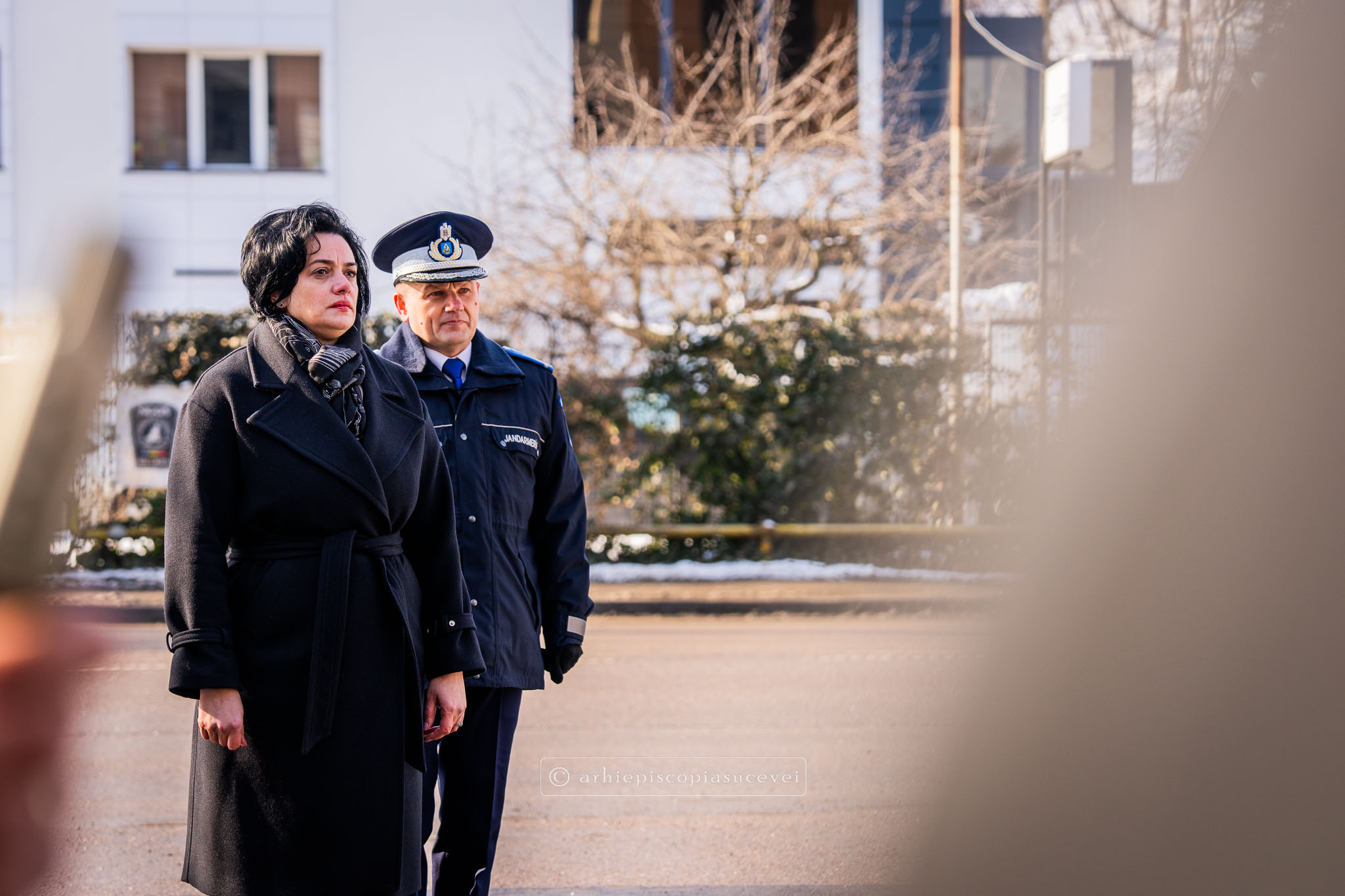 Evenimentul a debutat cu intonarea Imnului Național al României de către Fanfara Militară a Garnizoanei Iași, Brigada 15 Mecanizată „Podu Înalt”, în prezența delegaților Arhiepiscopiei Sucevei și Rădăuților și a autorităților naționale și județene, între care doamna Angelica Fădor, Secretar de Stat în cadrul Ministerului Afacerilor Interne, Generalul de brigadă Lucian Trășcălie, Adjunct al Inspectorului General al Jandarmeriei Române, Traian Andronachi, Prefectul Județului Suceava, Stelian Simerea, Vicepreședintele Consiliului Județean Suceava. Alături de reprezentanții structurilor Inspectoratului de Jandarmi Județean din cuprinsul județului, la eveniment au luat parte și conducătorii structurilor Ministerului Apărării Naționale Suceava și ale Ministerului Afacerilor Interne.