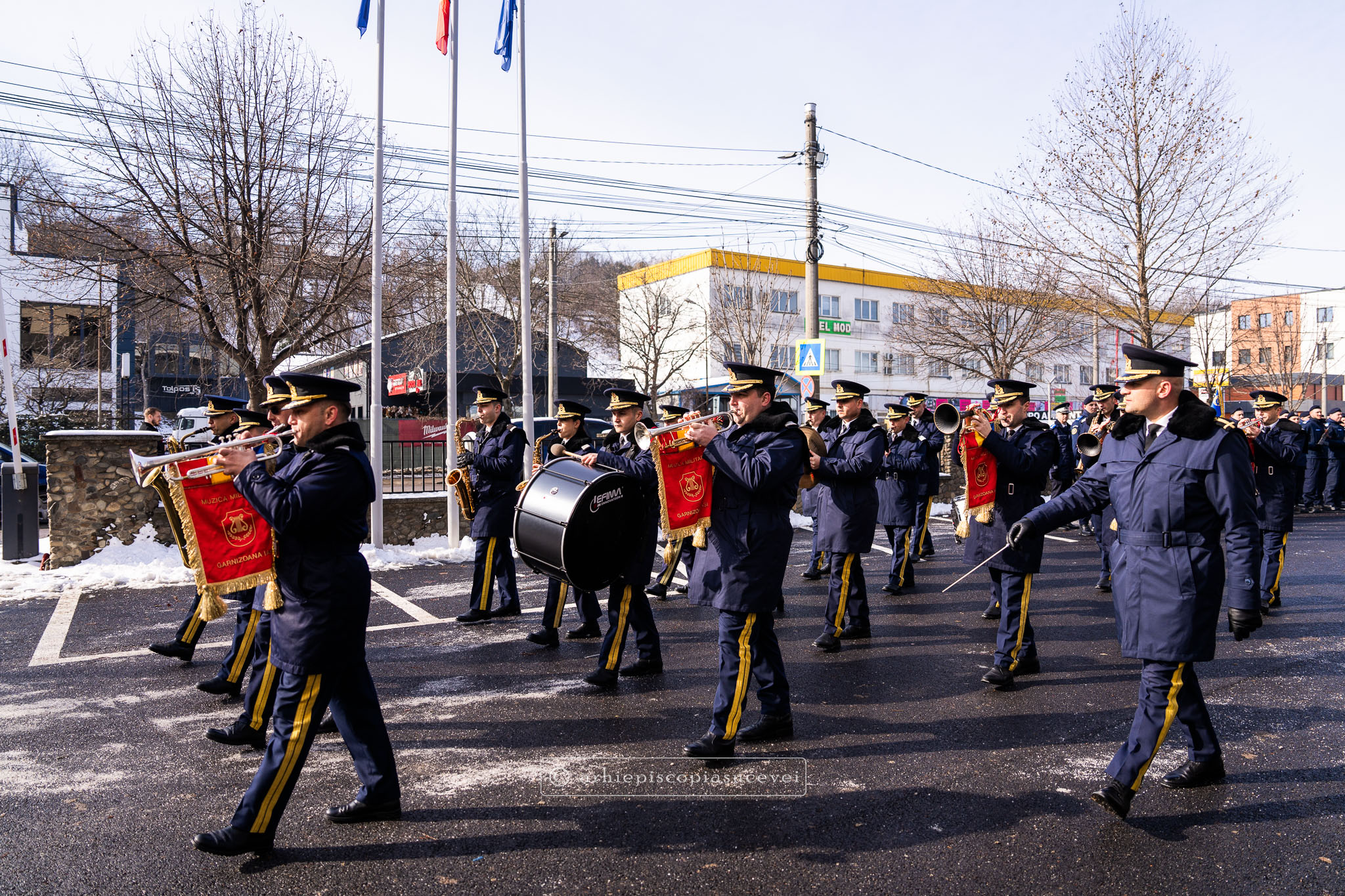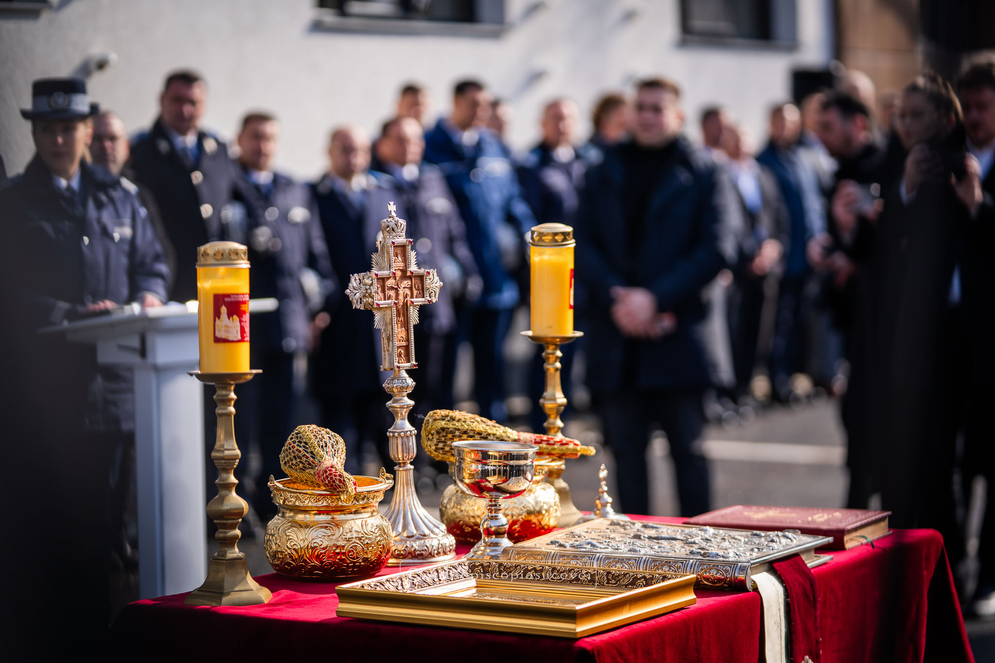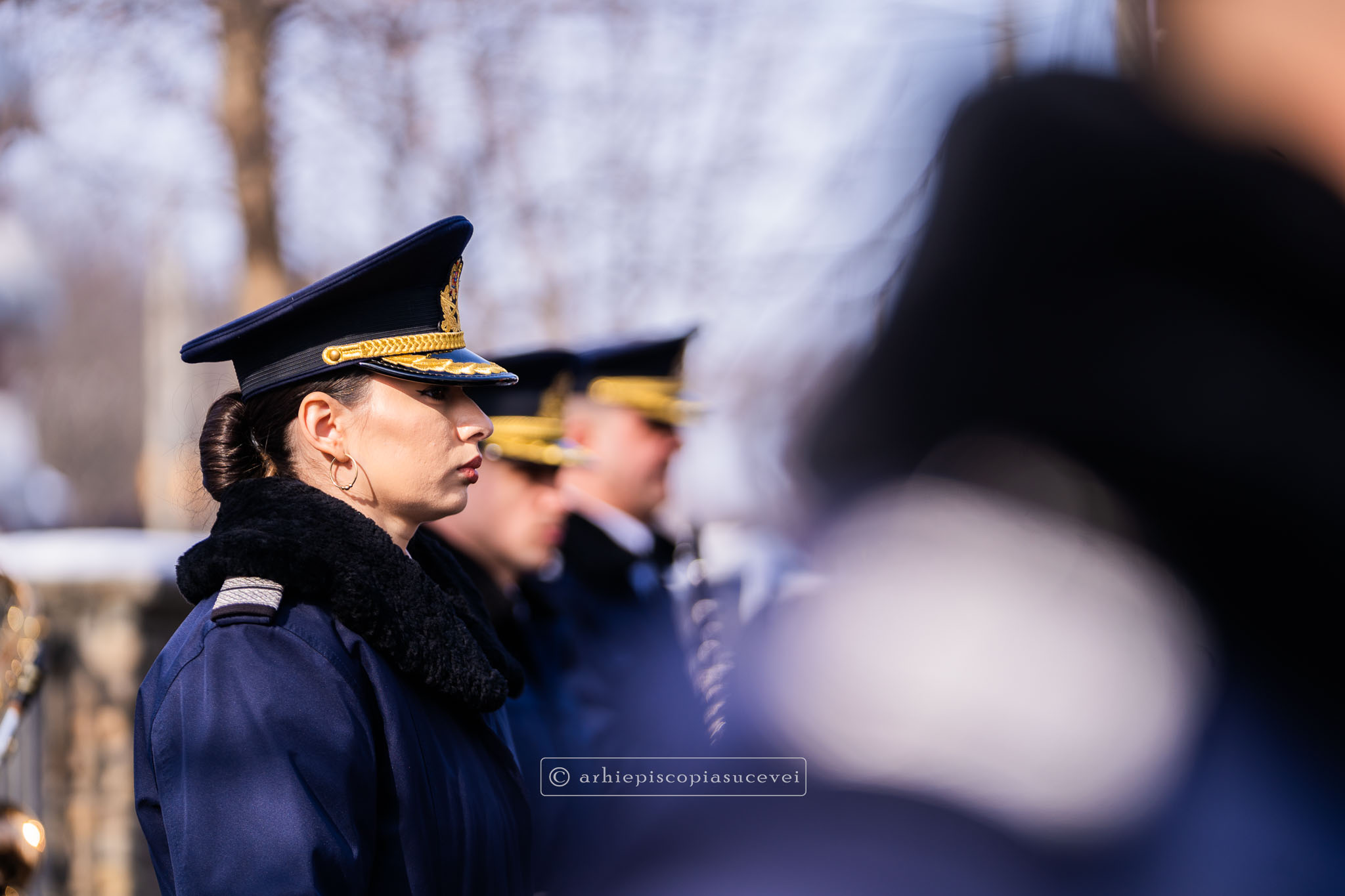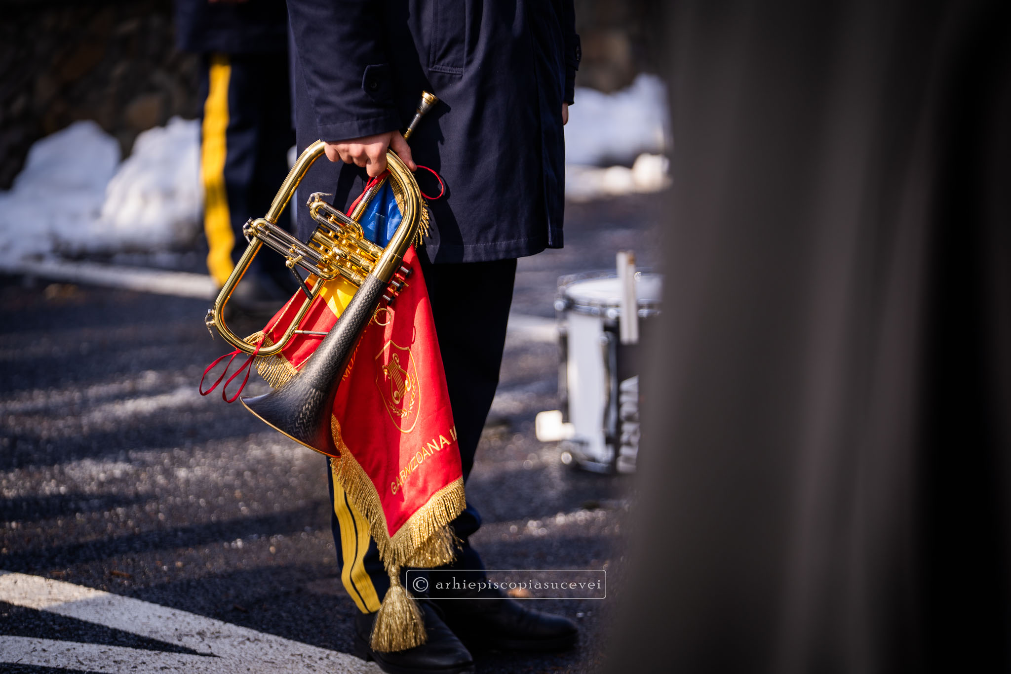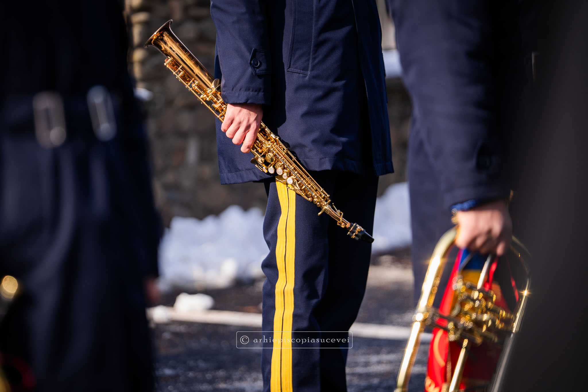 Evenimentul a debutat cu intonarea Imnului Național al României de către Fanfara Militară a Garnizoanei Iași, Brigada 15 Mecanizată „Podu Înalt”, în prezența delegaților Arhiepiscopiei Sucevei și Rădăuților și a autorităților naționale și județene, între care doamna Angelica Fădor, Secretar de Stat în cadrul Ministerului Afacerilor Interne, Generalul de brigadă Lucian Trășcălie, Adjunct al Inspectorului General al Jandarmeriei Române, Traian Andronachi, Prefectul Județului Suceava, Stelian Simerea, Vicepreședintele Consiliului Județean Suceava. Alături de reprezentanții structurilor Inspectoratului de Jandarmi Județean din cuprinsul județului, la eveniment au luat parte și conducătorii structurilor Ministerului Apărării Naționale Suceava și ale Ministerului Afacerilor Interne.