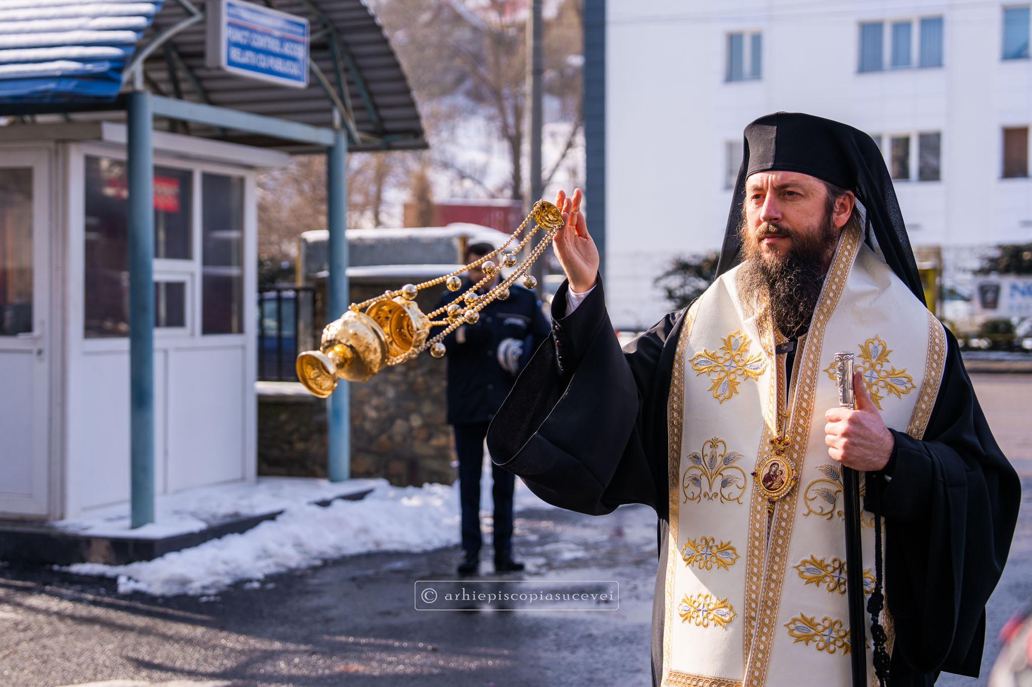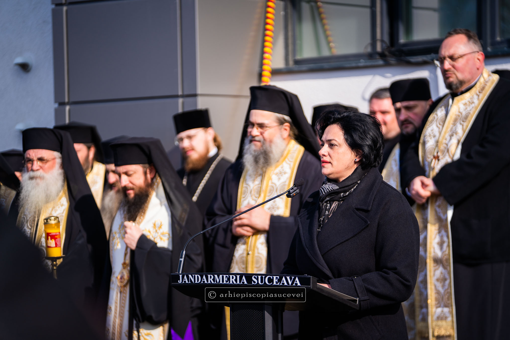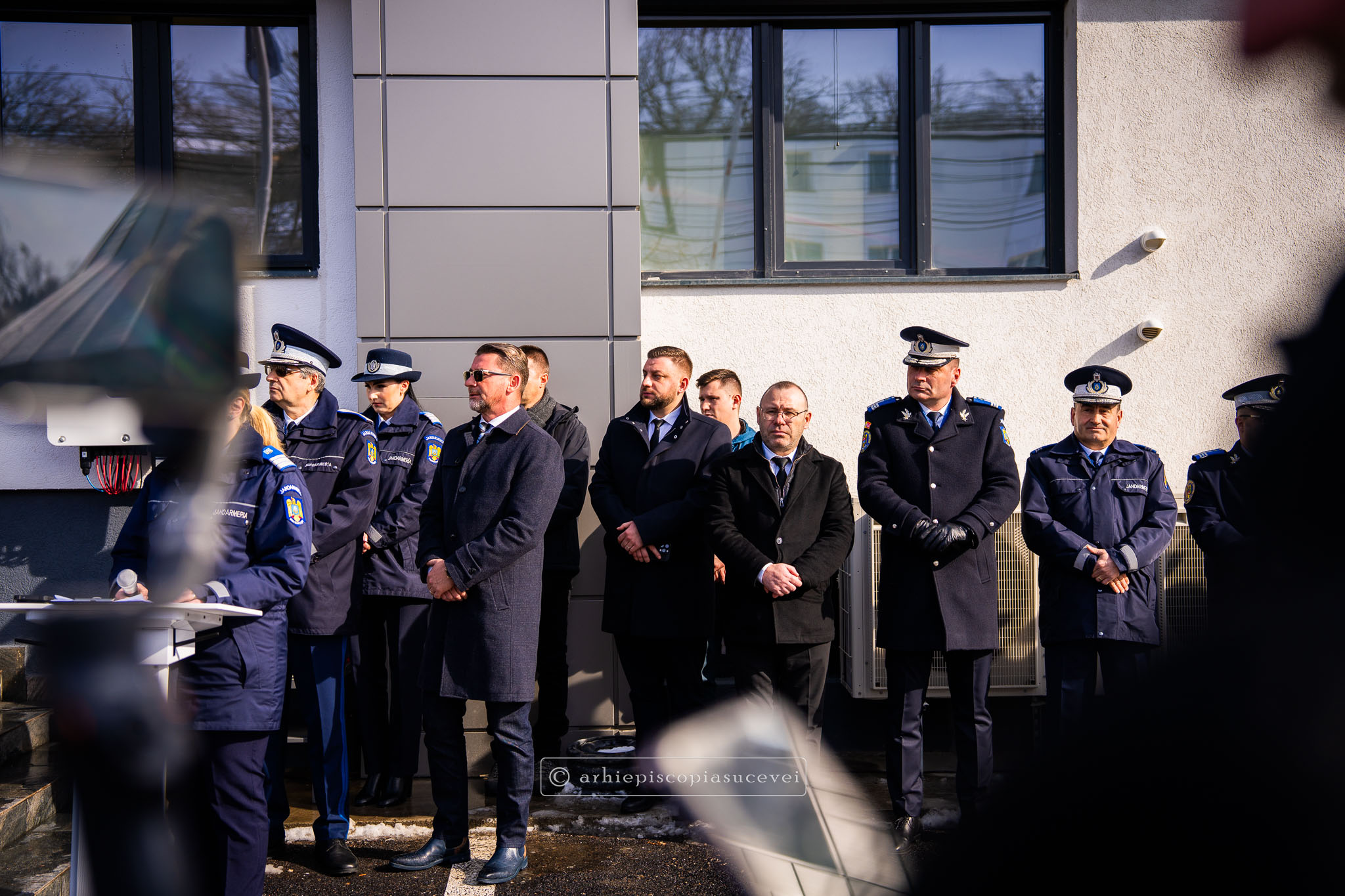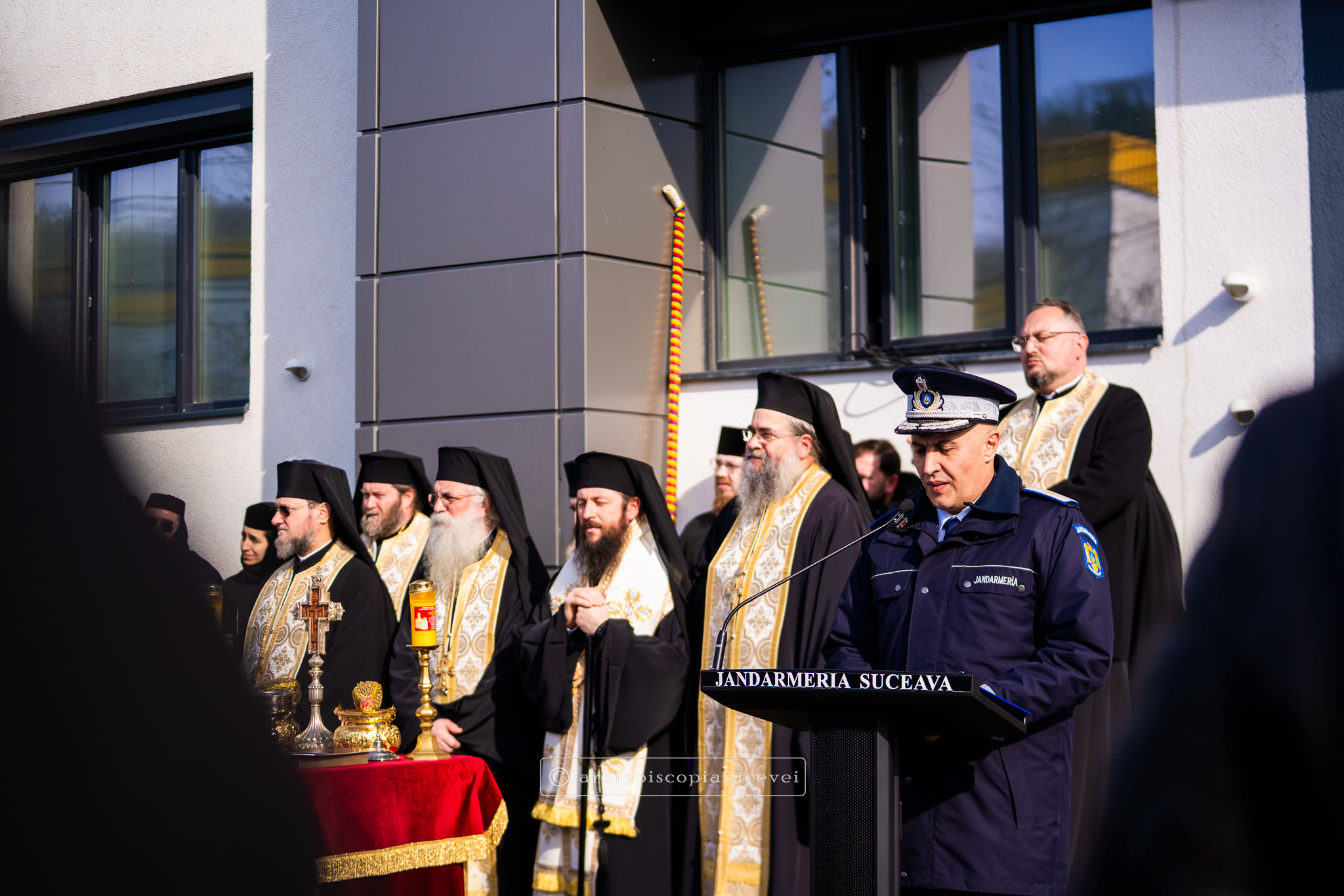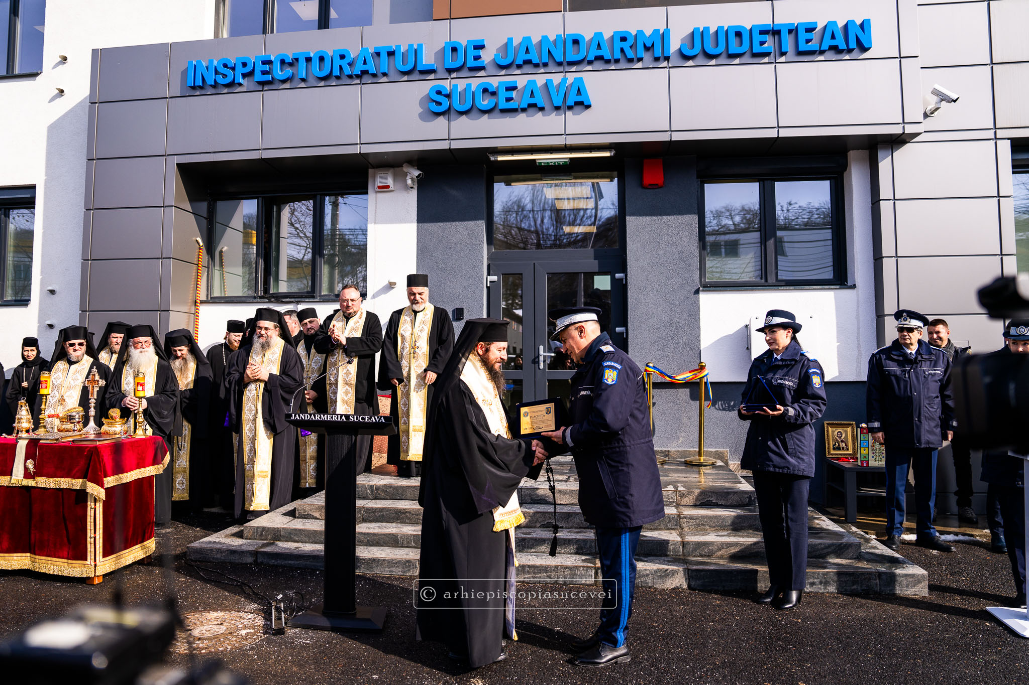 După înălțarea rugăciunii de sfințire și binecuvântarea prin ungere cu untdelemn sfințit în semnul Sfintei Cruci și stropire cu agheasmă a sediului, Preasfințitul Părinte Damaschin Dorneanul a transmis mesajul Înaltpreasfințitului Părinte Calinic, Arhiepiscop al Sucevei și Rădăuților, alcătuit cu acest prilej, ce reunește zece principii călăuzitoare, demne de reținut, sub forma unui Decalog al jandarmului.
