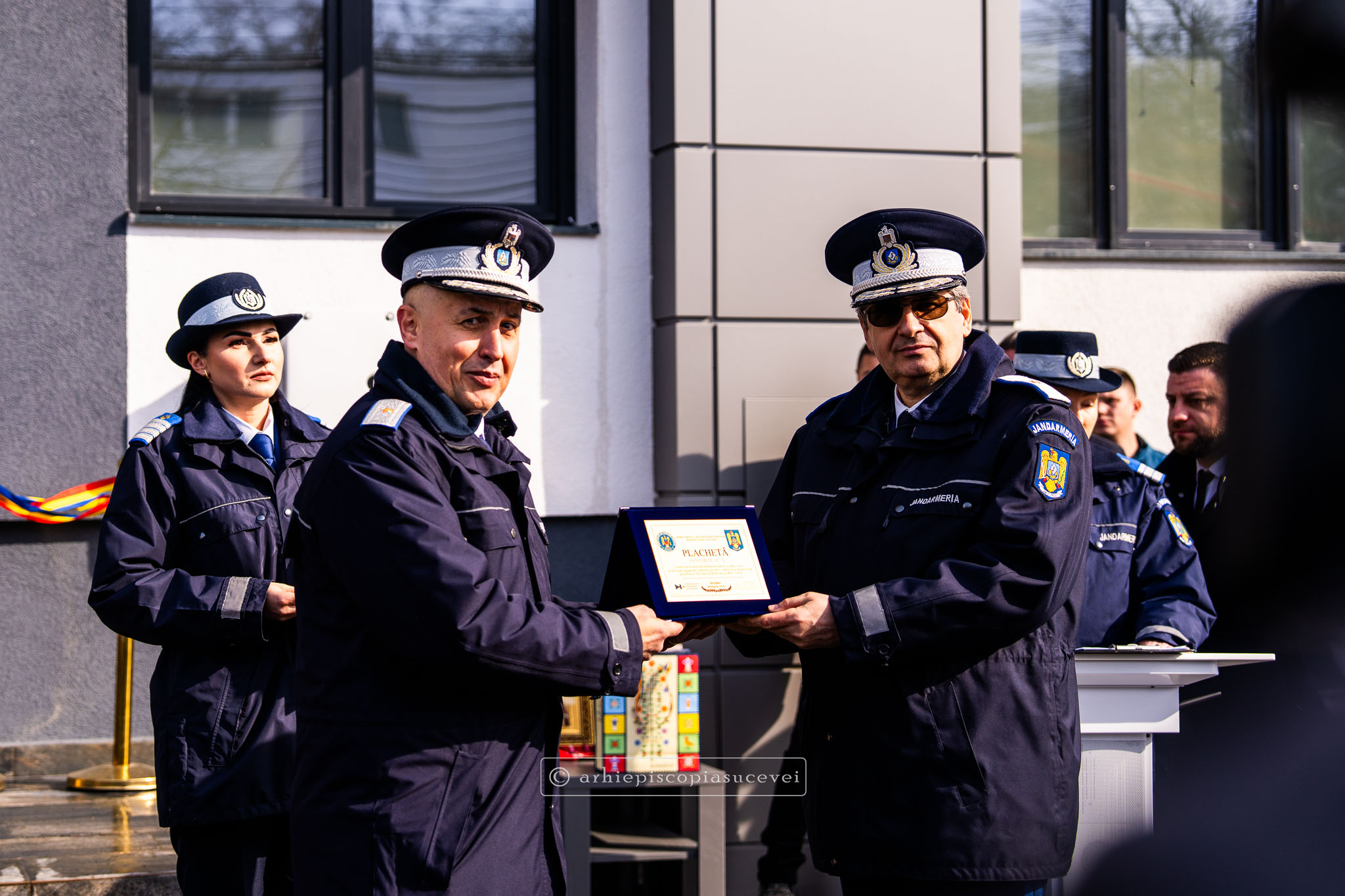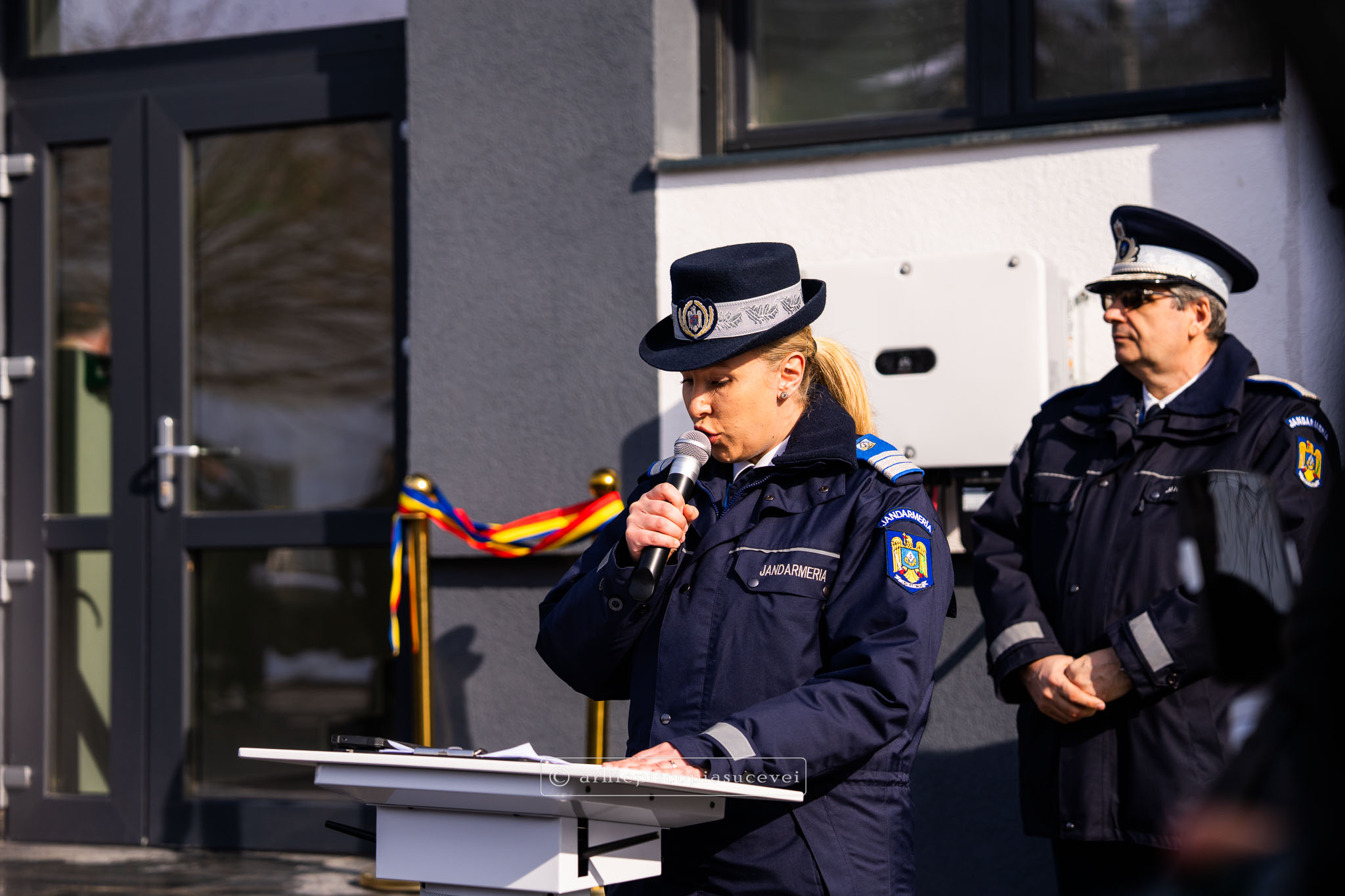 Au urmat discursurile oaspeților, care au apreciat definitivarea proiectului de reabilitare și modernizare, dar mai ales determinarea și dedicarea personalului Jandarmeriei sucevene: doamna secretar de stat Angelica Fădor, generalul de brigadă Lucian Trășcălie și domnul prefect Traian Andronachi.