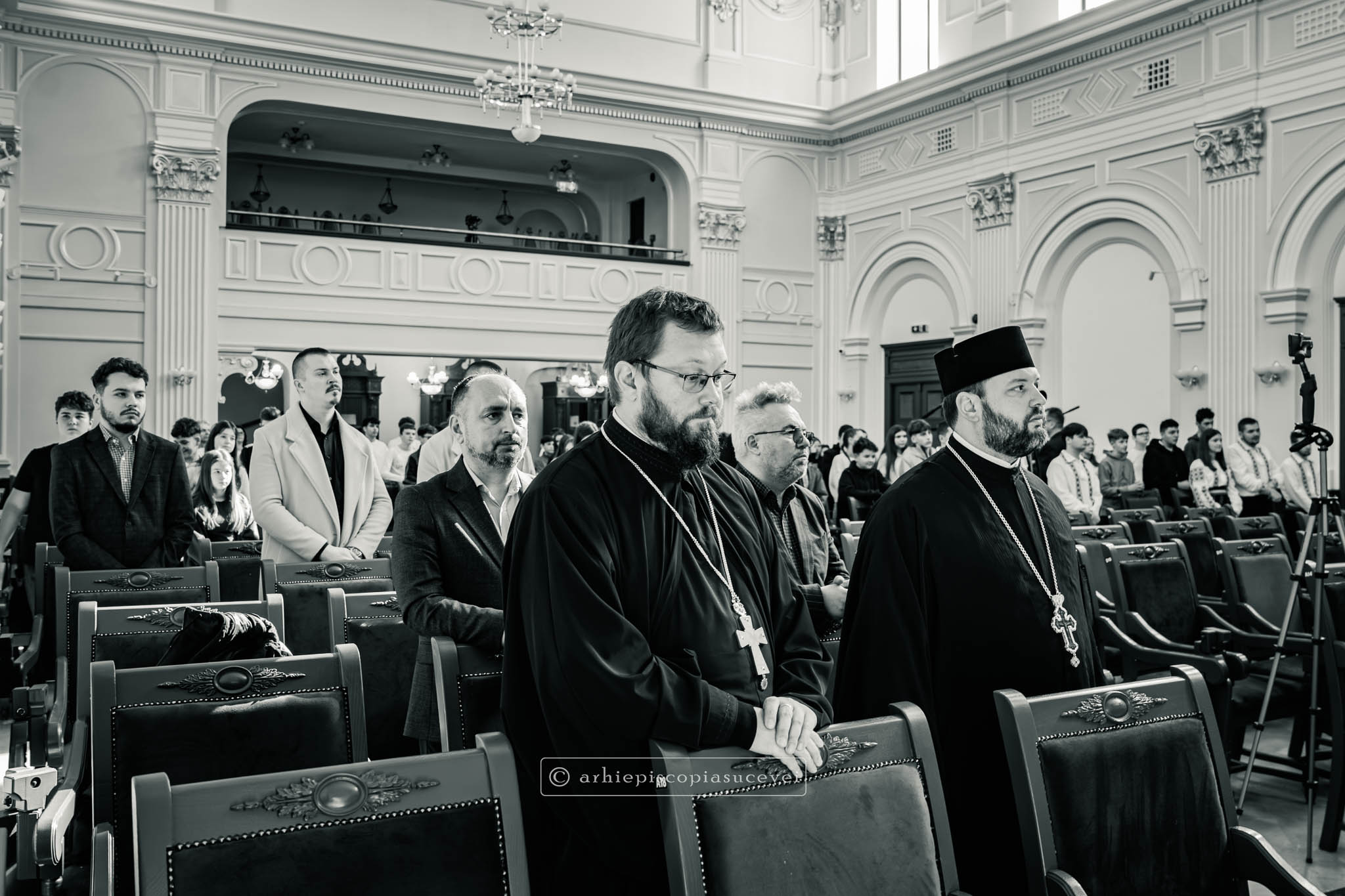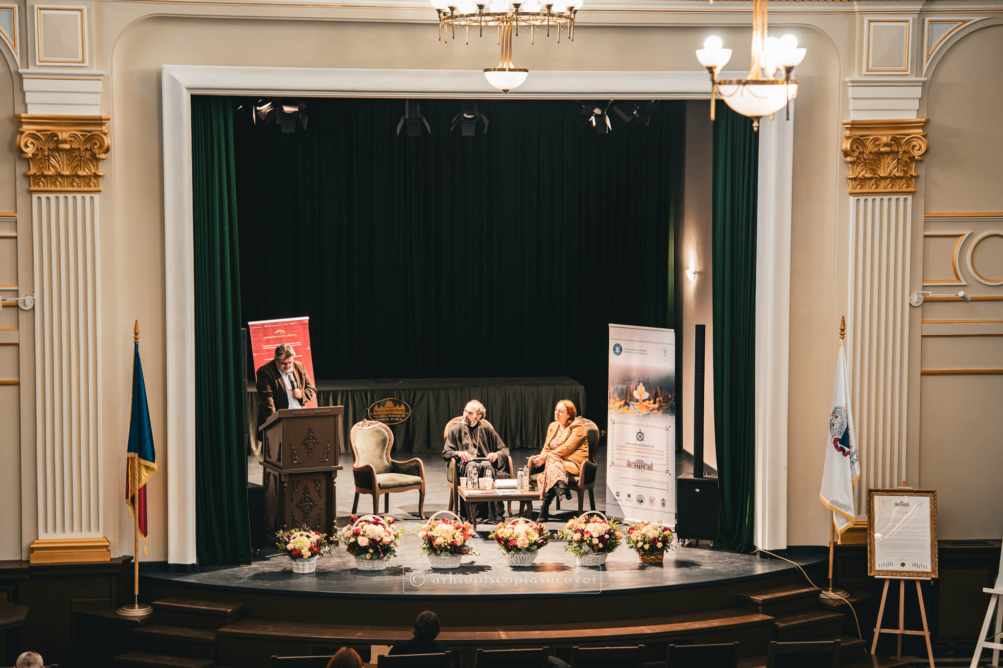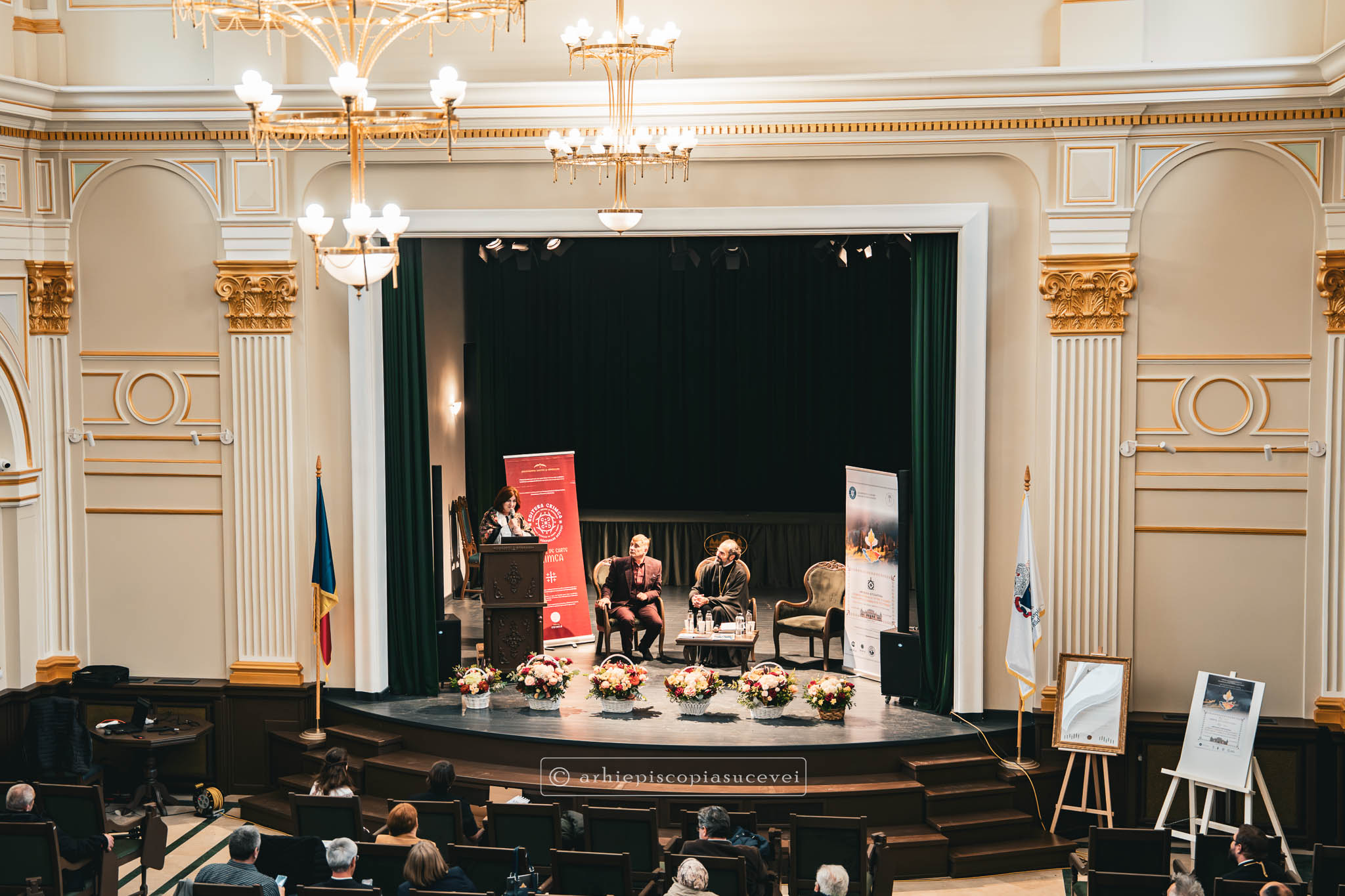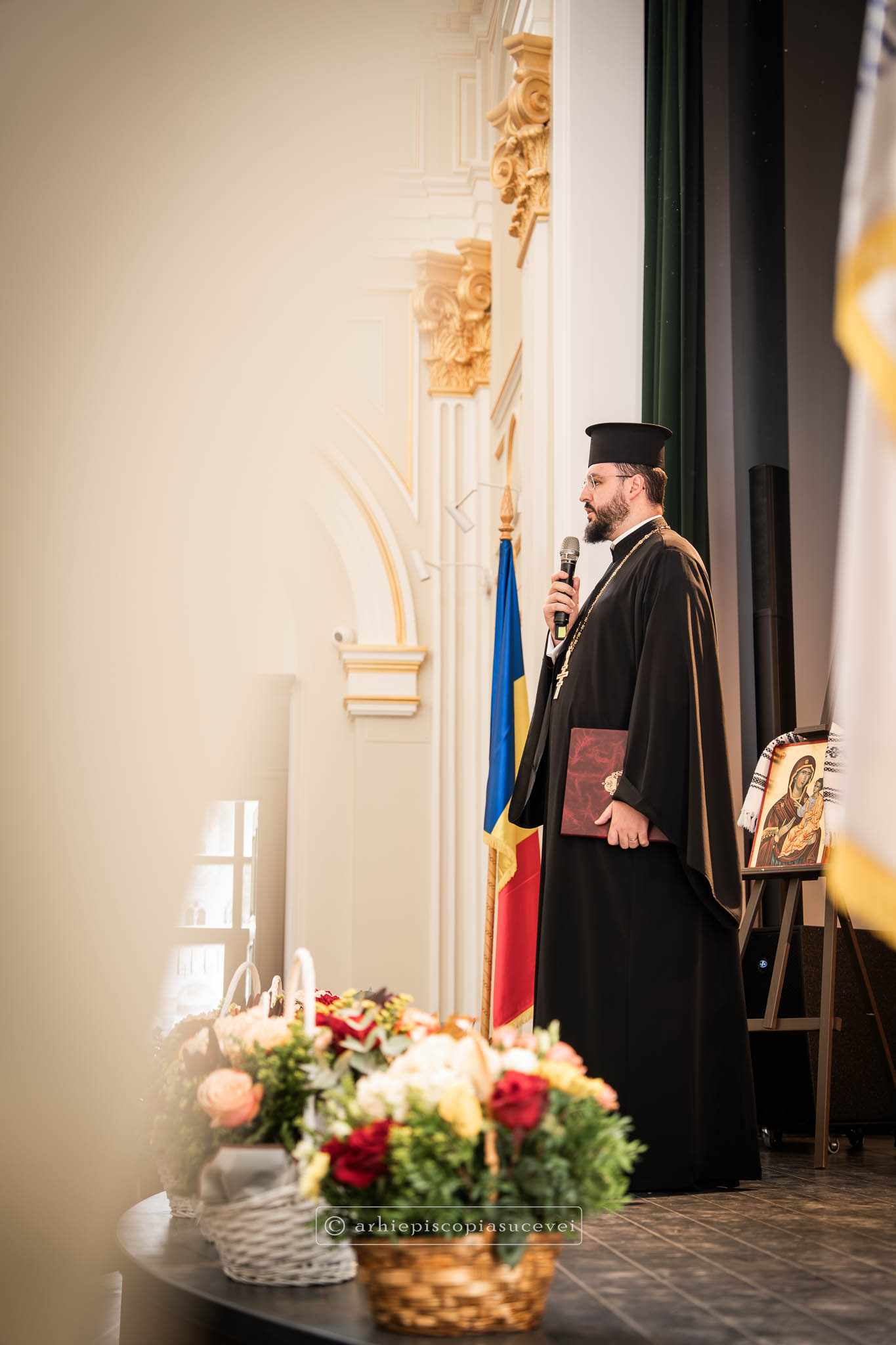 Mesajul de binecuvântare al Înaltpreasfințitului Părinte Calinic, Arhiepiscop al Sucevei și Rădăuților, în cadrul căruia și-a exprimat recunoștința pentru maniera exemplară în care s-au implicat organizatorii și participanții acestei manifestări academice cu valențe culturale, a fost transmis de pr. consilier Constantin-Ciprian Blaga.