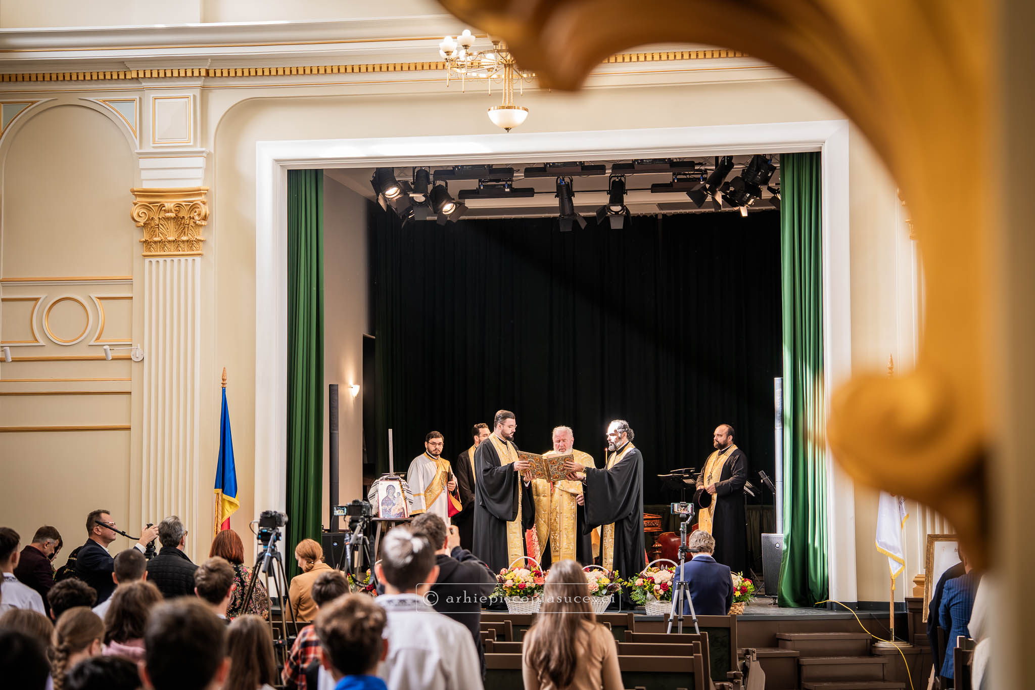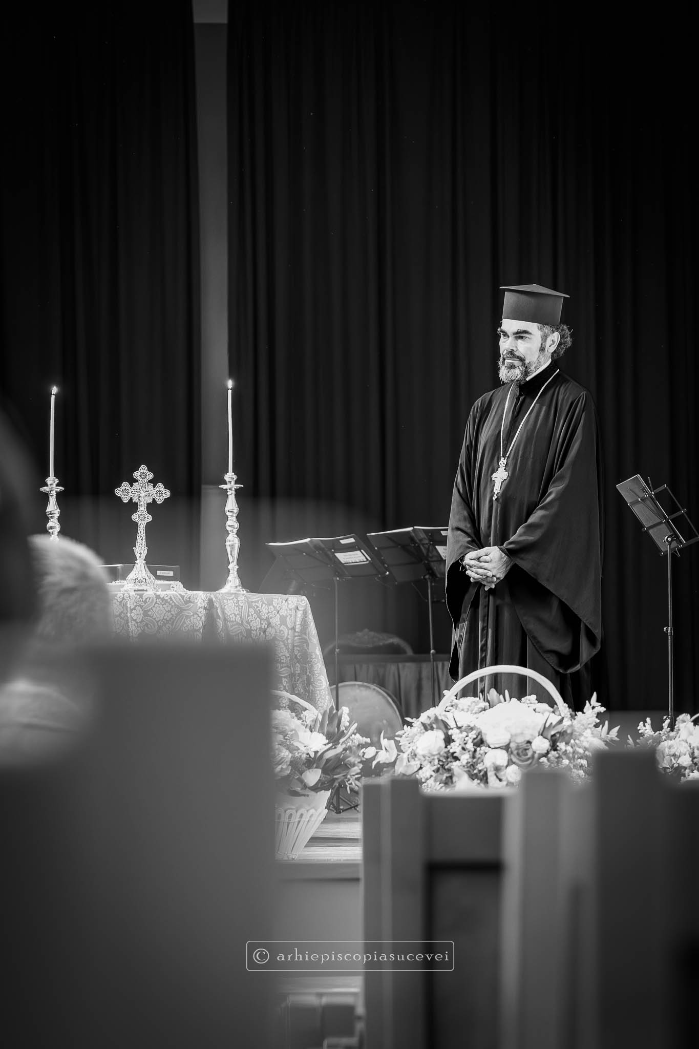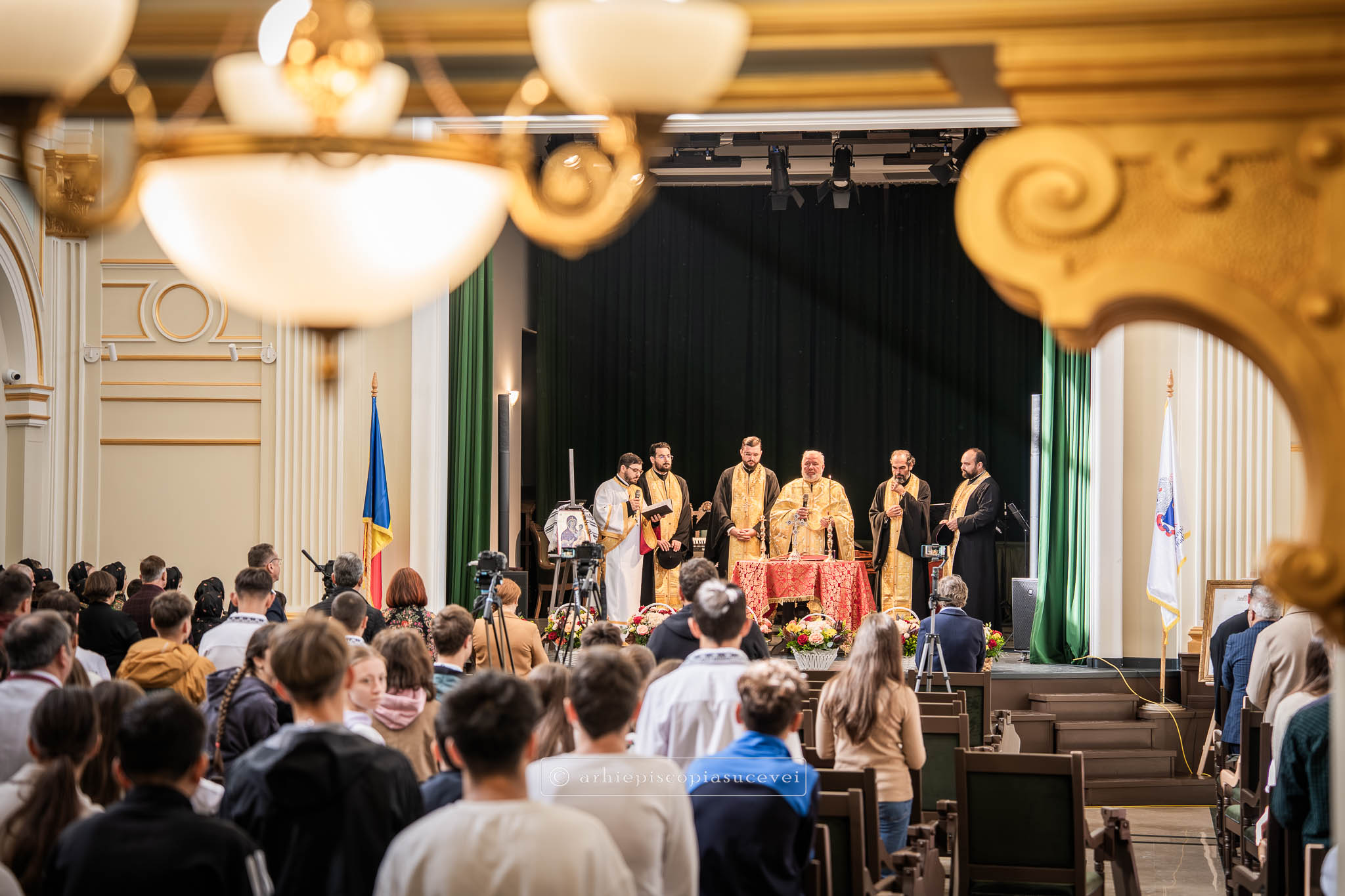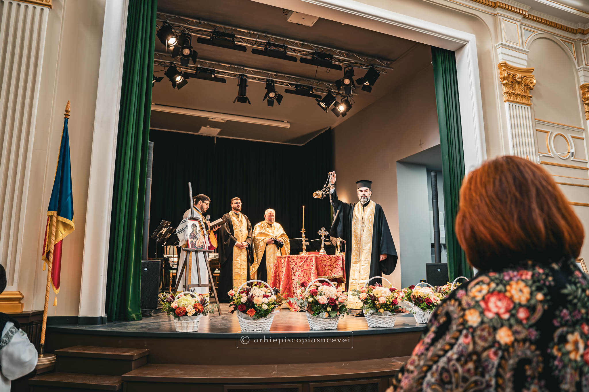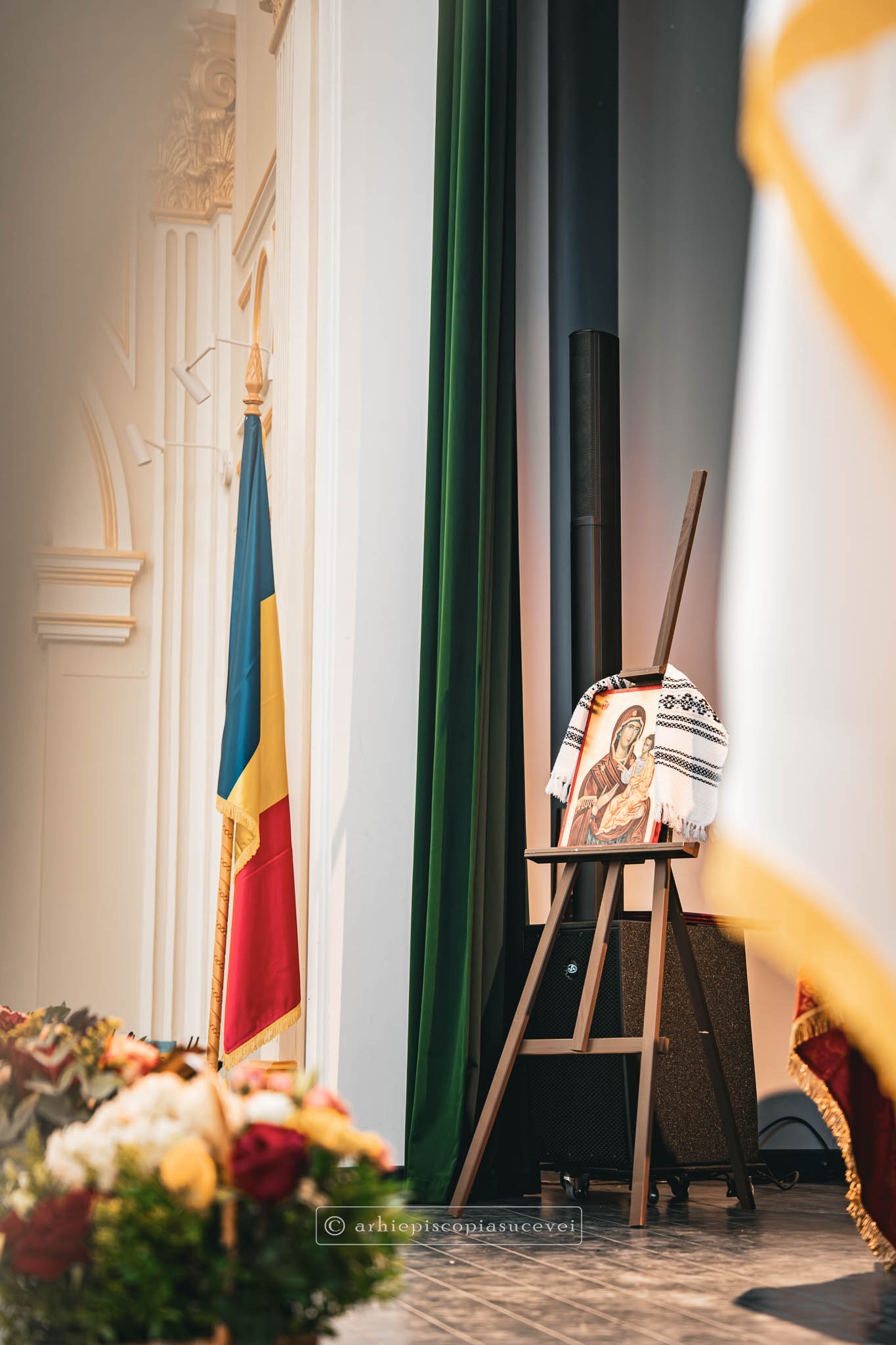 Mesajul de binecuvântare al Înaltpreasfințitului Părinte Calinic, Arhiepiscop al Sucevei și Rădăuților, în cadrul căruia și-a exprimat recunoștința pentru maniera exemplară în care s-au implicat organizatorii și participanții acestei manifestări academice cu valențe culturale, a fost transmis de pr. consilier Constantin-Ciprian Blaga.
