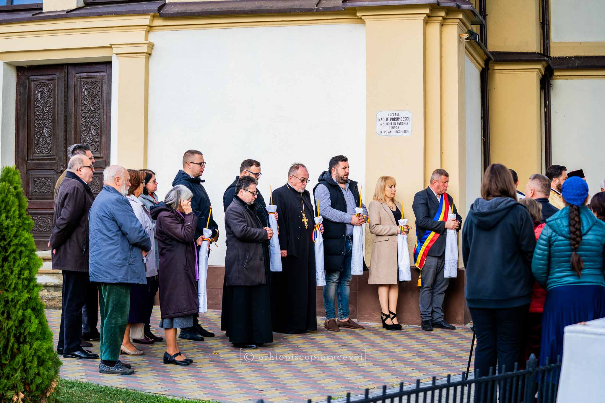 Știind că rugăciunea este o dovadă profundă a dragostei, a recunoștinței și a respectului față de cei care și-au început drumul spre veșnicie, lăsând lumii o moștenire artistică incomensurabilă, la Stupca, localitatea care poartă astăzi numele compozitorului, unde se află acum mormintele tuturor membrilor familiei Porumbescu, a fost săvârșită o slujbă de pomenire pentru întreaga familie Porumbescu, sub streașina Bisericii „Sfântul Dumitru”. Organizatorilor și oaspeților simpozionului li s-au alăturat, în momentul comemorativ, cadre didactice și elevi ai școlii din localitate, precum și reprezentanți ai autorităților locale, dar și delegați ai Protopopiatului Suceava II.