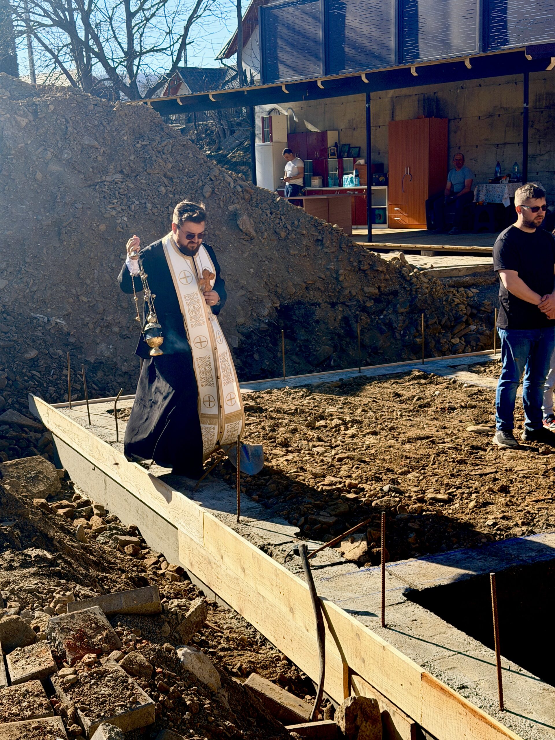 Cu acest prilej, cei trei preoți au săvârșit slujba de binecuvântare la începutul lucrărilor de construcție, pe fundația proaspăt turnată a viitoarei locuințe, rugându-se lui Dumnezeu pentru ca această casă să fie ridicată cu spor, iar familia Brânză să se bucure din nou de liniște și stabilitate.