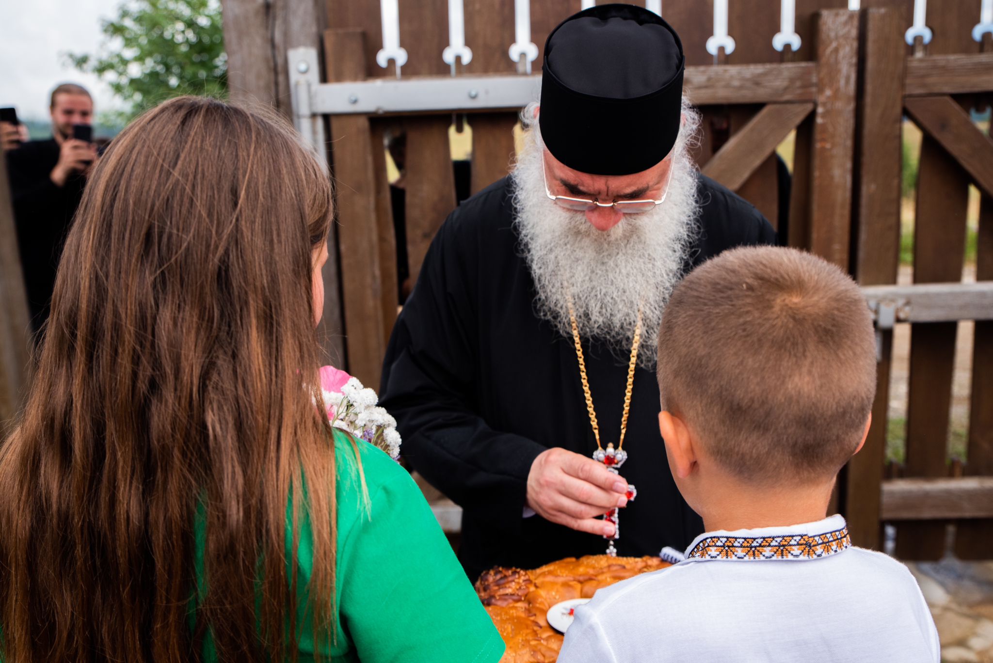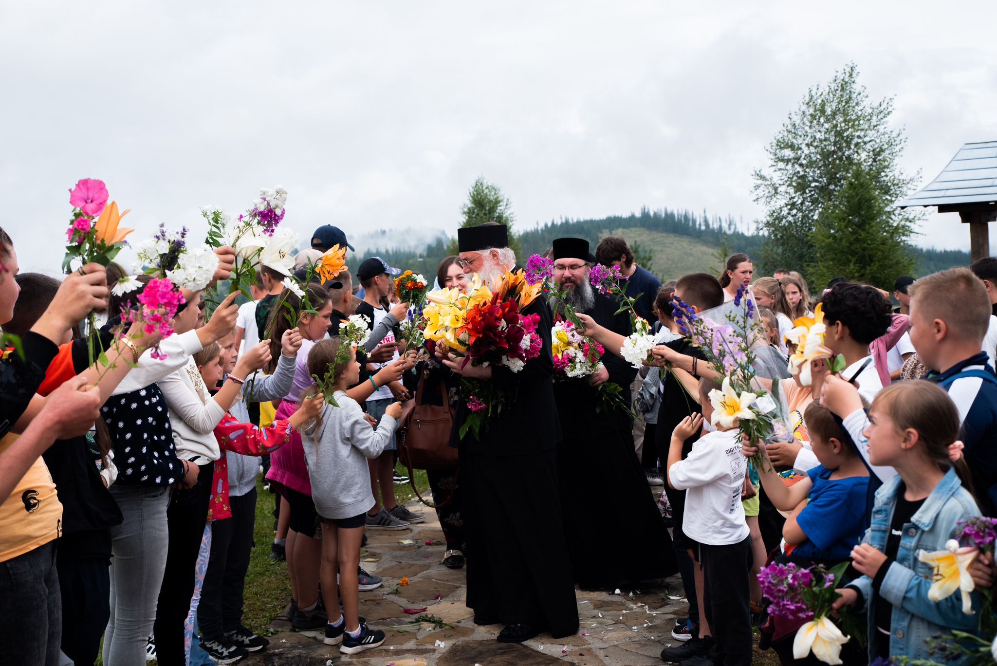 După amiază, chiar când ploaia a încetat și norii s-au risipit, au ajuns la porțile Salașului părintele stareț Melchisedec Velnic și doamna inspector de religie Daniela Ceredeev. În semn de profundă prețuire, copiii i-au întâmpinat cu cele mai alese flori culese din grădinile lor. A urmat serbarea de sfârșit de tabără ținută de cele cinci grupe, moment în care s-au intonat cântece ce au adus și câteva raze de soare. Părintele stareț le-a încredințat tuturor copiilor de la poalele Cerului dragostea sa și un îndemn de așezat cu mare grijă în sertărelele sufletelor lor.