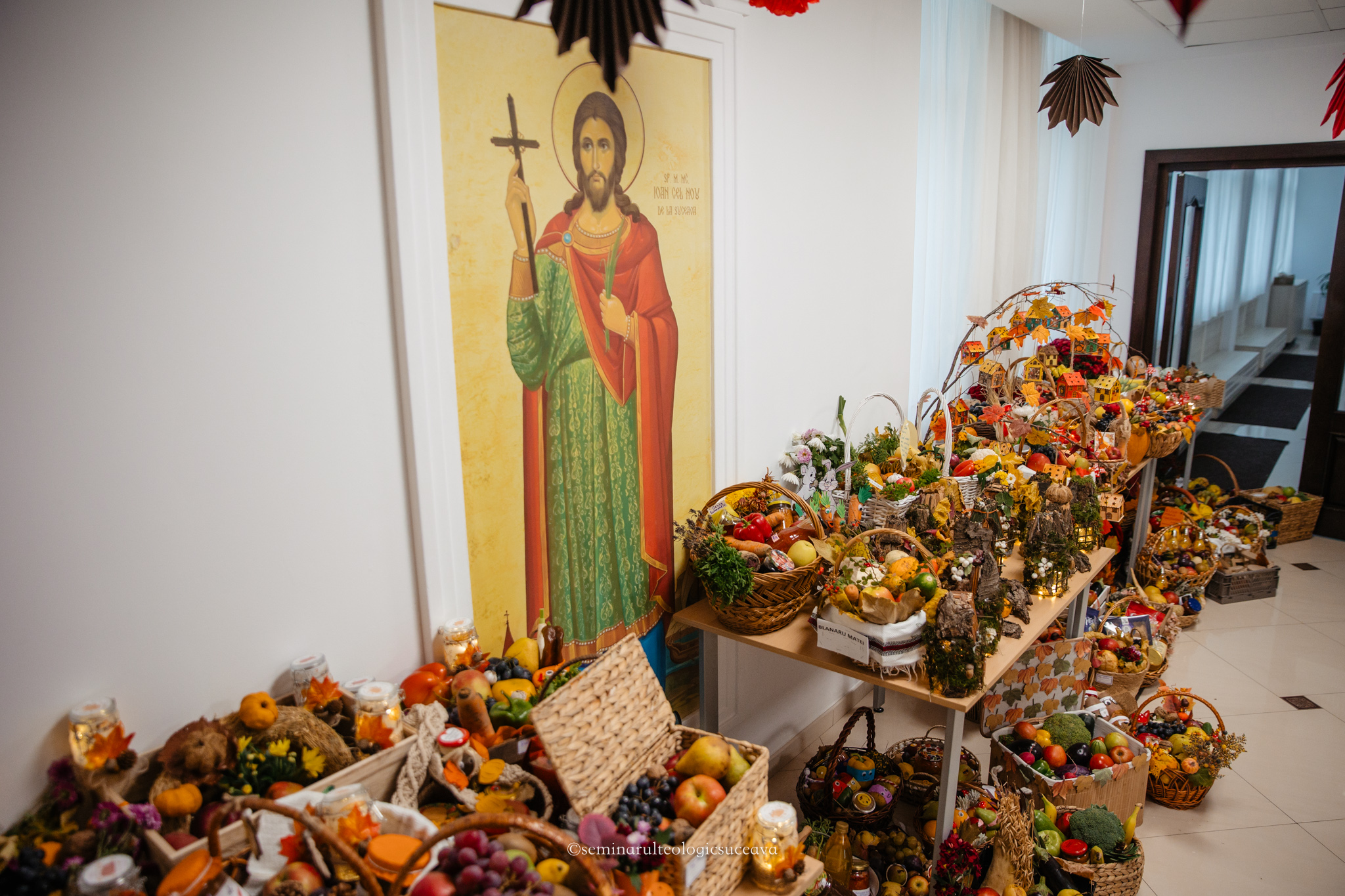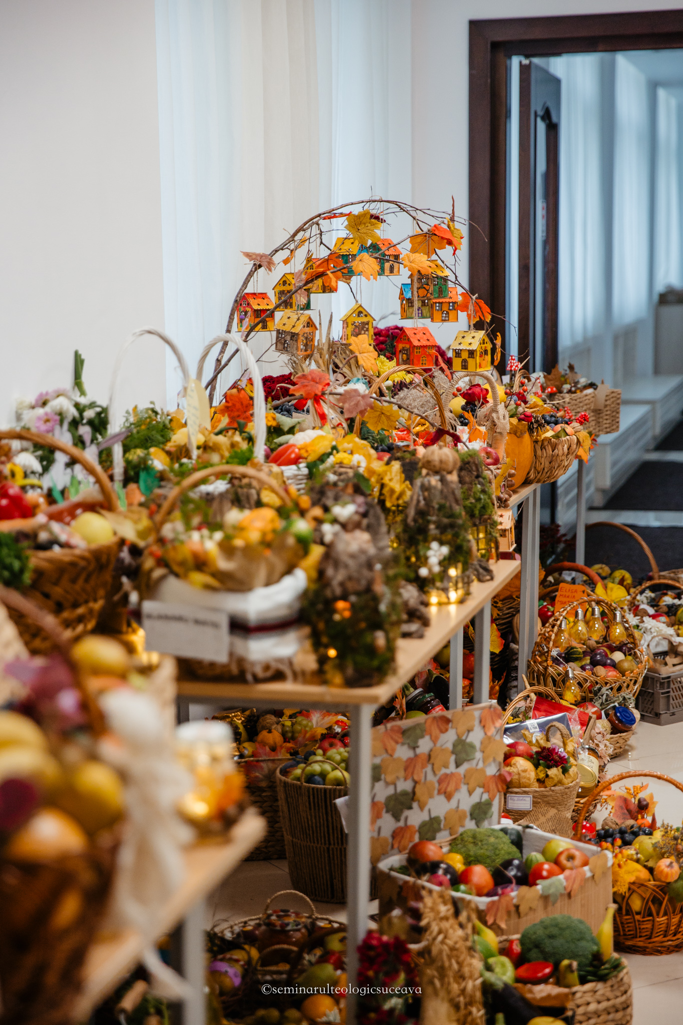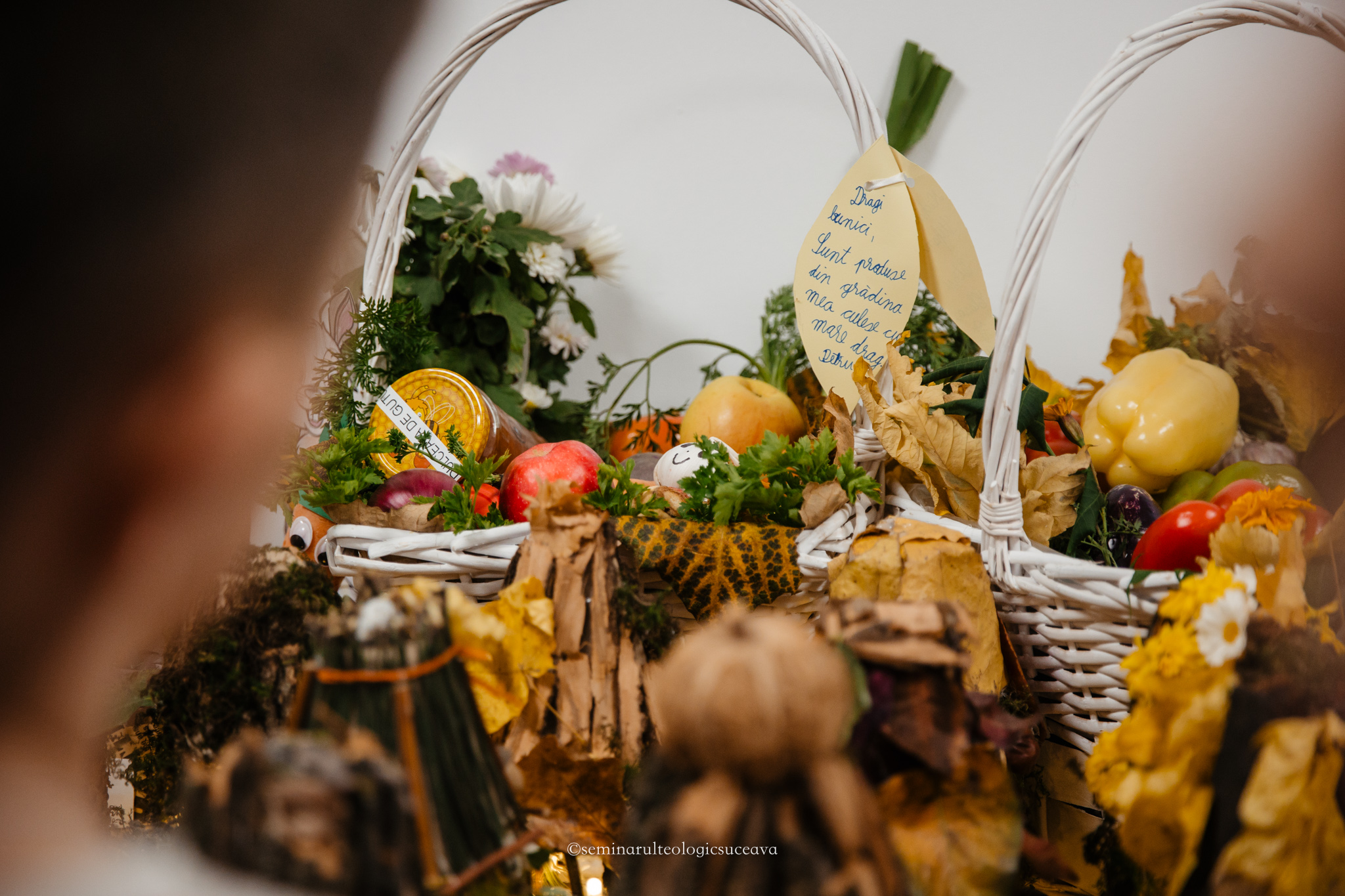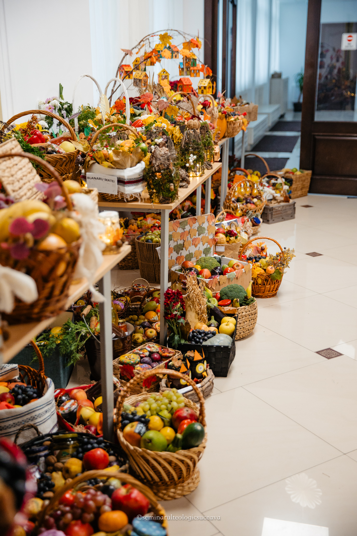 Parterul școlii noastre a fost împodobit cu multă dragoste și dedicare de către învățători și profesori, părinți, bunici și copii mari și mici. S-au așezat laolaltă roadele muncii lor – ale copiilor – și ale părinților și bunicilor deopotrivă, iar fiecare coș sau lădiță frumos împodobită a spus o poveste despre generozitate și iubire.