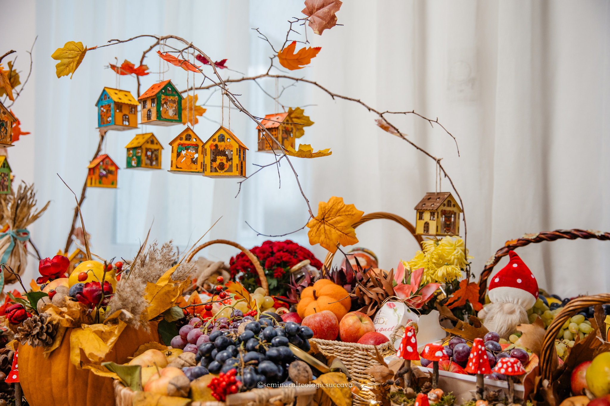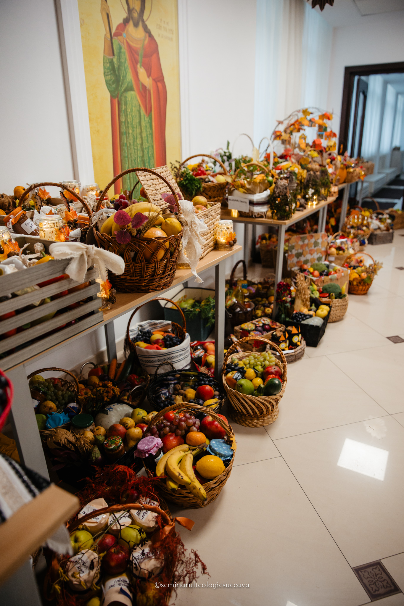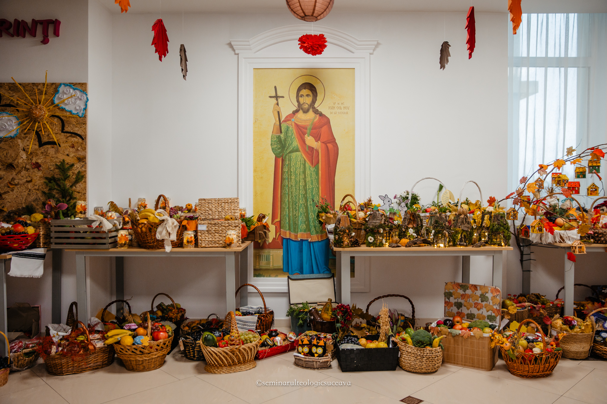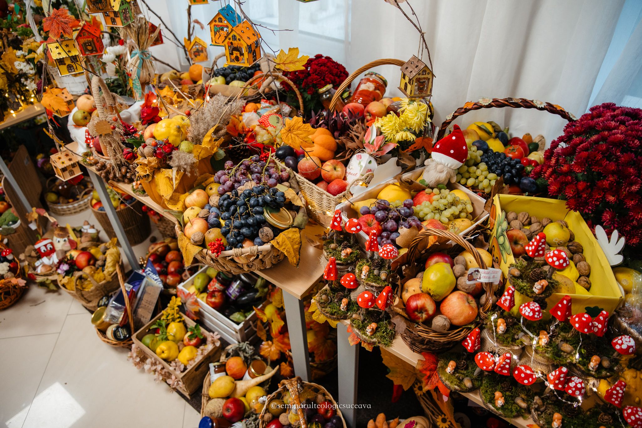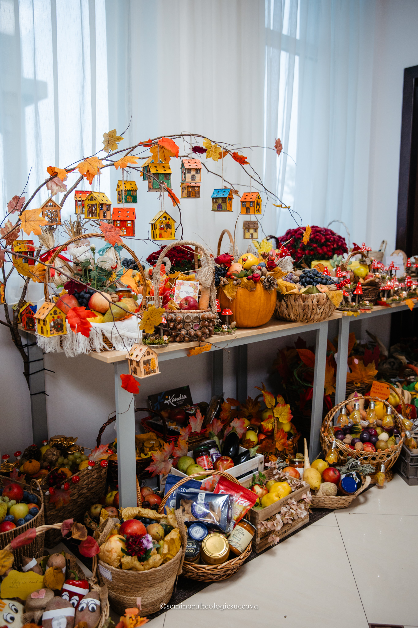 Parterul școlii noastre a fost împodobit cu multă dragoste și dedicare de către învățători și profesori, părinți, bunici și copii mari și mici. S-au așezat laolaltă roadele muncii lor – ale copiilor – și ale părinților și bunicilor deopotrivă, iar fiecare coș sau lădiță frumos împodobită a spus o poveste despre generozitate și iubire.