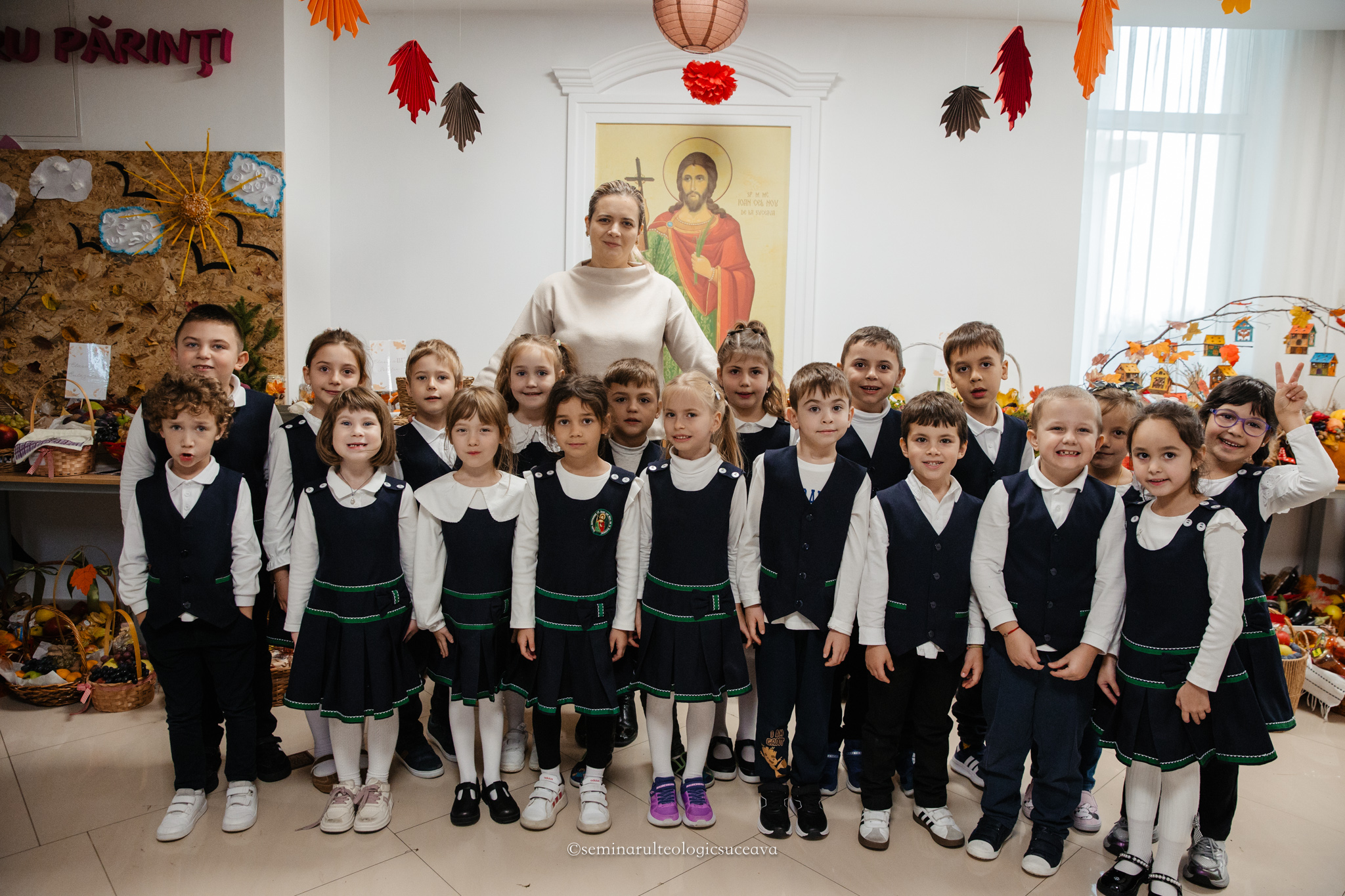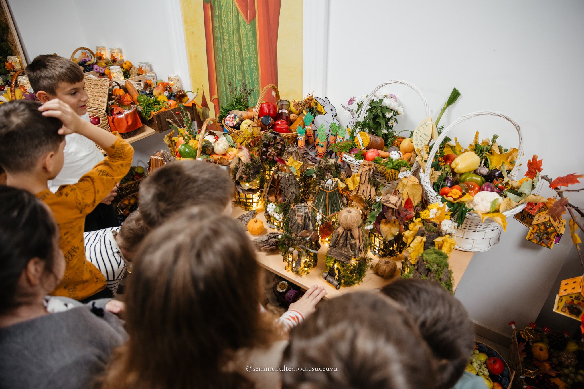 Holul școlii era mai plin ca niciodată de lumină, de emoție și de zâmbete sincere. Fiecare părinte a pregătit cu responsabilitate darul său, dăruindu-i suflet: legumele și fructele au prins pentru un moment viață și dintr-odată aveau chipuri vesele, căciuli și fulare croșetate cu inima.