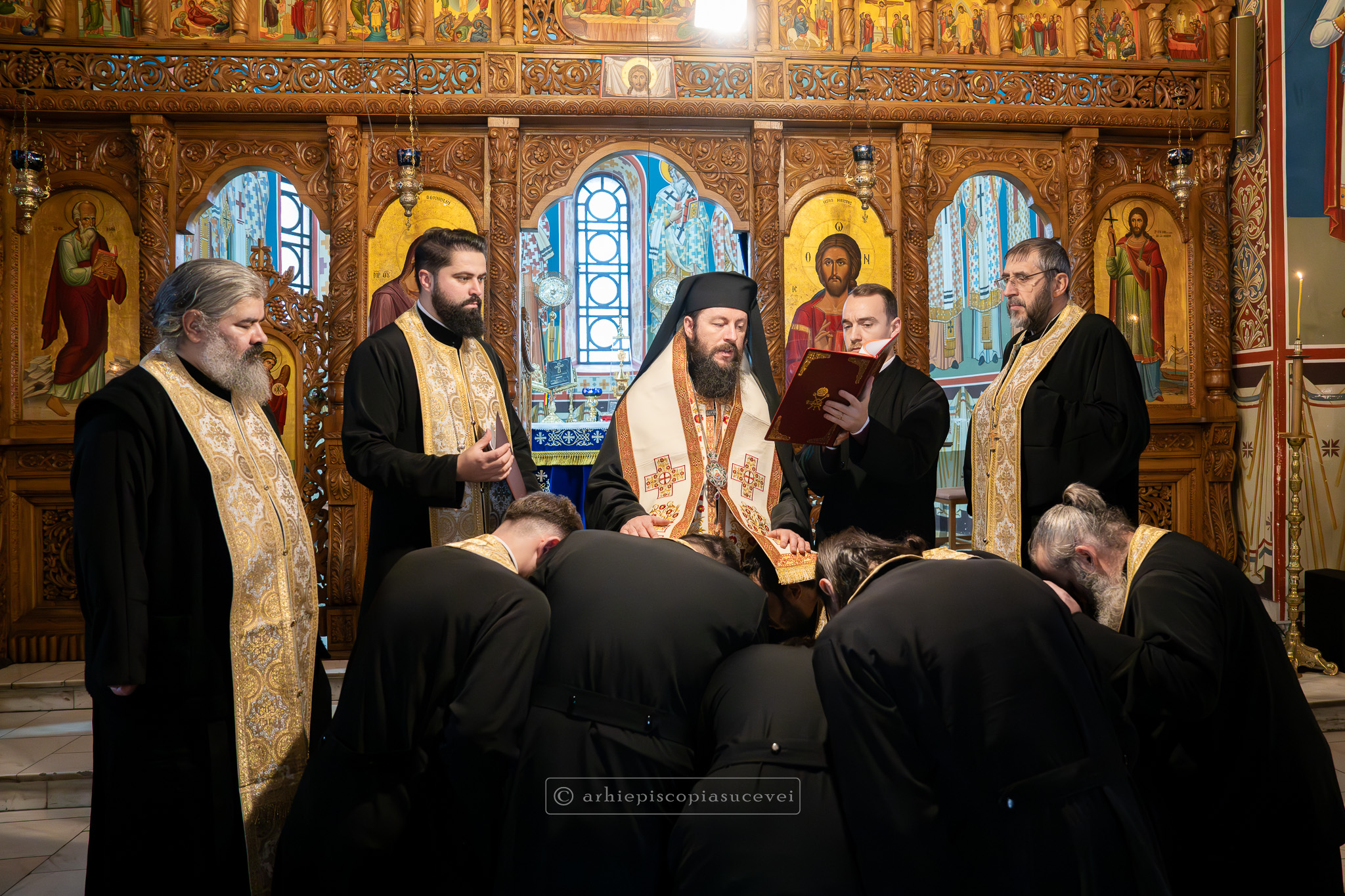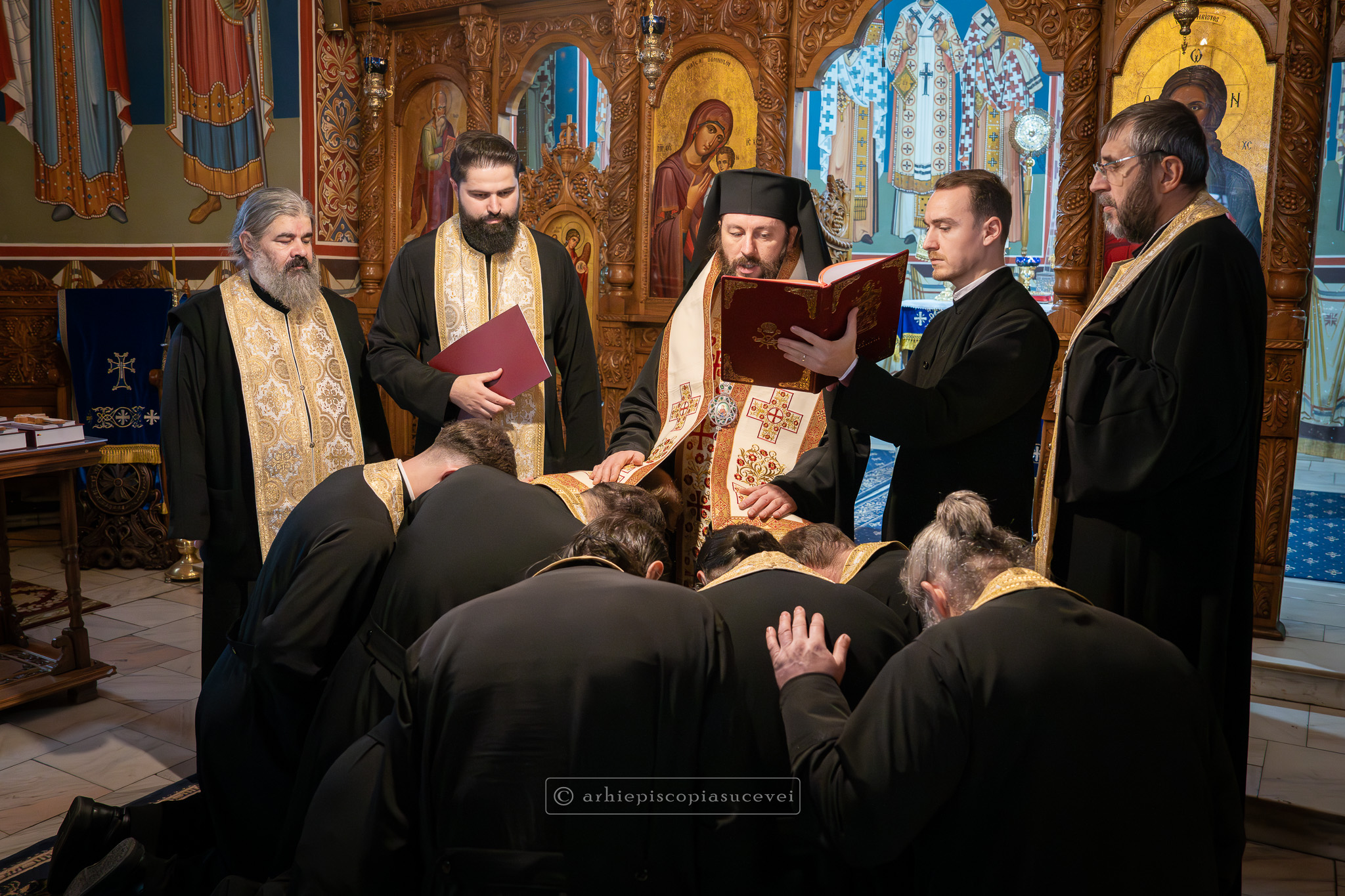Cu binecuvântarea Înaltpreasfințitului Părinte Calinic, nouă clerici din cuprinsul Arhiepiscopiei Sucevei și Rădăuților au primit astăzi, 28 noiembrie 2025, hirotesia întru duhovnic, prin rostirea de către arhiereu a rugăciunilor de binecuvântare. Slujba a fost săvârşită de către Preasfințitul Părinte Damaschin Dorneanul, Episcop-Vicar, în Paraclisul Catedralei Arhiepiscopale din Suceava, locaș care adăpostește în această perioadă cinstitele moaște ale Sfântului Mare Mucenic Ioan cel Nou, mare făcător de minuni, cunoscut pentru dragostea și mângâierea pe care le oferă celor care îi înalță rugăciuni cu evlavie.