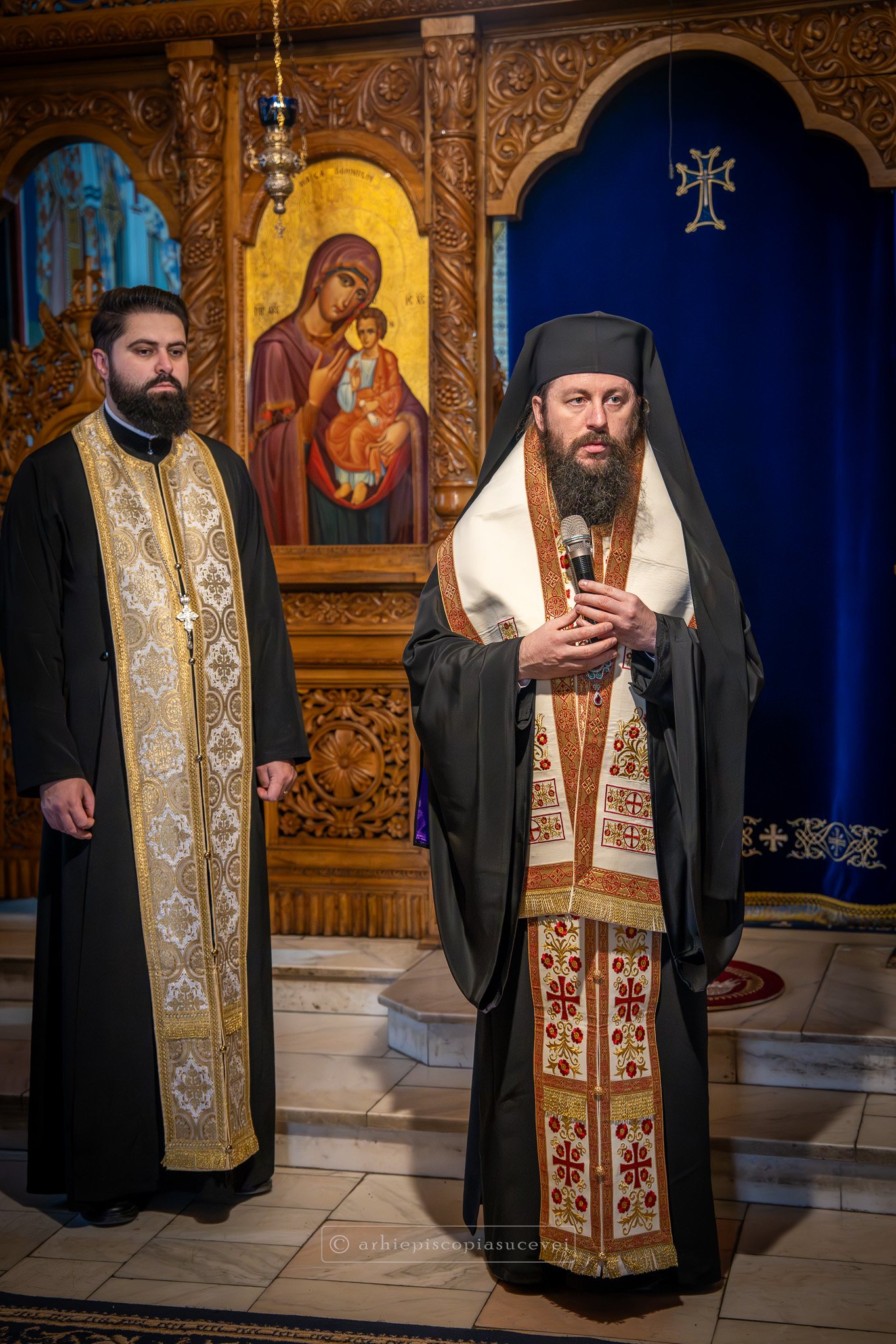 La eveniment au luat parte Arhim. Valerian Radu, mare eclesiarh al Catedralei Arhiepiscopale, pr. Dimitrie Horga, consilier eparhial în cadrul Sectorului Administrativ-Bisericesc, și pr. Ionuț Isopescu, consilier eparhial la Sectorul Educațional-Teologic al Arhiepiscopiei Sucevei și Rădăuților.